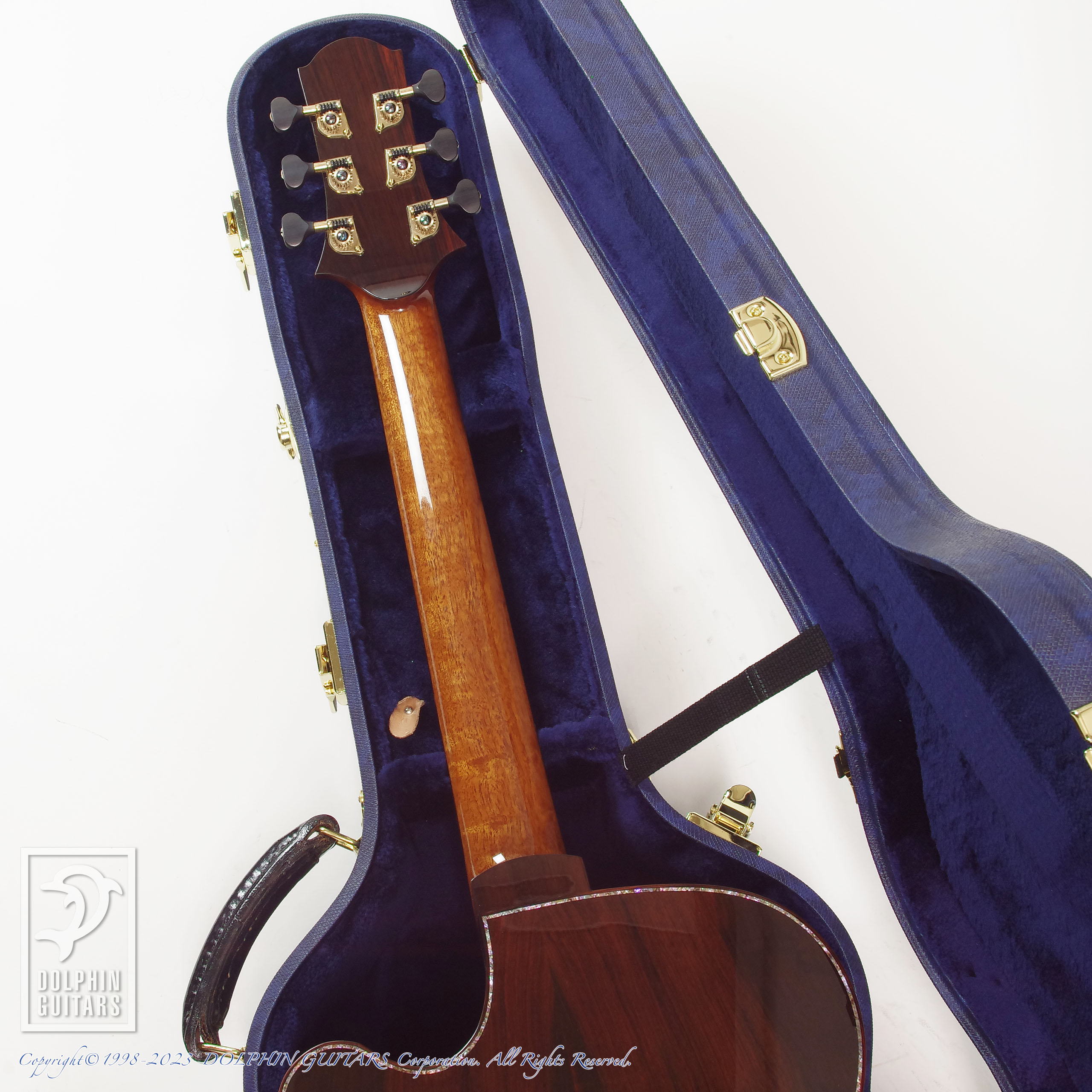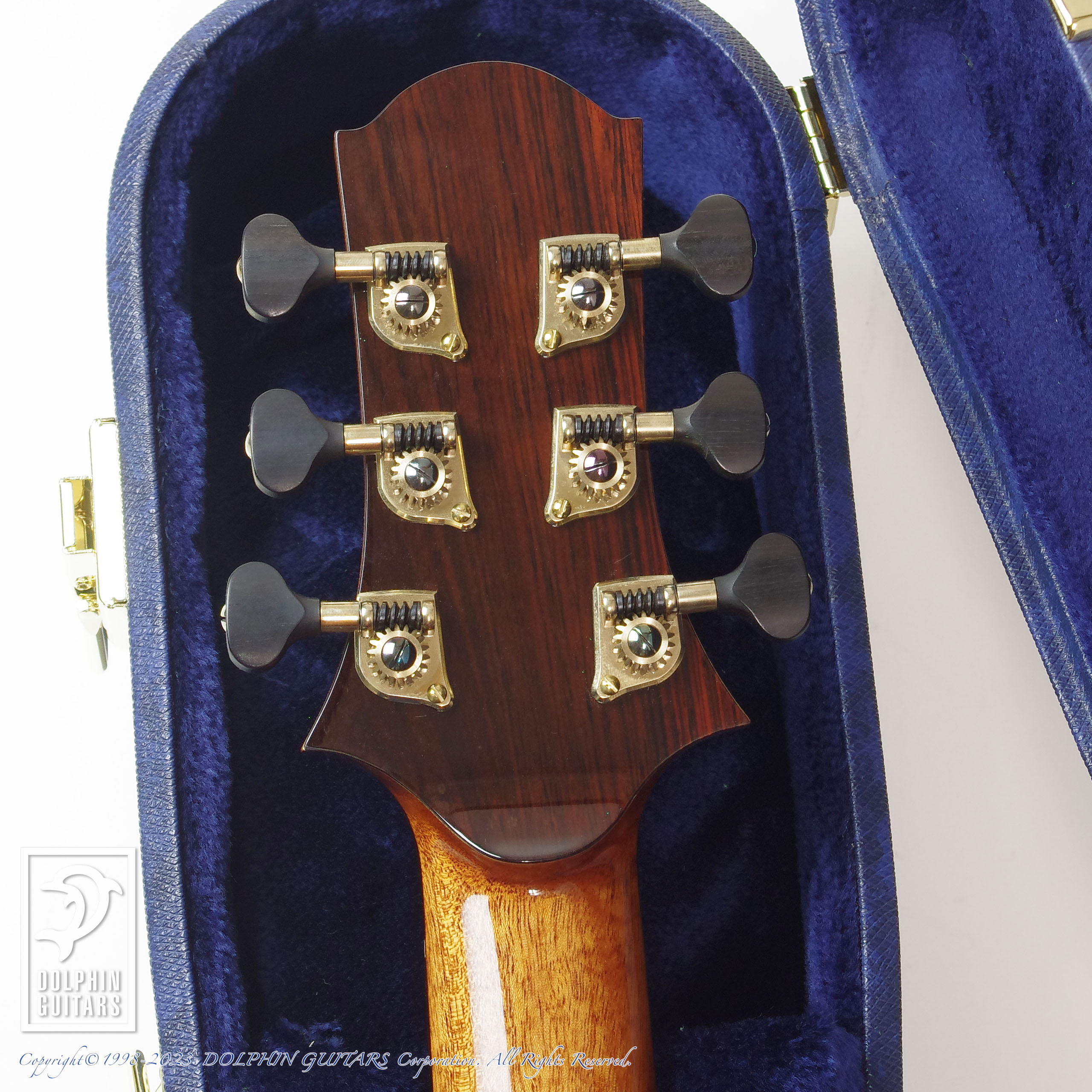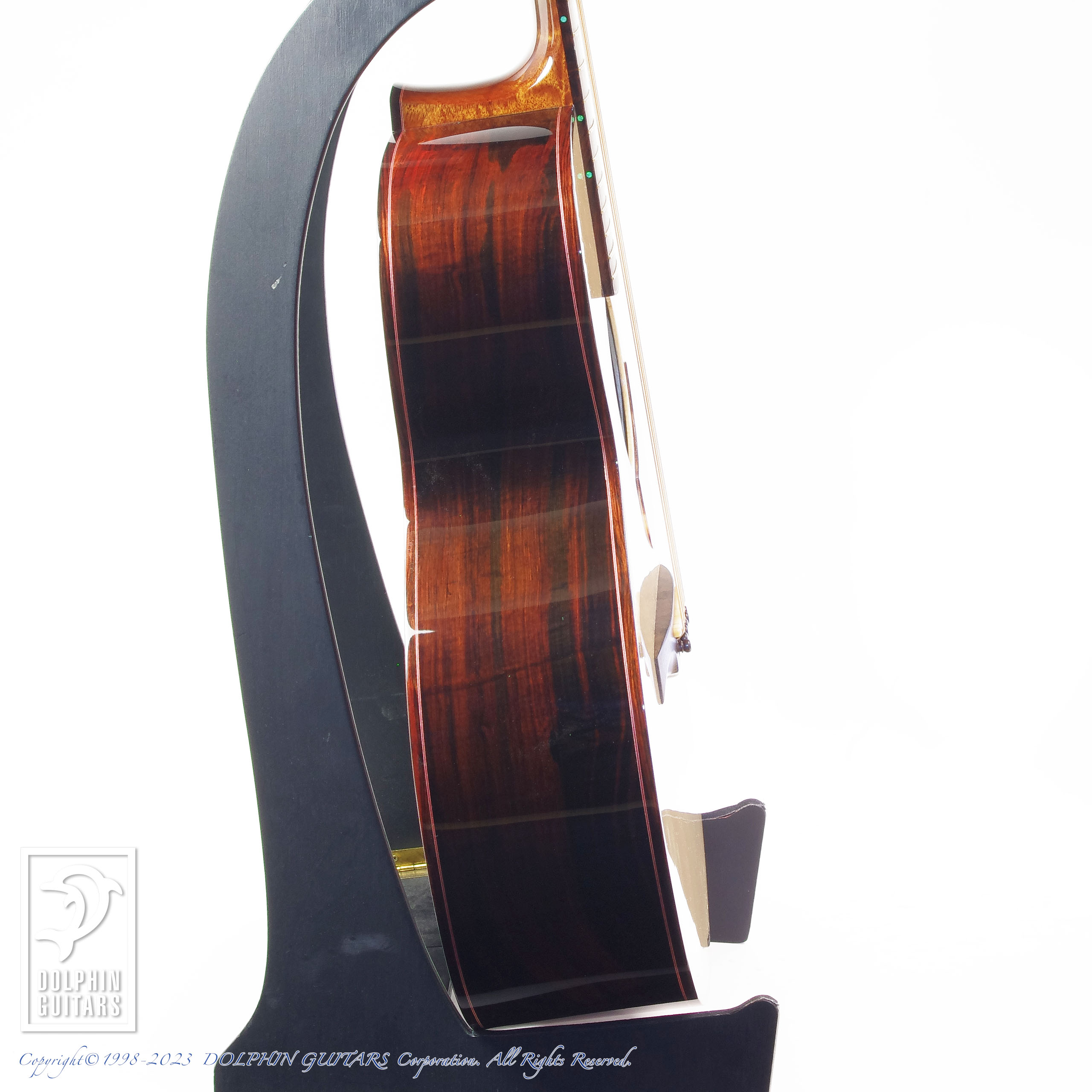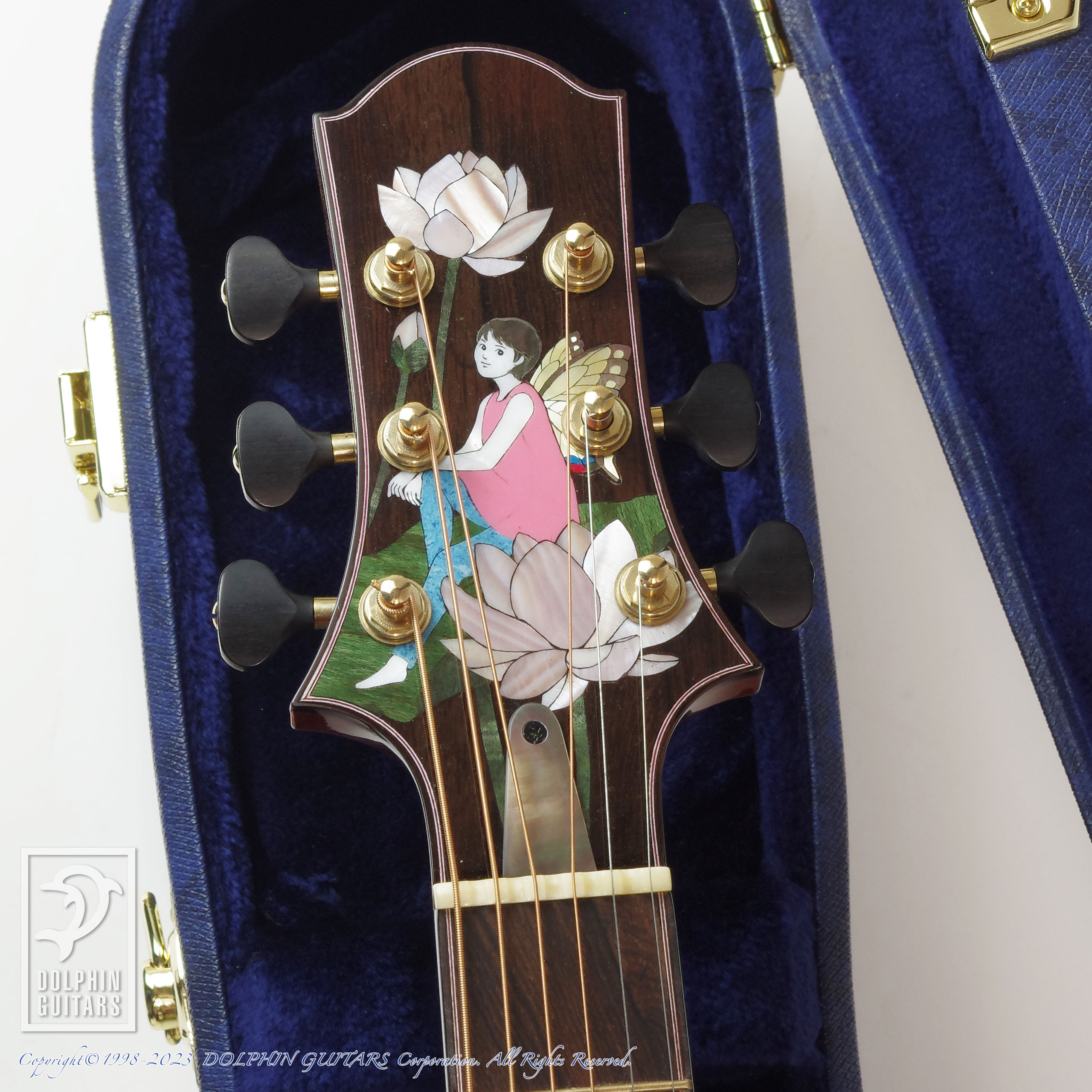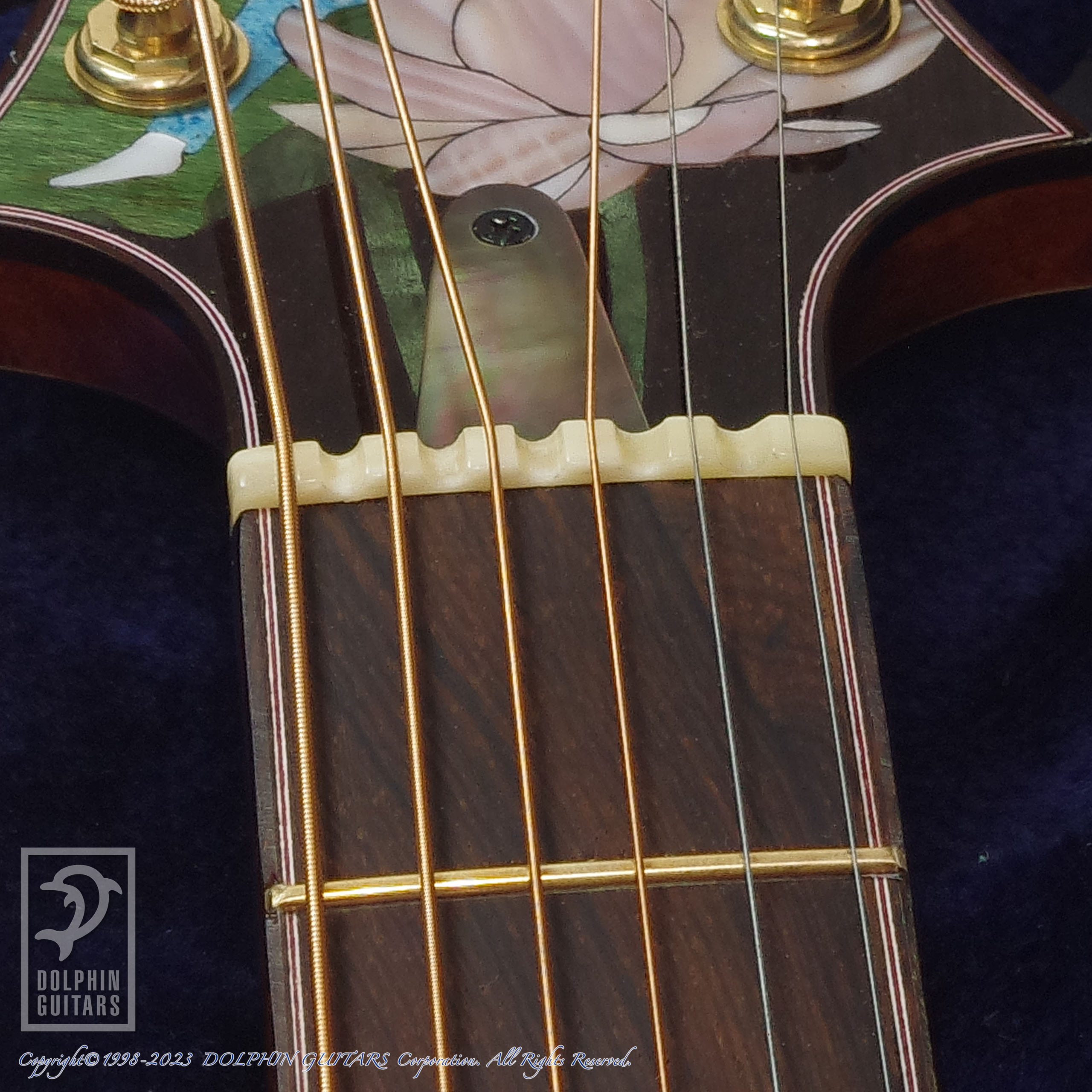 芸術とも言える美しい天然杢の使用も、材のストック量でもルシアー界随一とも言われるウォーターロードの魅力のひとつ。インレイデザインはカスタマーが希望されたデザインであります。