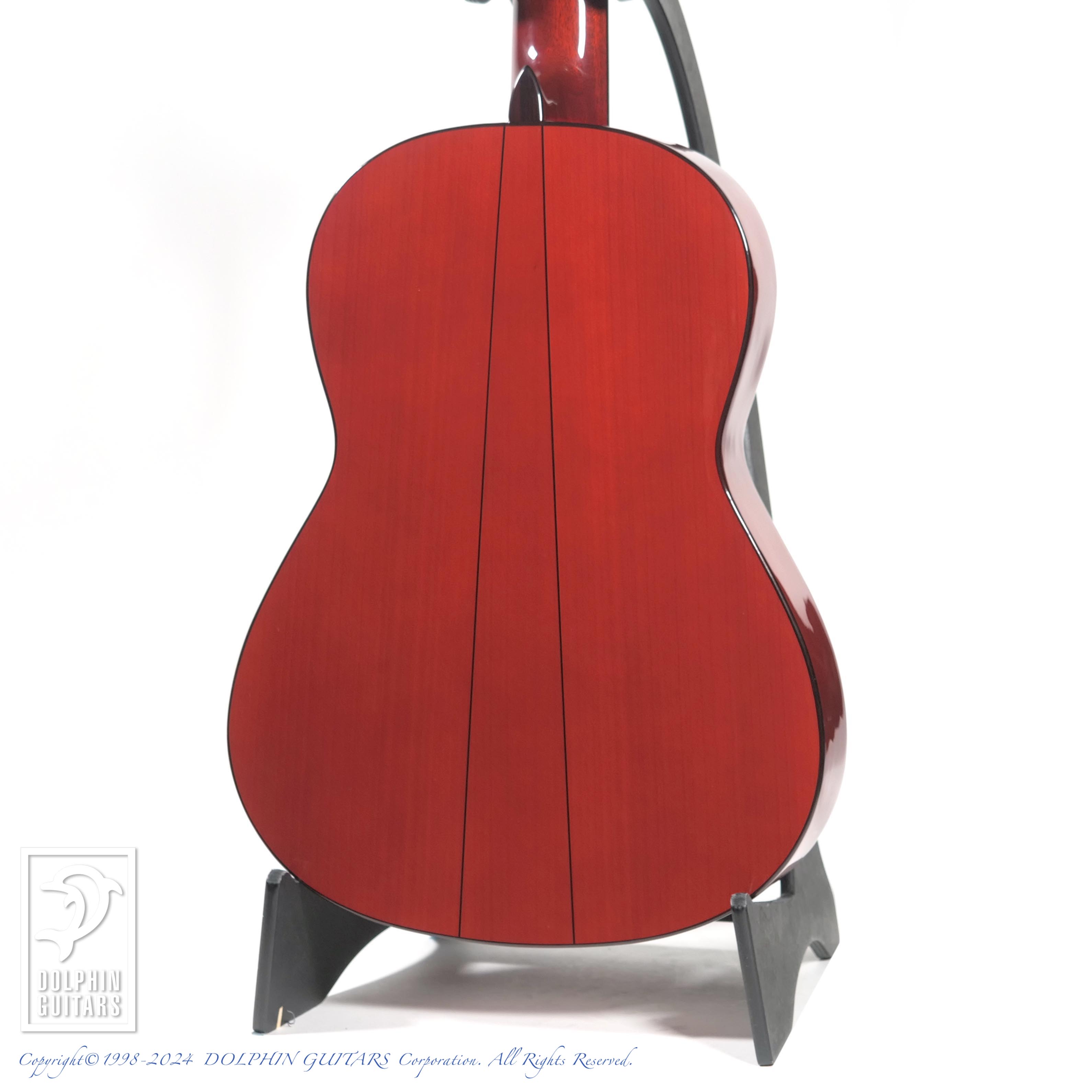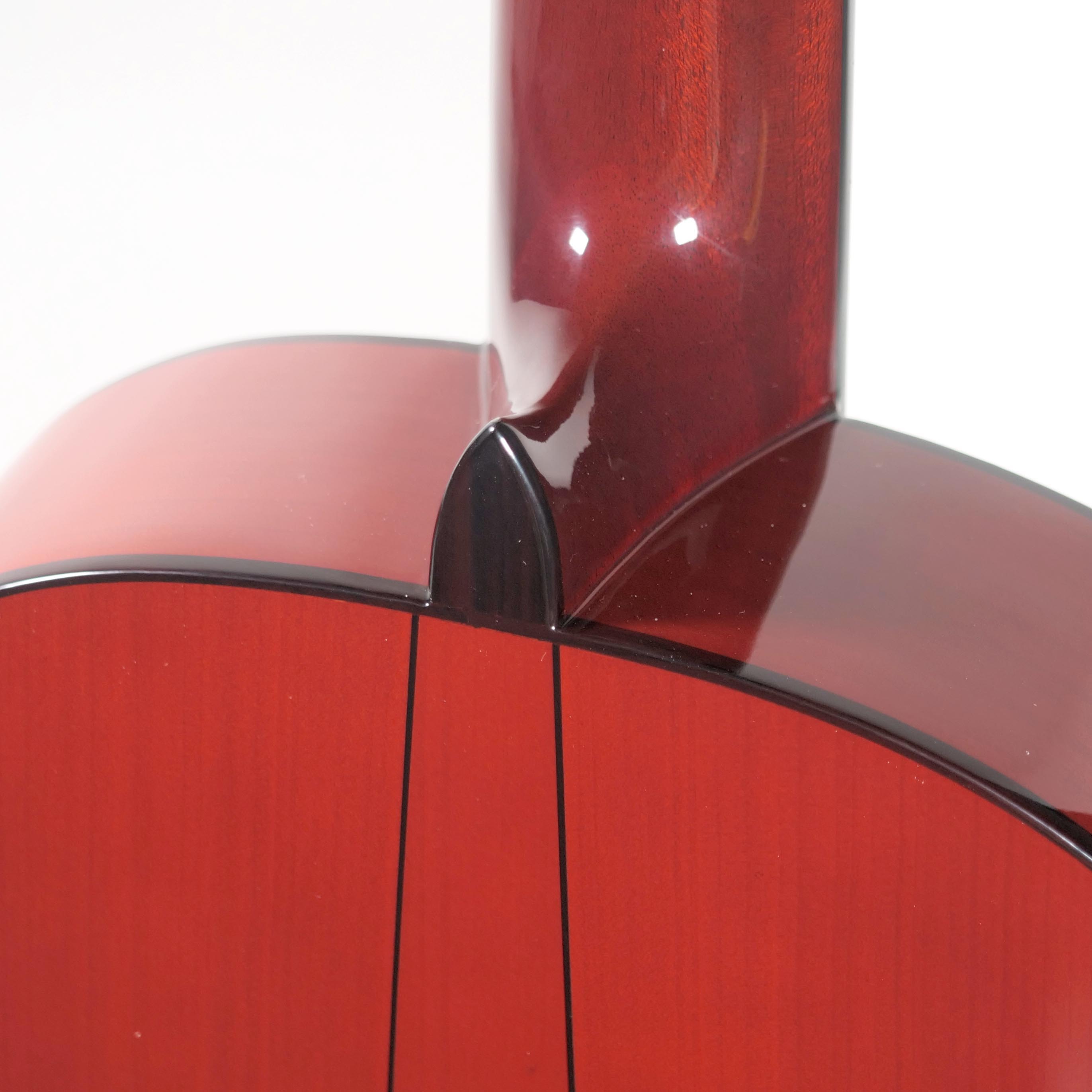アンドレ・レイエス(ジプシー・キングス)のシグネチャーモデルで、約80mmの薄胴(通常は約90mmほど)を採用したフラメンコギターとなっております。10mmほどの差ですが、実際に抱えると、そのストレスフリーなフィット感に驚くことでしょう。また赤く塗られたボディは情熱を感じさせます。