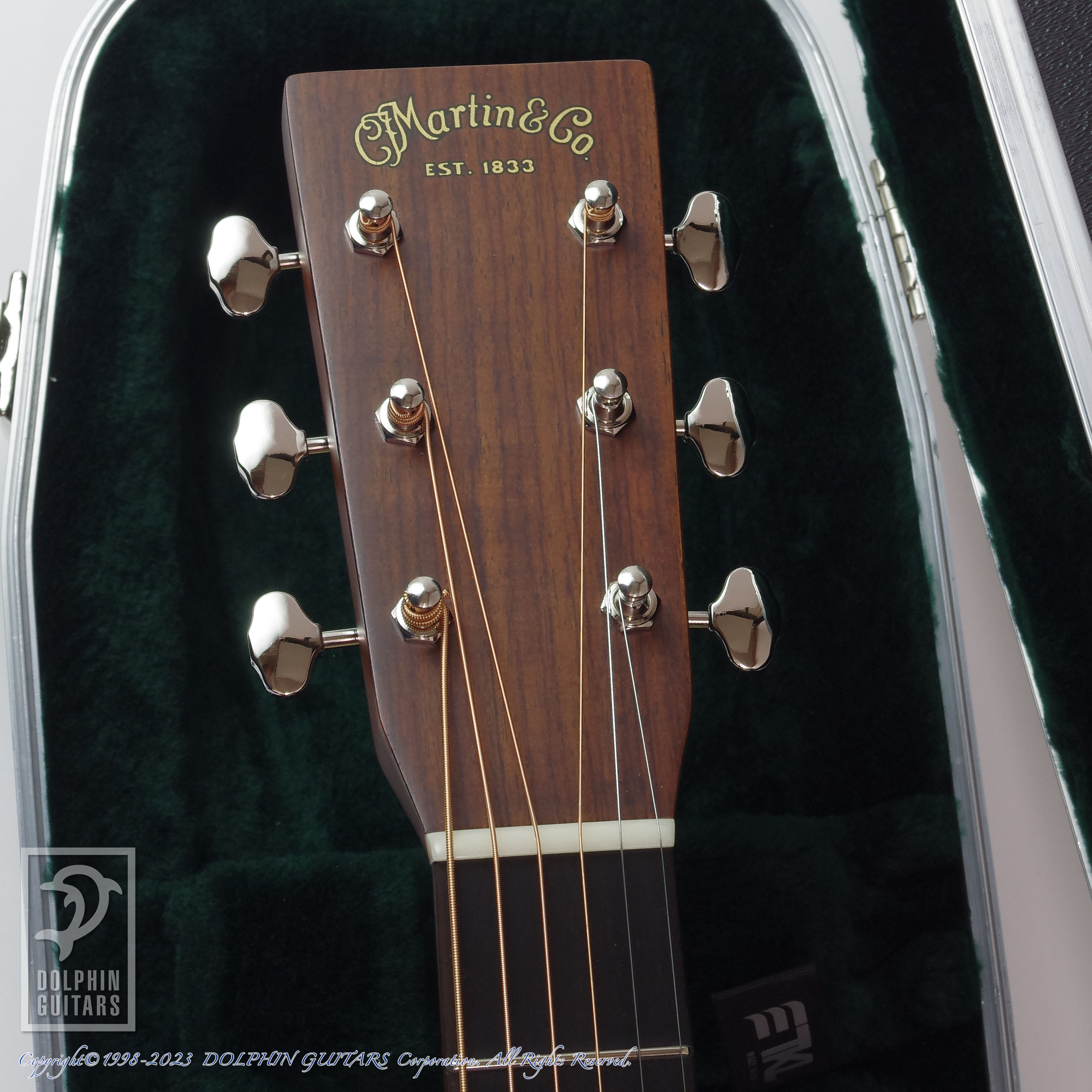 D-28 Standardはナット幅44.5mm仕様となっており、D-28の最初期である1930年代と同じ仕様ですが、本器は42.9mm仕様にて製作された特注品となります。本国アメリカでは44.5mmナット仕様を好む声が多いようですが、ここ日本では42.9mmナットのネックを好む方も多く、このスペックを探されていた方も多いのではないでしょうか。