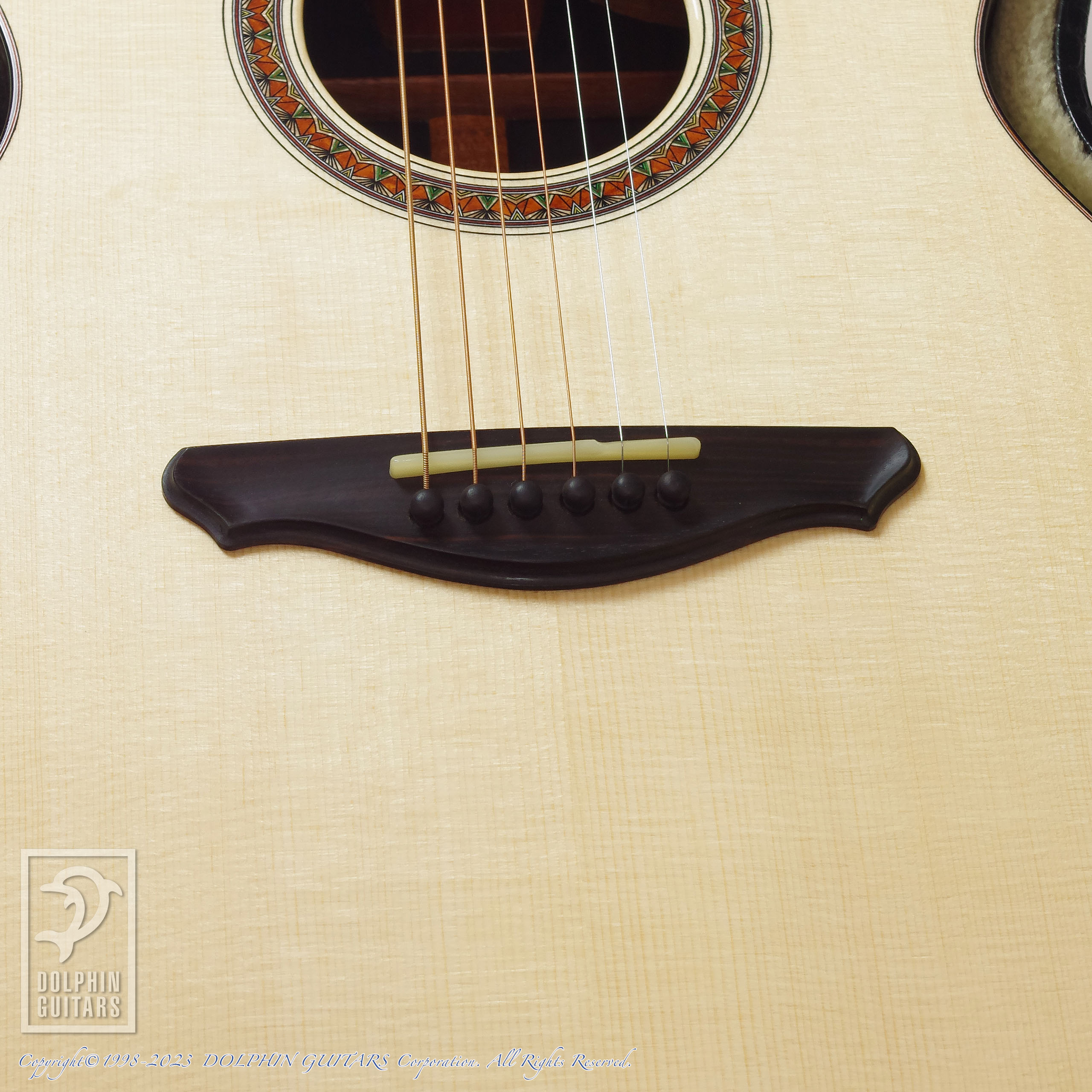 一音鳴らすとその迫力に驚かされるでしょう。Dサイズにも引けを取らない重厚さと倍音豊かなトーン、フジイギターズならではのロングサスティーンが高次元で交わり、ナチュラルリヴァーブを感じさせ、弾き手の表現力を最大限発揮してくれるでしょう。