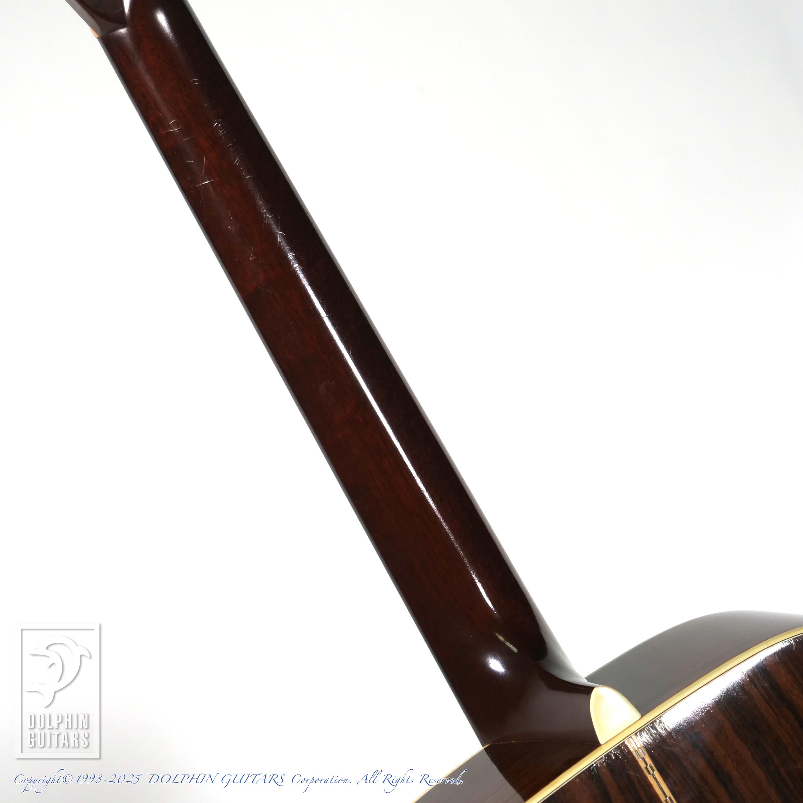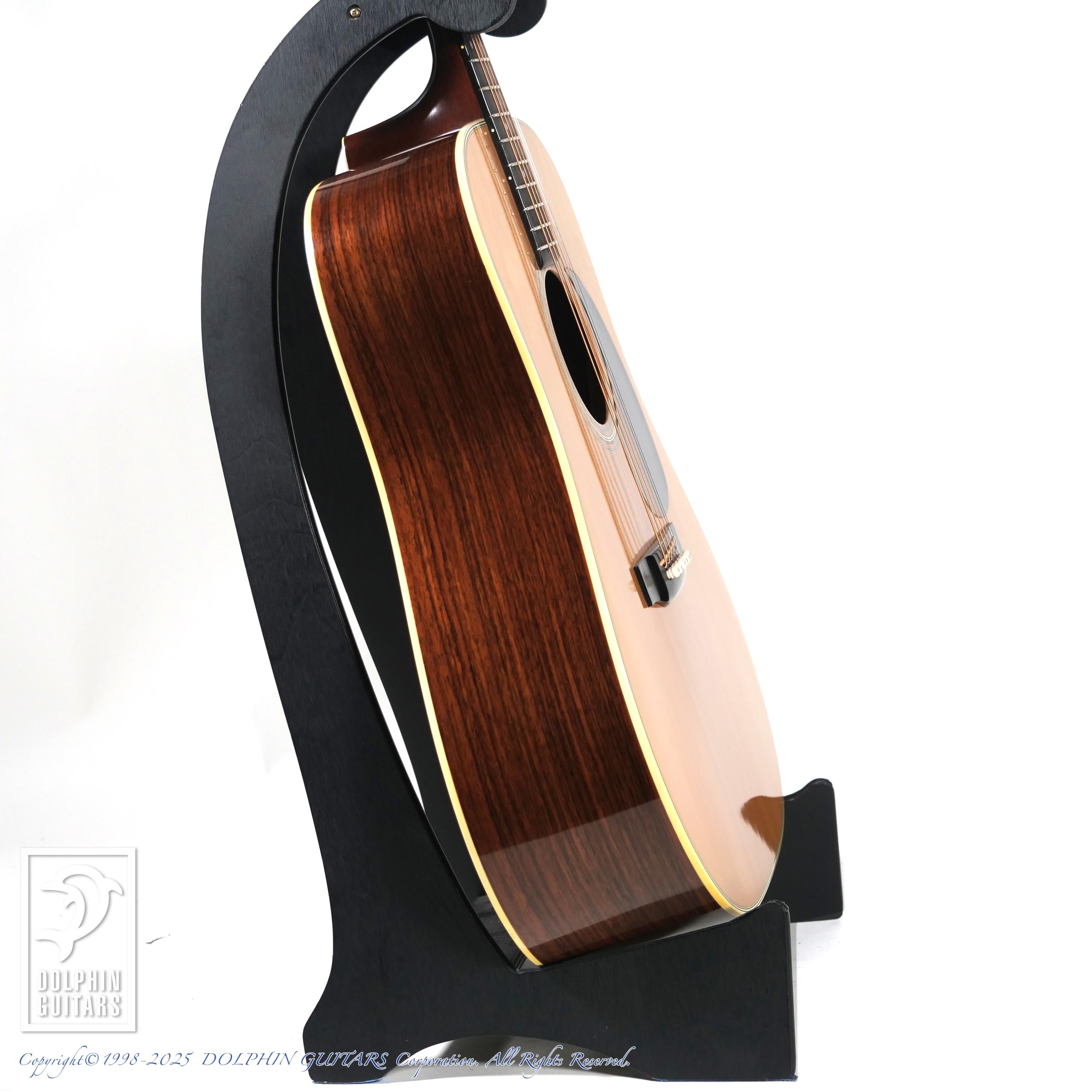 当時は高嶺の花として憧れを抱いていた人は、さぞかし多いことでしょう。ローズウッドの持つタイトな響きや重厚感、経年変化もあいまって絶妙なサウンドとなっております。倍音成分の多い45系のサウンドとは真逆のキャラクターで実にシンプルなサウンドを持ち、ストロークはもちろん、繊細なアルペジオにもバッチリとハマります。