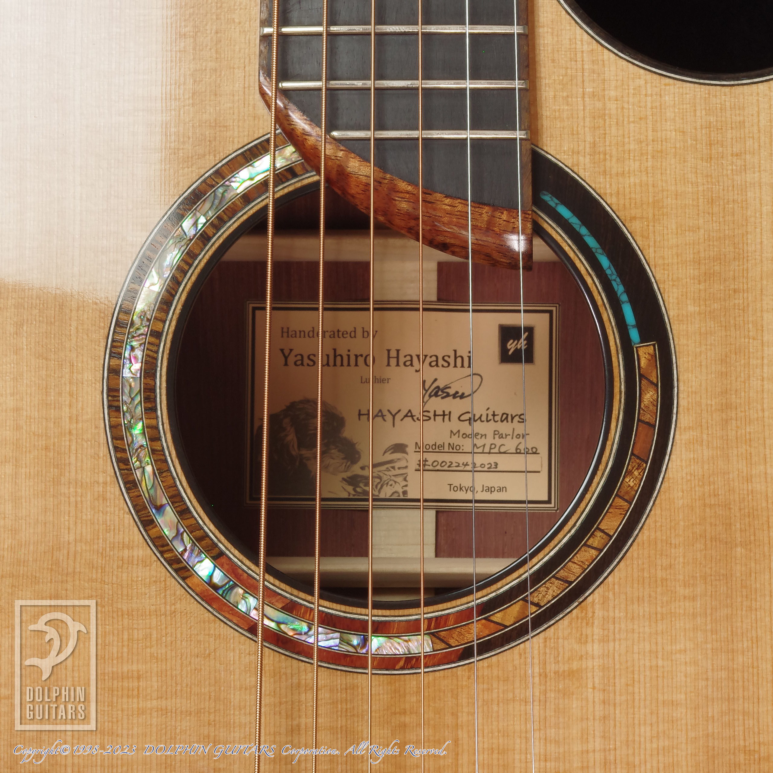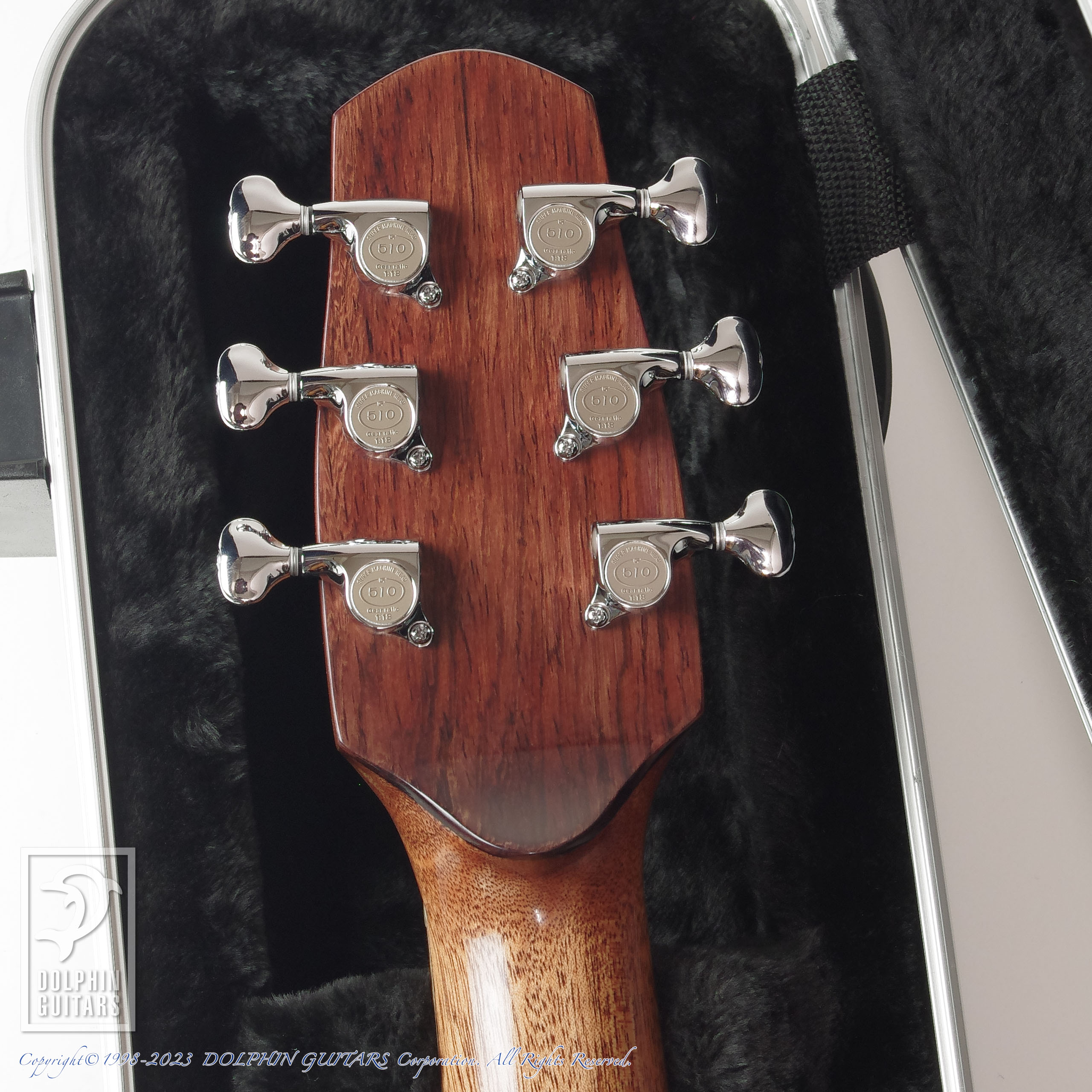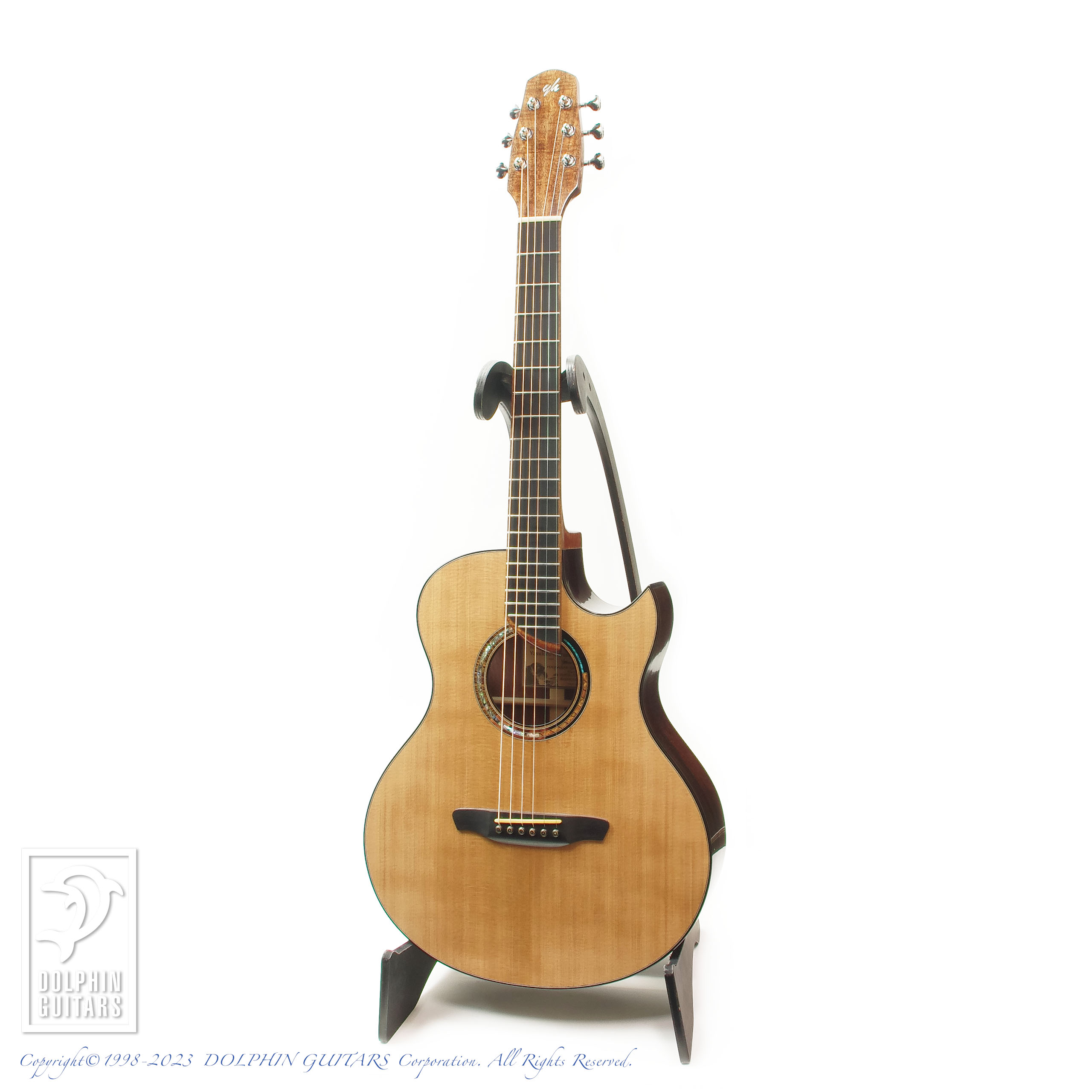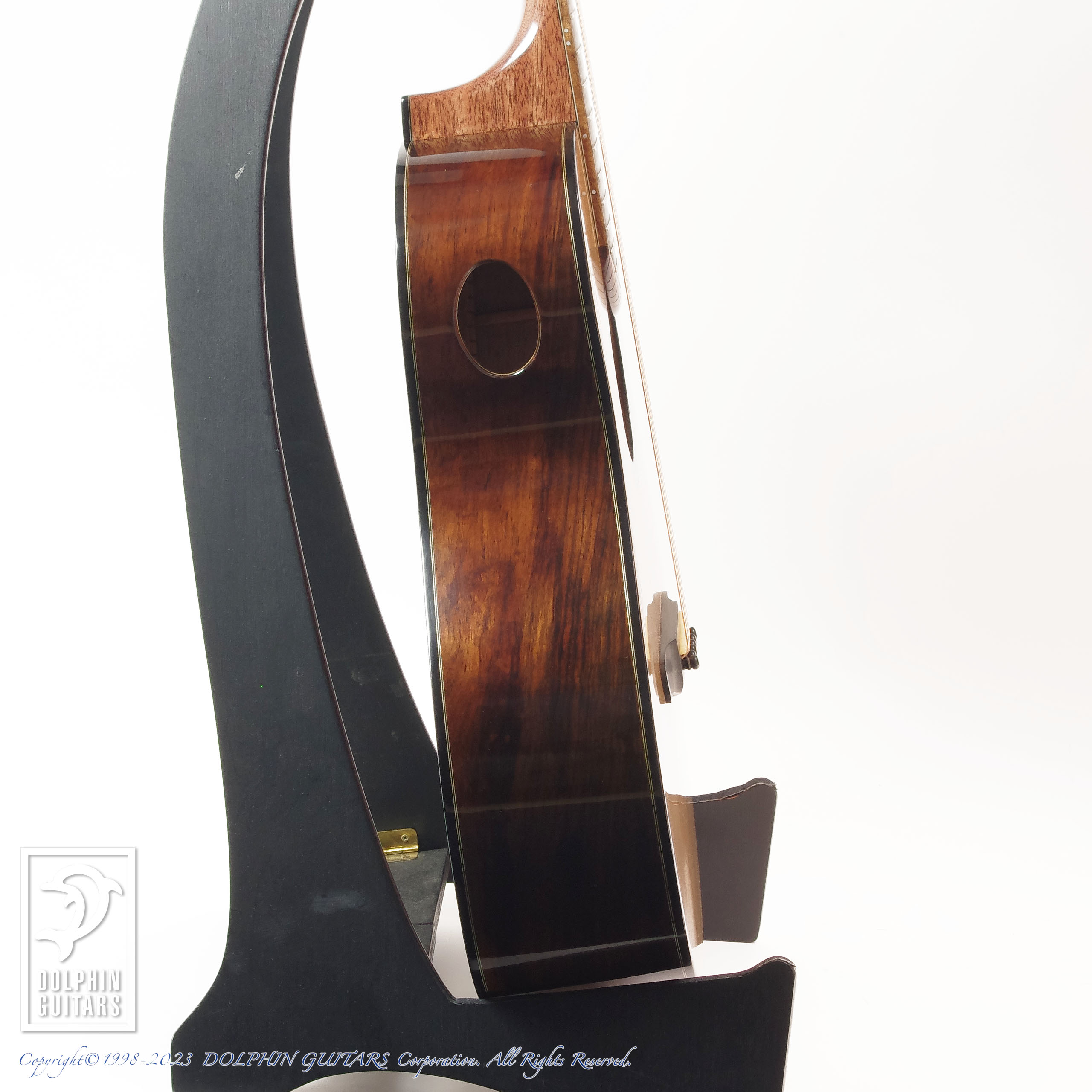 その他:44.5mmナット幅、600mmスケール、牛骨ナット・サドル、サイドサウンドポート、14フレットジョイント、エボニーバインディング、ウッド&アバロンモザイクロゼッタ、ハワイアンコアヘッドプレート、ソリッドヘッド。