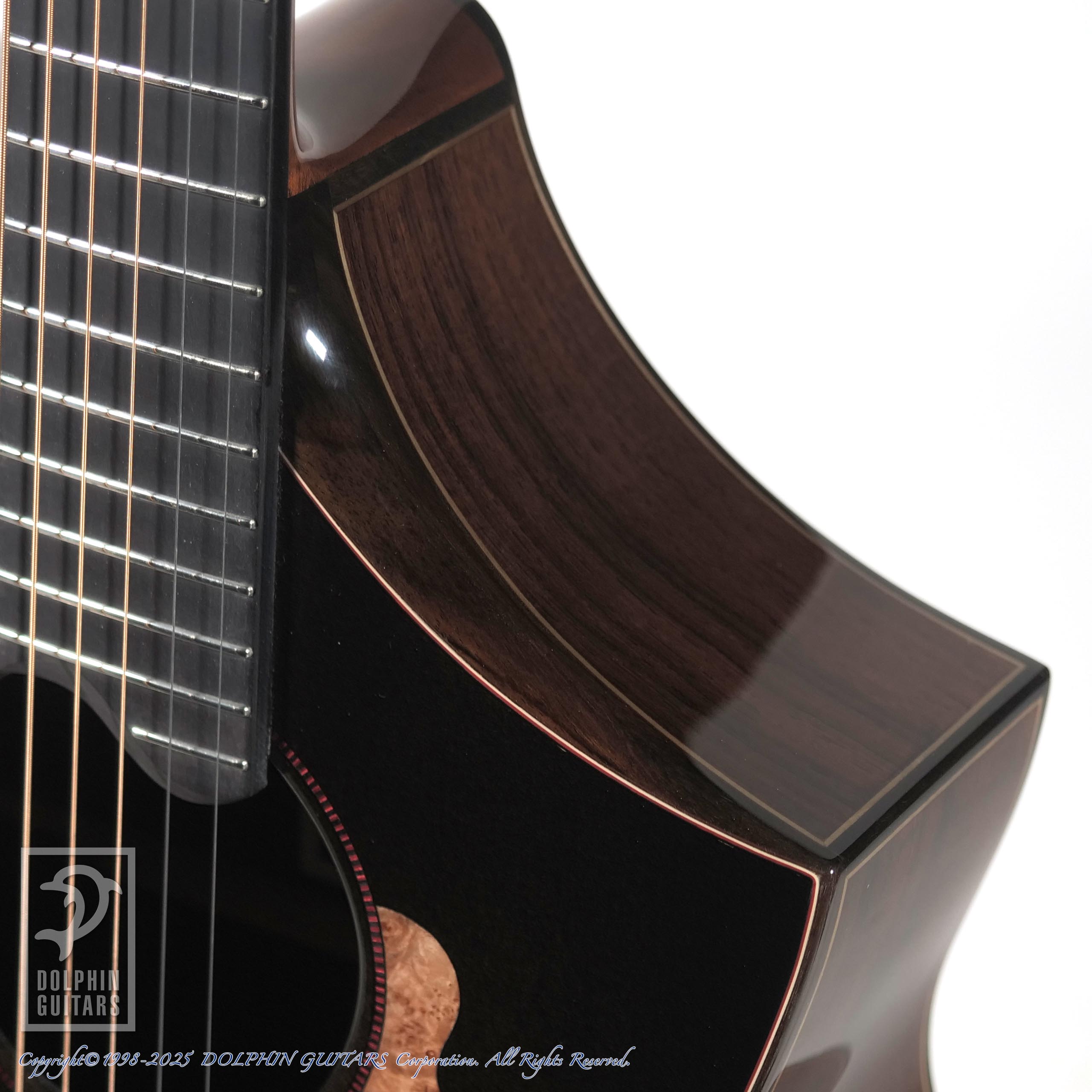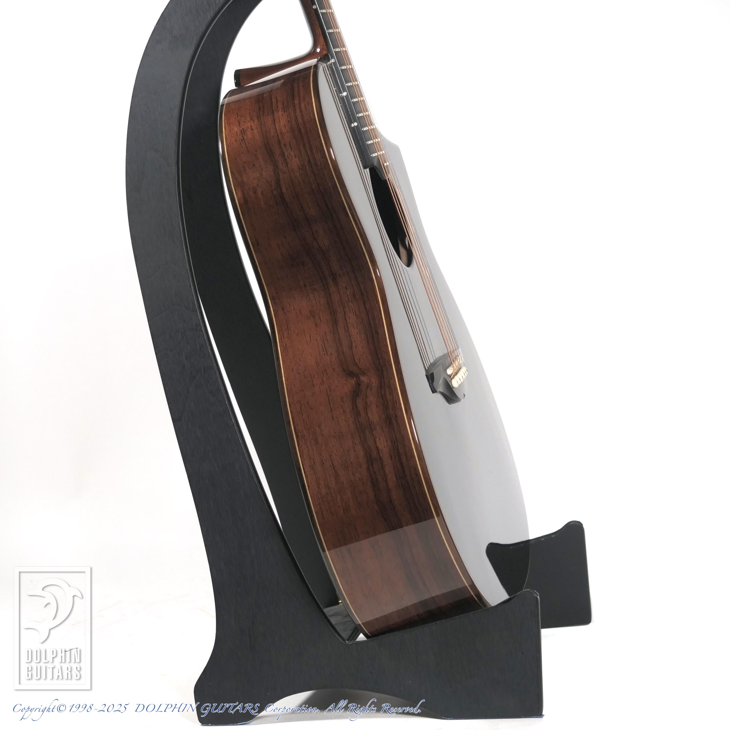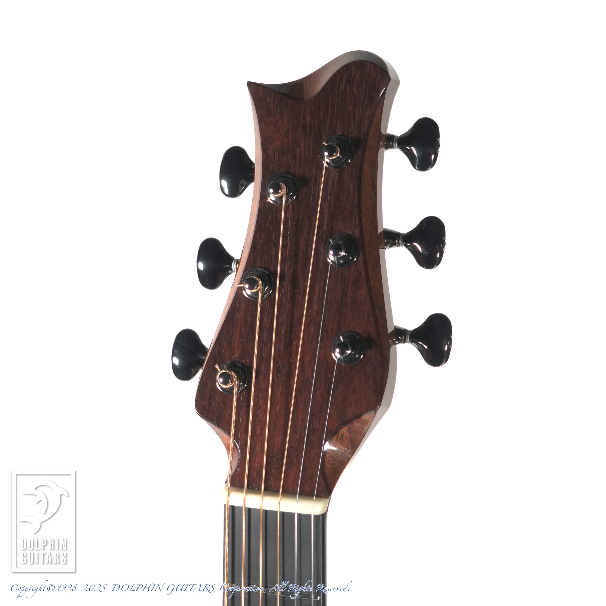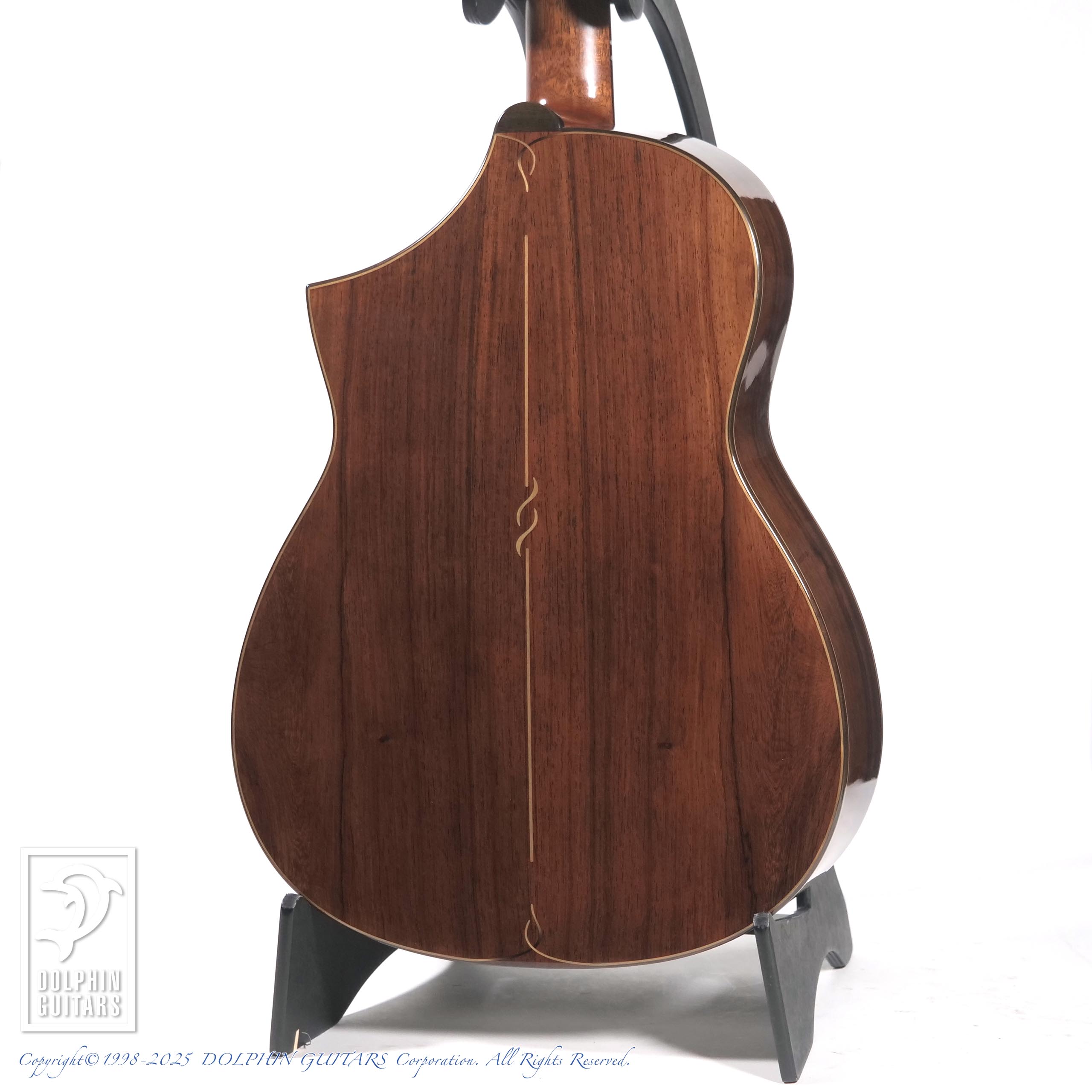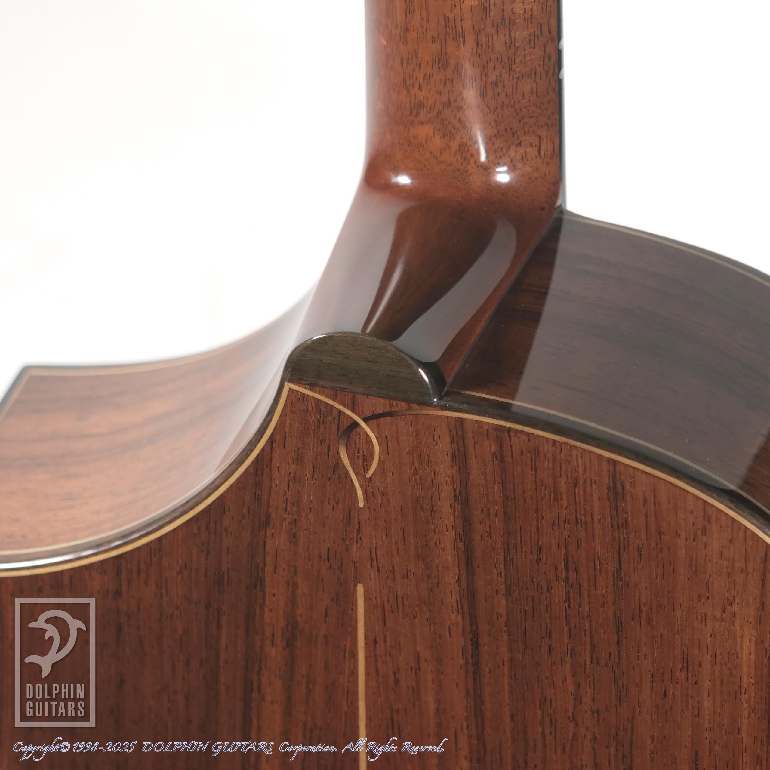 パドゥーク材の赤を基調としたデザイン、ピックガードを含めて板厚を調整したトップ板、ヒールレスネックジョイント、ベヴェルドカッタウェイ等のディテールは、高度な演奏性とサウンドを追求しています。