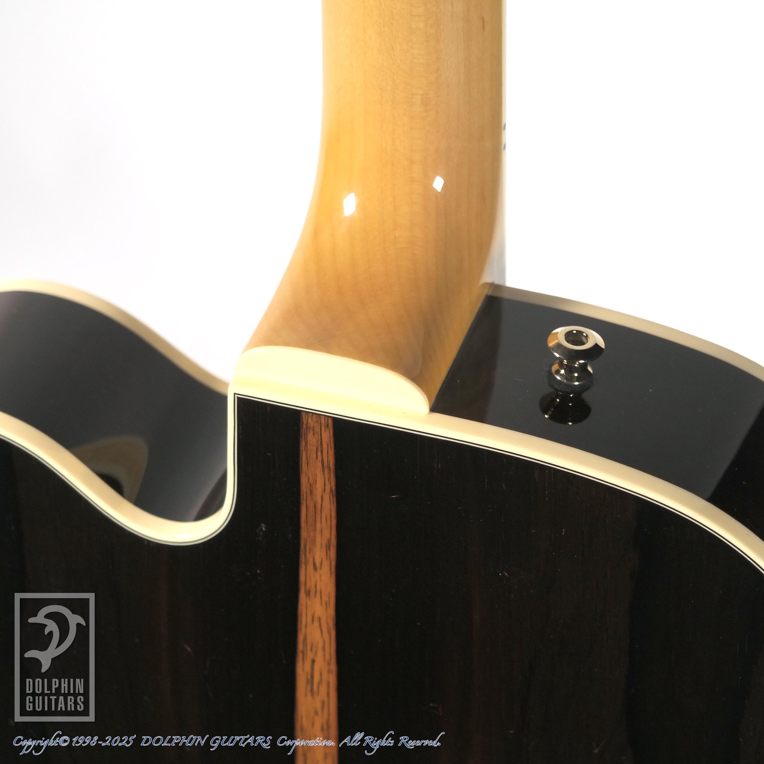 アコースティックギター愛好家の憧れでもあるハカランダを全面に採用した超特別仕様です。サップのアクセントも効いた、どこから見てもエキゾチックなルックスです。メイプルネックはナチュラル仕上げで、ハカランダともコントラストもグッドです。