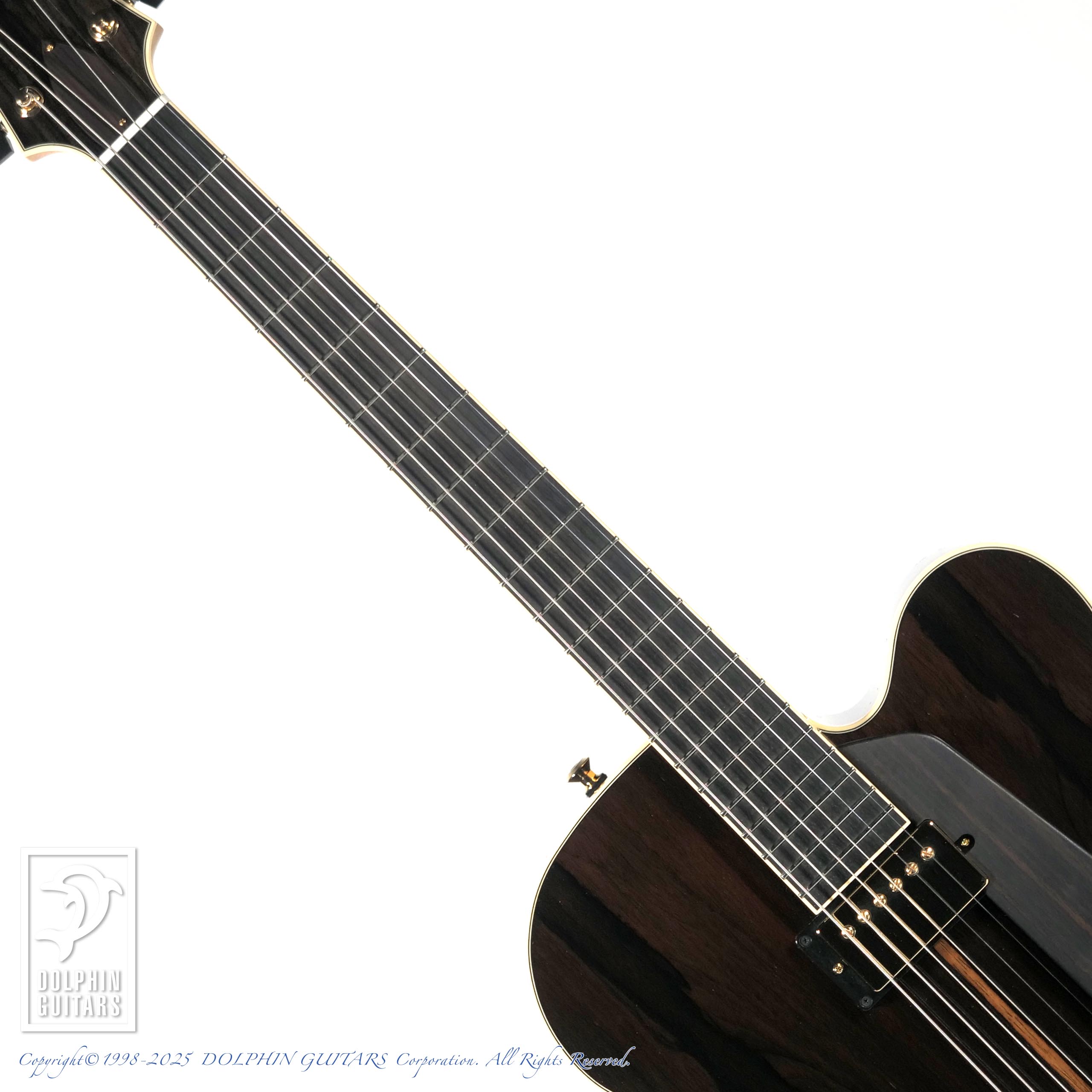 本器はベテラン・ギタリスト、ジム・ホールが愛用していたダキストのモデルをベースとし、ジム・ホールとサドウスキーが生み出したまさにJAZZギターの理想形とも言える、シグネチャー・モデル、The Jim Hall Modelの限定モデル。なんとハカランダを全面に使用した超贅沢仕様です。