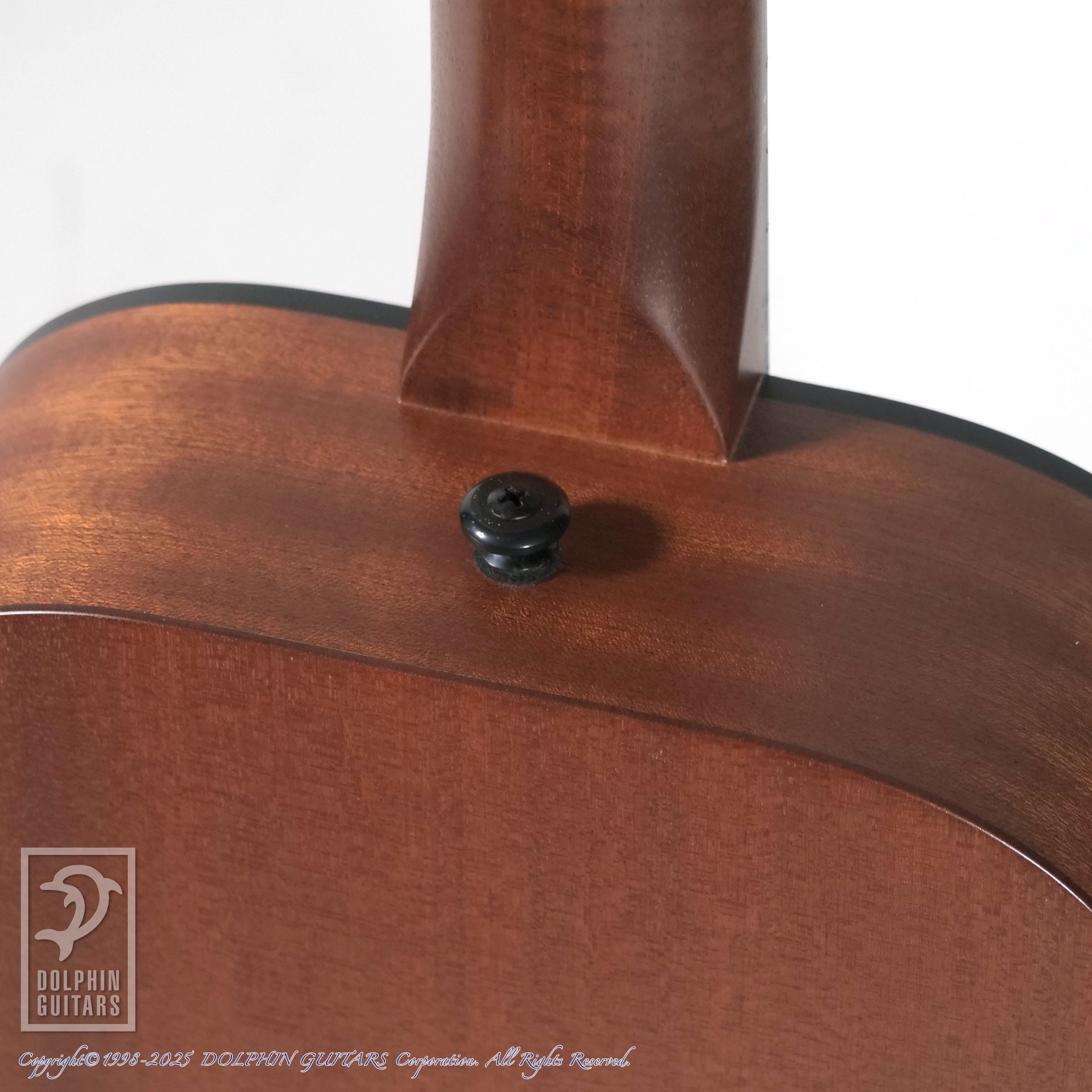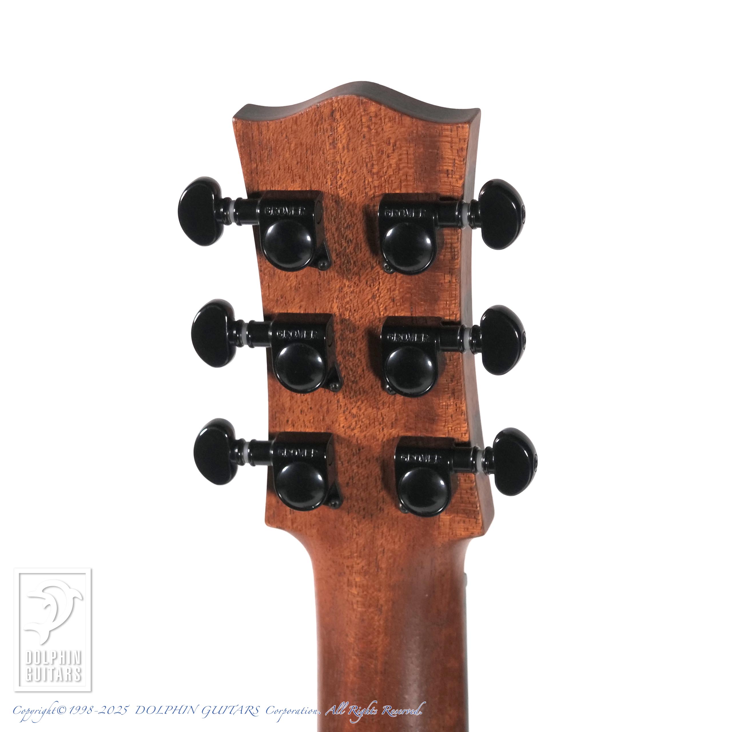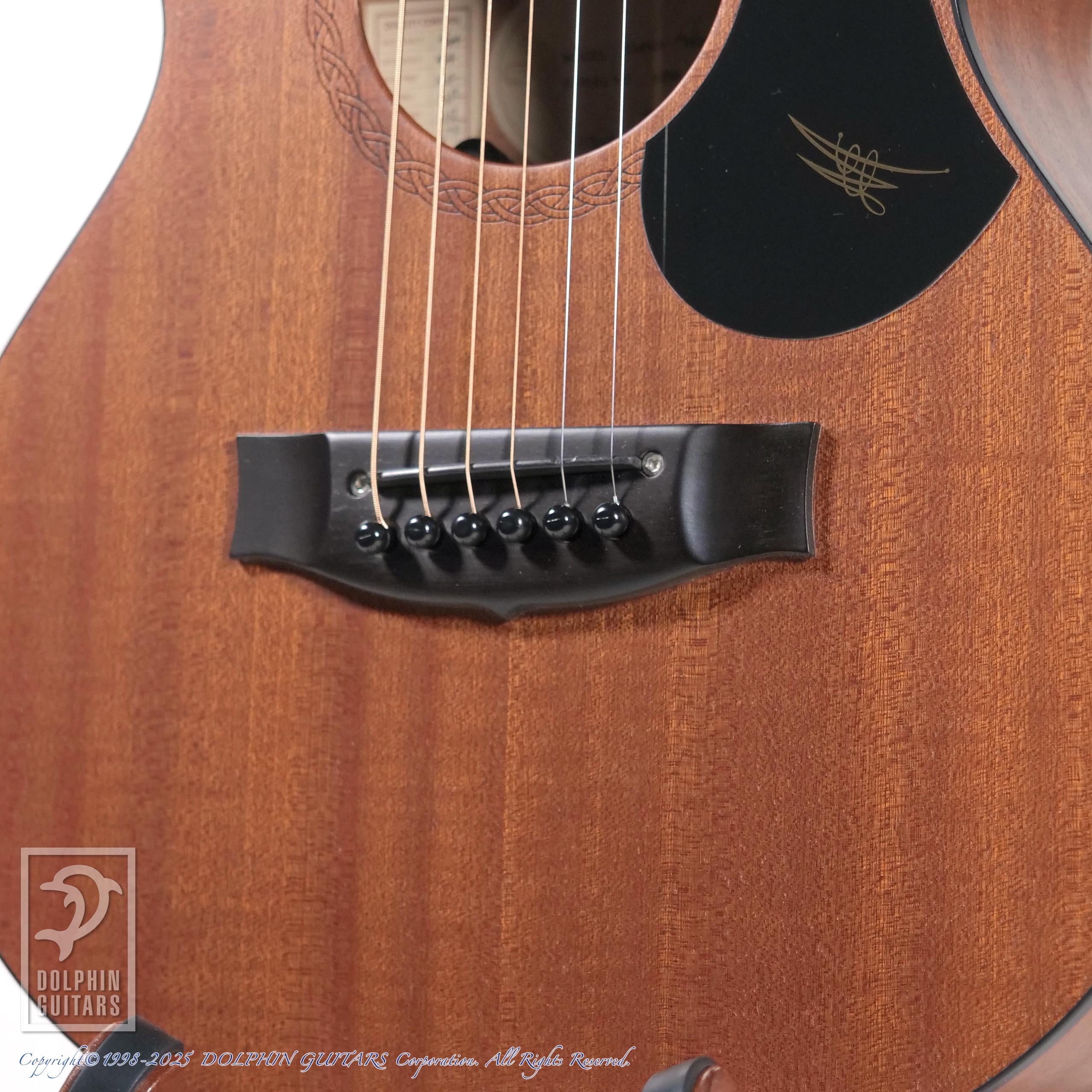 ボディ材はサペリマホガニーを使用し、スプルースTOPとは異なるサウンドを持ち、マホガニー系統の柔らかく、この仕様ならではのミッドレンジが特徴です。ペグ、PG、ブリッジピン、ナット&サドルやブランドロゴまでブラックで統一されたデザインもお洒落です。