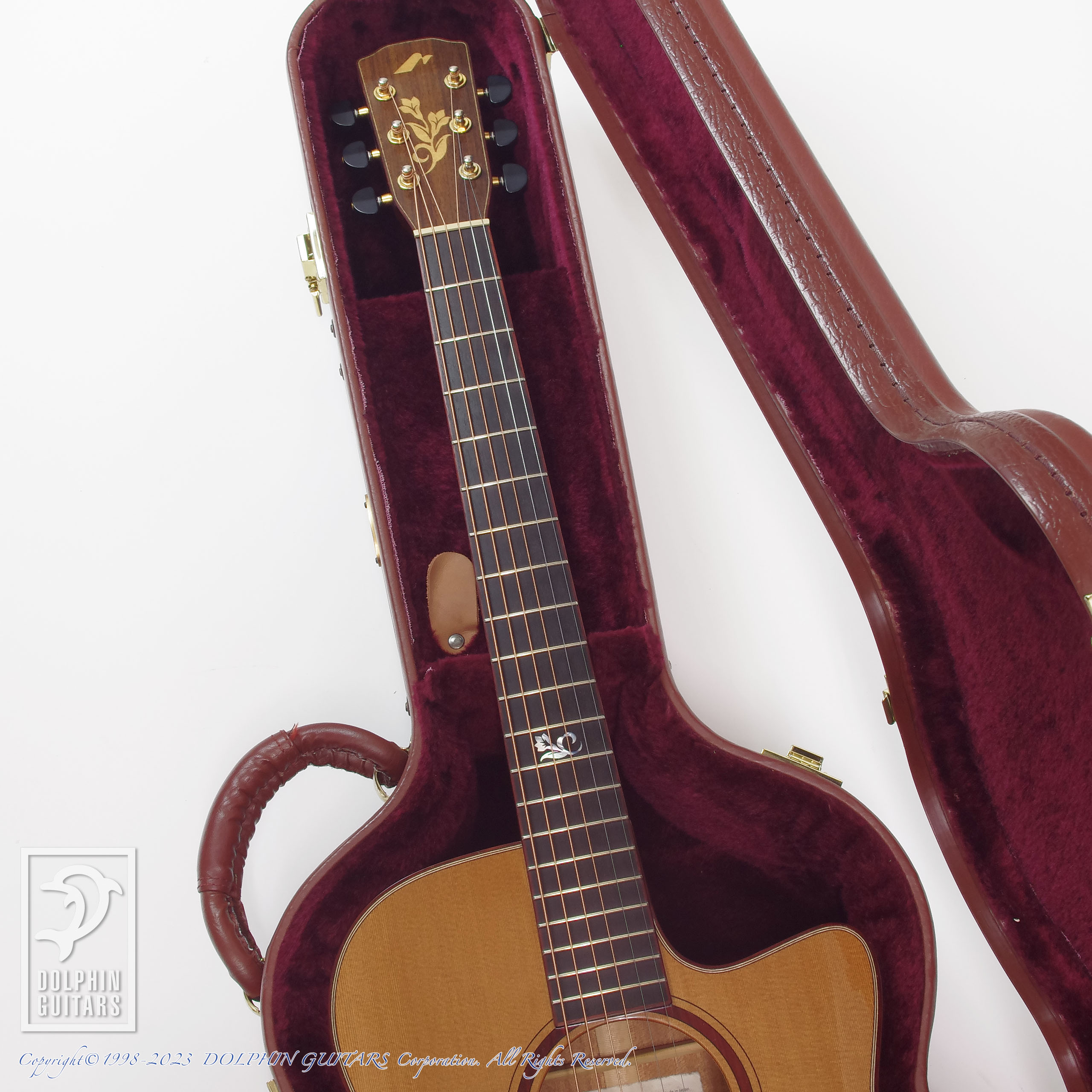 過去にトップ材 指板横のクラック補修履歴があり、パッと見ではわかりにくいほど綺麗に補修されてますので、このまま安心してお使いいただけます。新品時に搭載されていたB BAND PUシステムは取り外しされております。弦高は6弦12F 2.3mm / 1弦 1.7mmのセッティング。ネックは反りも見られず、トラスロッドの効きも良く、フレットの減りはローフレット側で僅かに見られる程度です。ケースはオリジナルの専用ハードケースが付属します。