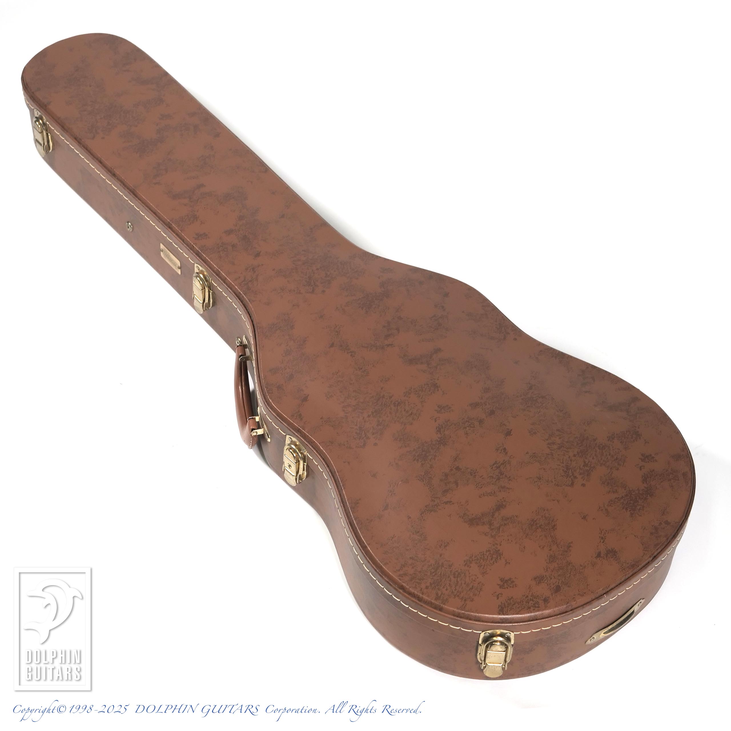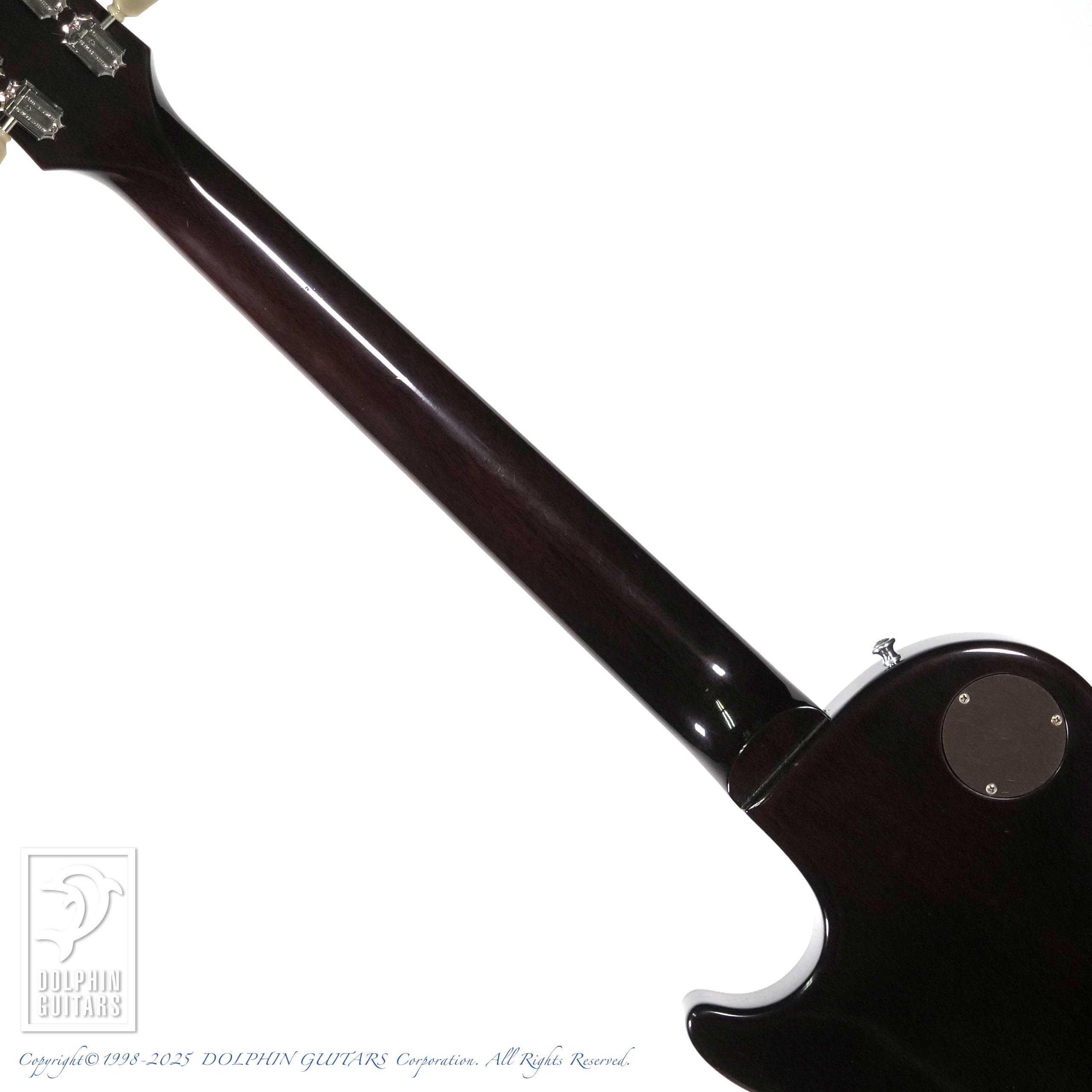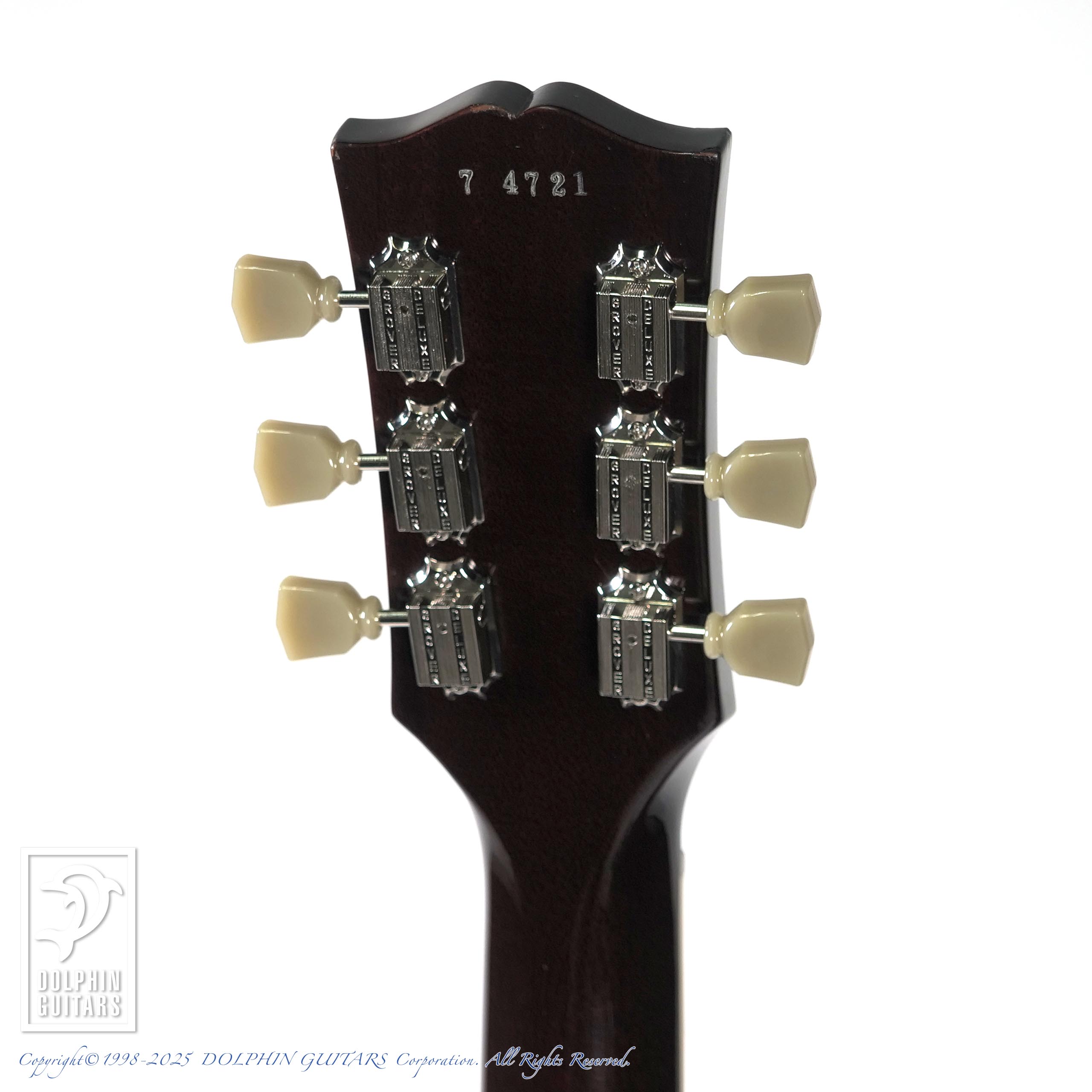 ダークブラウンに着色されたダークバックマホガニーとゴールドのコントラストが美しい1957仕様のレスポール。トップのゴールドも濃く深みのある表情で渋い仕上がりです。