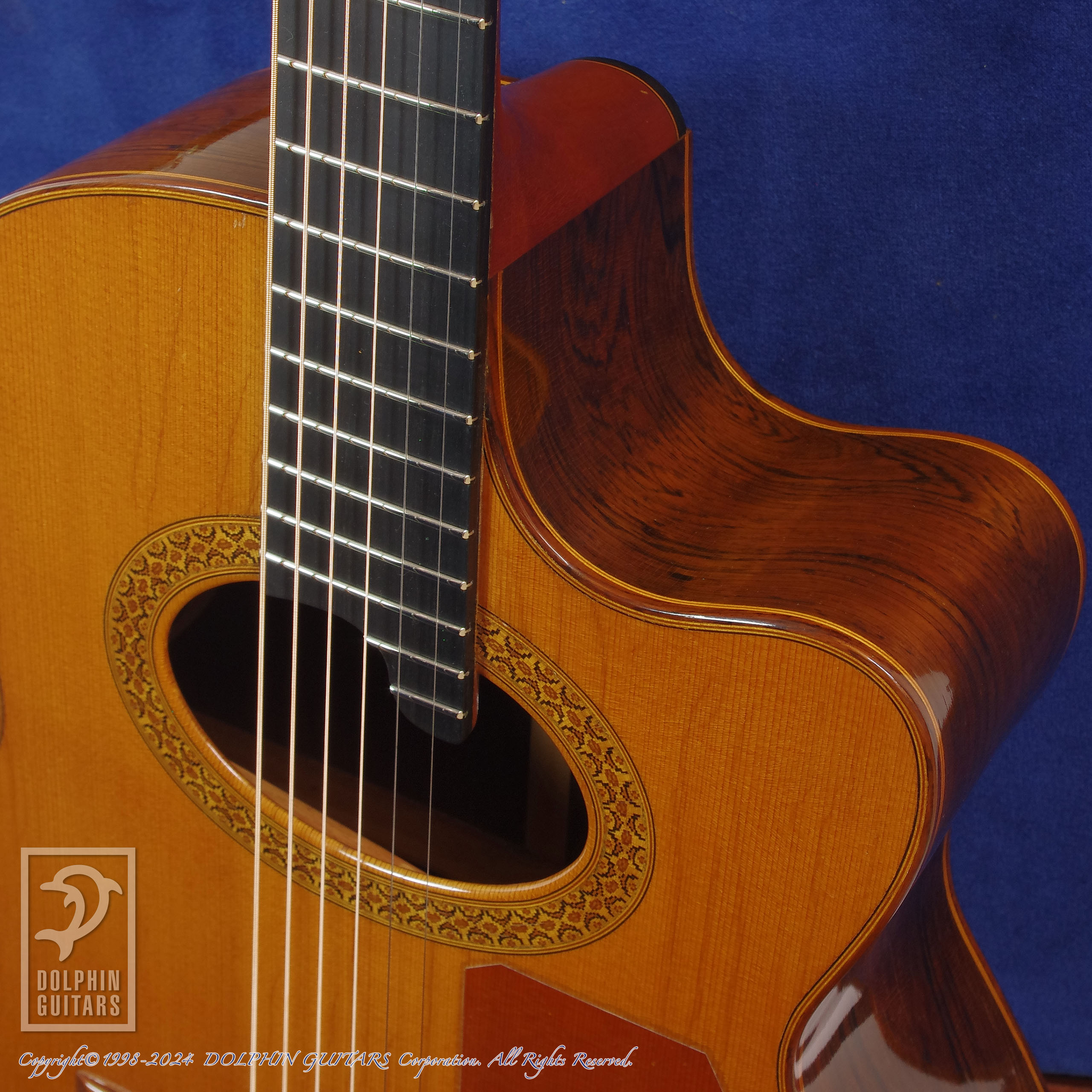 日本では入荷本数が極端に少ない故 多くは知られていない製作家ですが、ヘッドシェイプや楕円形サウンドホールといった個性的なルックスに、クラシックギターのエッセンスも感じられるサウンドで、一度弾くとその名を忘れることはないでしょう。