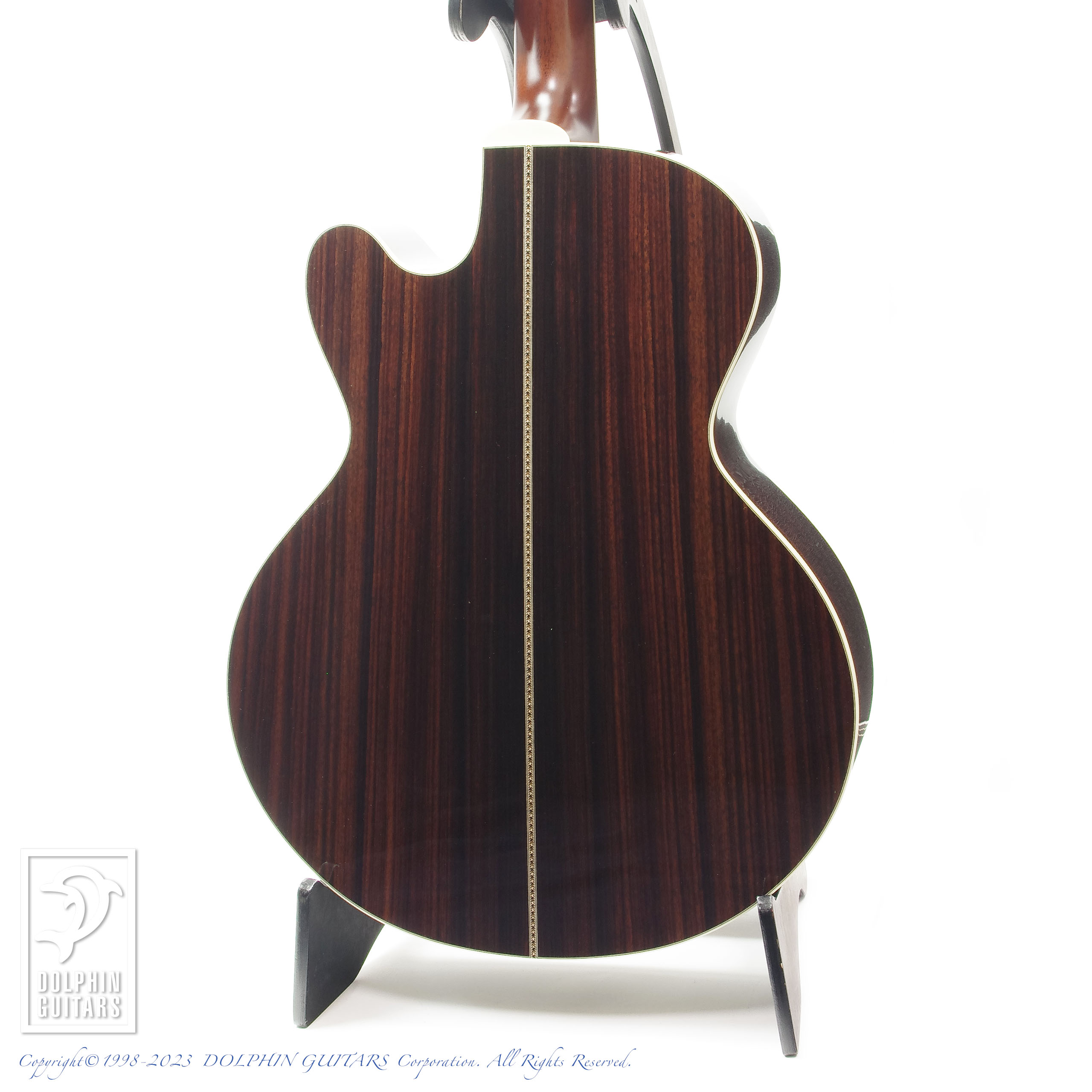 見た目からは重量的に重い印象を持たれるかと思いますが、実際には軽量さを感じさせるモデルであり、その軽さが現在のサンタクルーズサウンドを作り出している大きな要因でもあります。少人数のチームでの製作であり、木工精度の高さやフィニッシュの美しさ、デザイン力の高さなど、すべてが最高峰の作りであります。ここ日本では同じスペックのF Cutawayは存在しないでしょう。1本もののカスタムですので、興味を持たれた方はぜひお試しください。