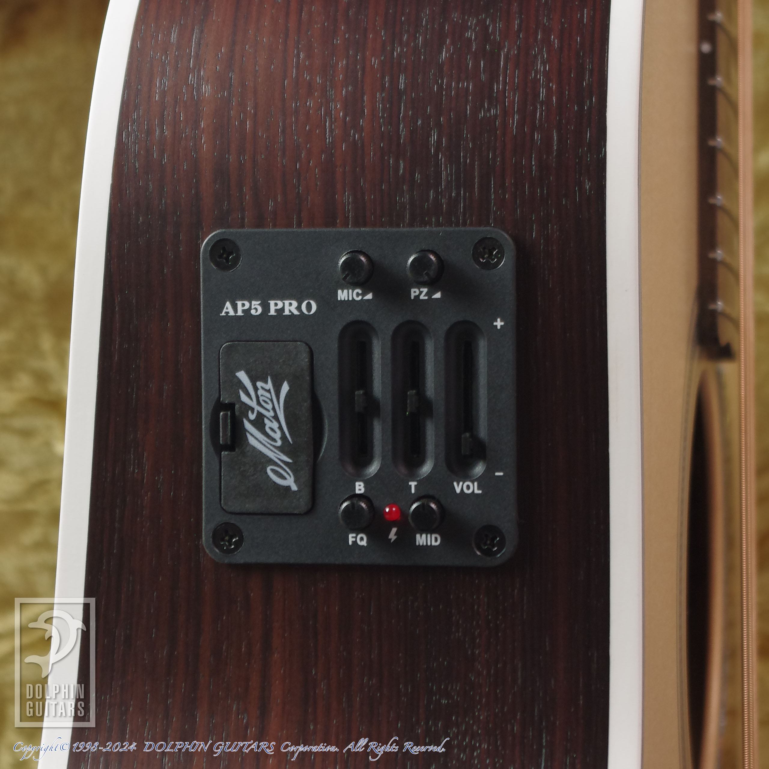 メイトンの魅力の一つでもあるピックアップシステム。メイトン社オリジナルのAP5-Proは特殊構造のアンダーサドルPUとコンデンサーMicをMixし、リアルなアコースティックサウンドをアウトプットします。