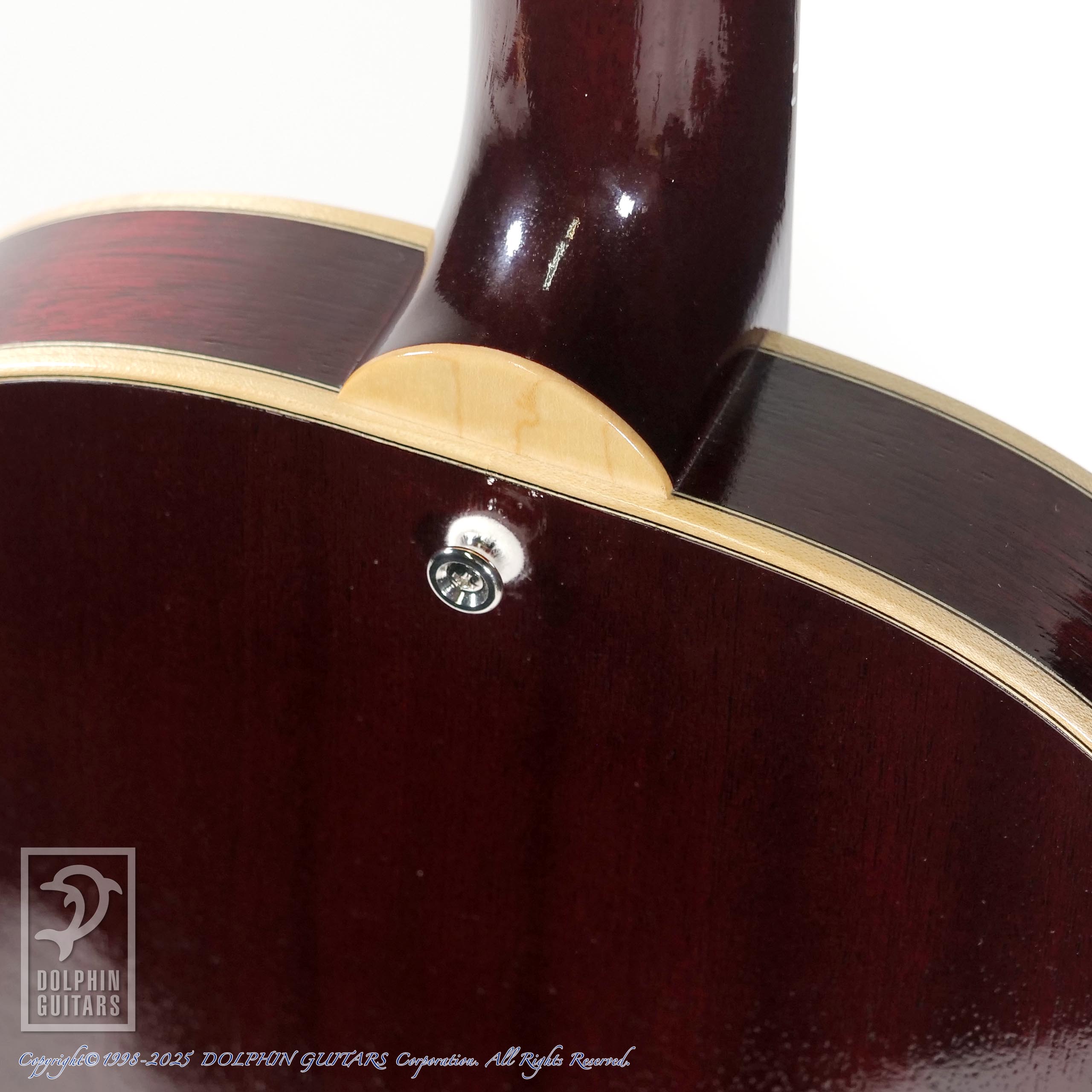 ノンカッタウェイ仕様、シンボディの珍しい仕様で、これはソファなどに腰掛けた時でも楽に抱えられ、かつ生音の豊かな響きを重視した設計です。