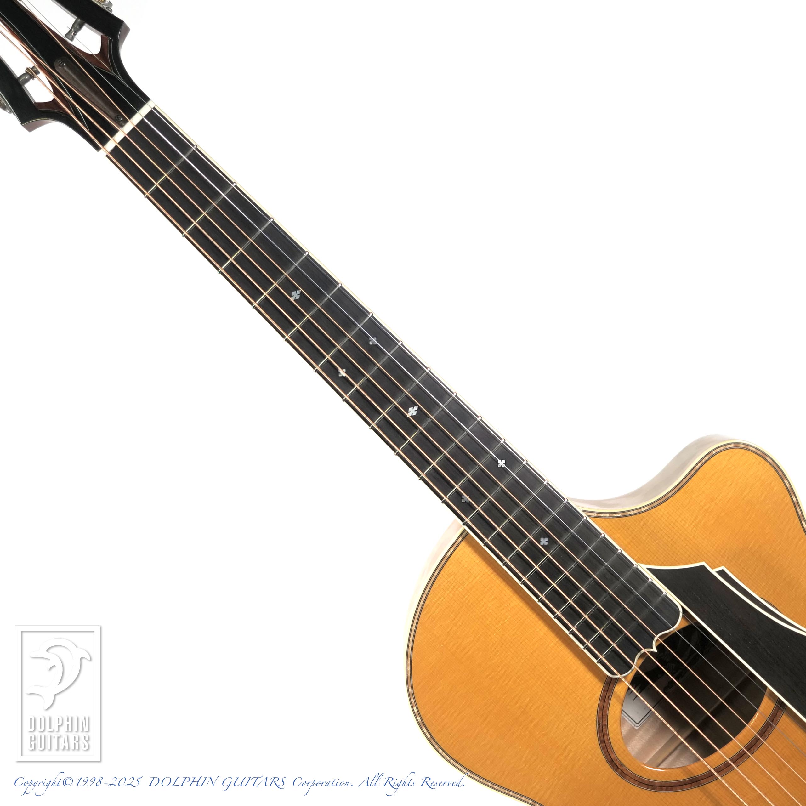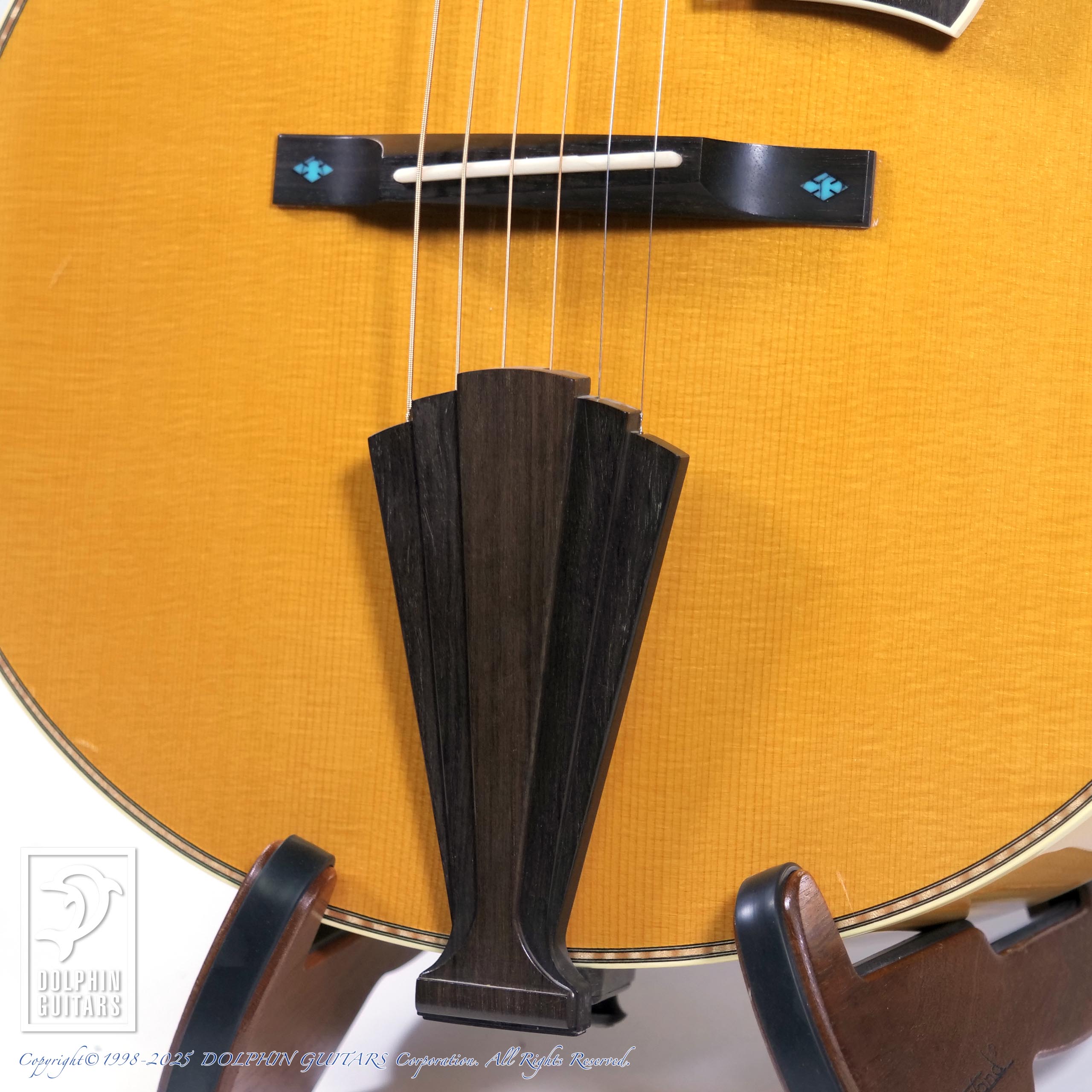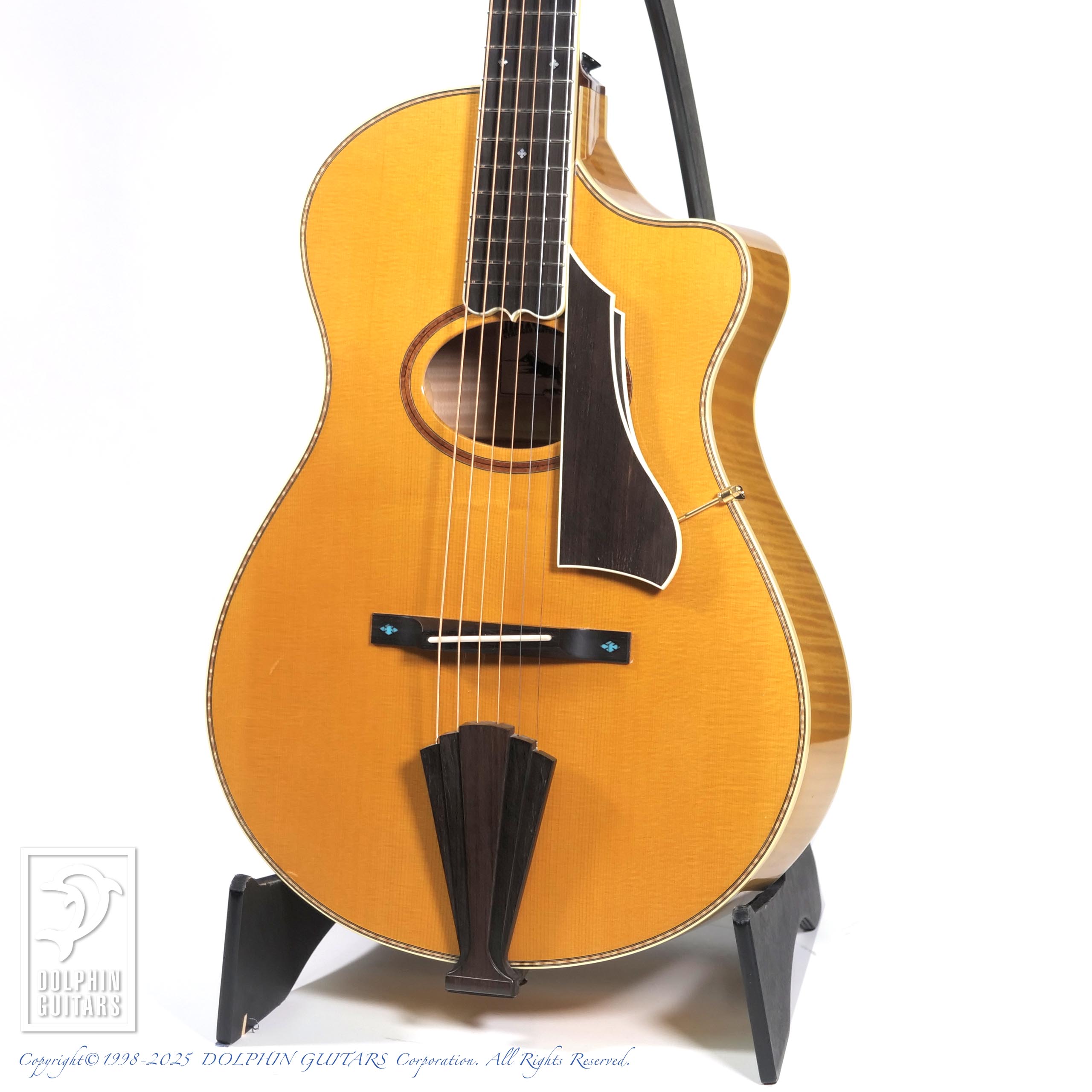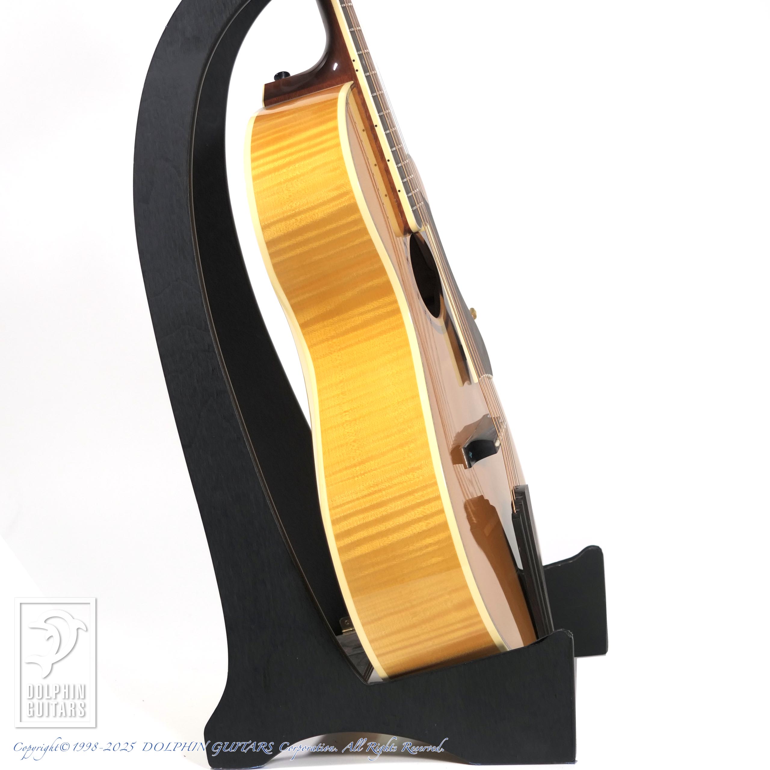 2017年にフルカスタムオーダーで製作された本器は、オーバルホールに12Fジョイント、スロッテッド、ボディコンター、そしてアーチトップギターのようなデザイン等々、こだわりスペックが随所に垣間見れます。この存在感は唯一無二でしょう。