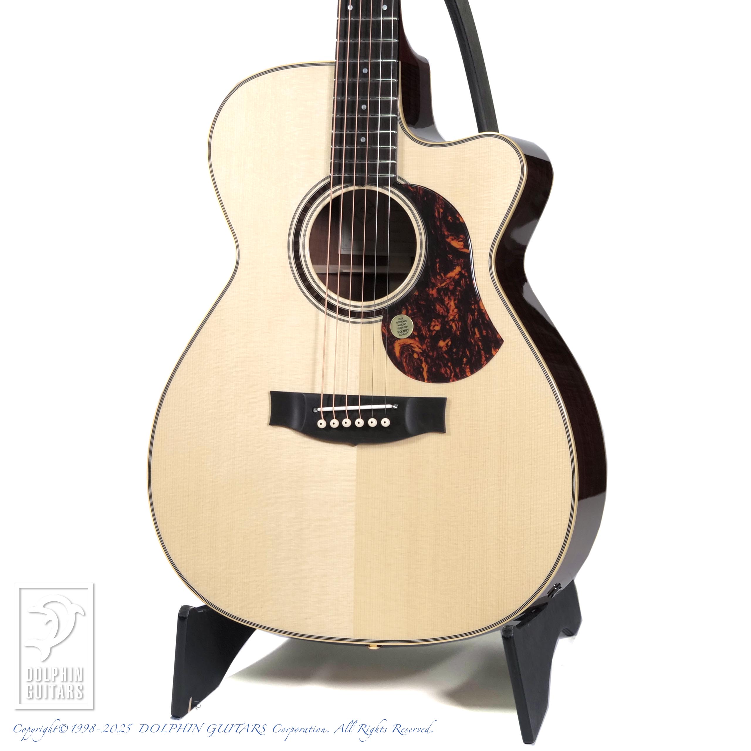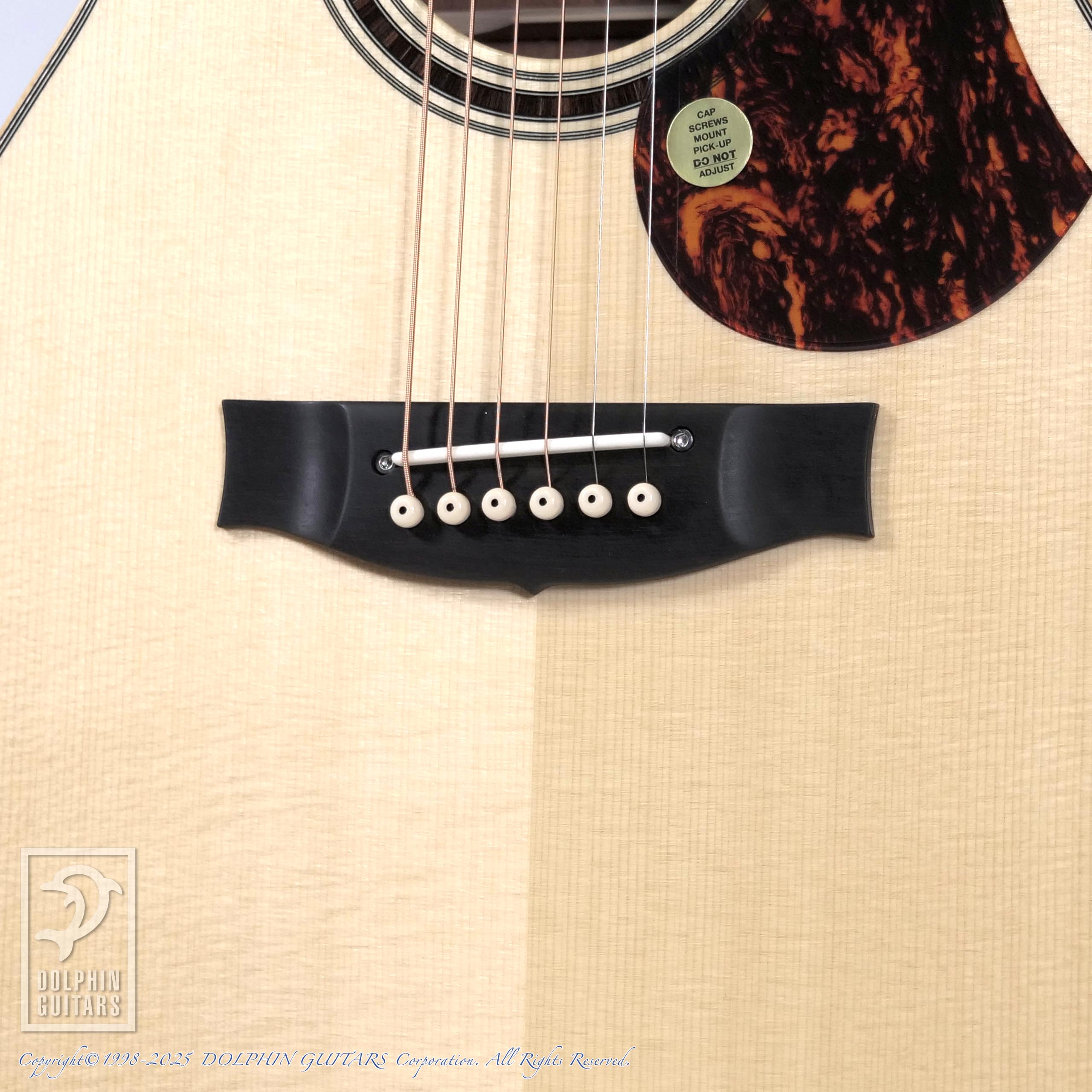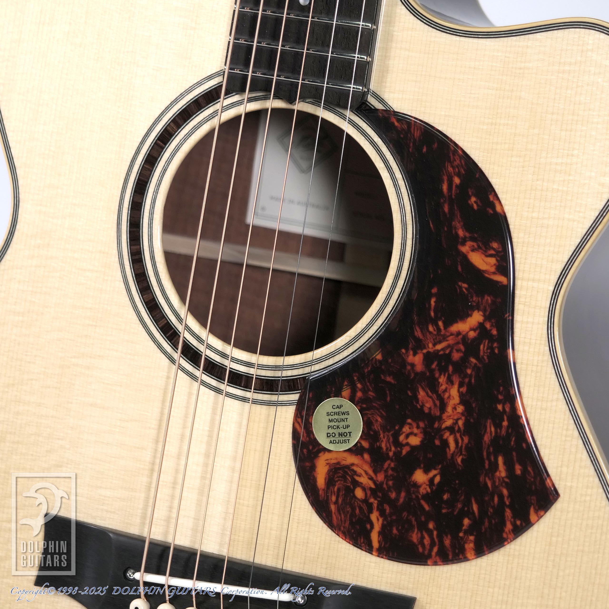 サウンドボードは厳選された厚めのヨーロピアン・スプルース、バックとサイドはビクトリアン・ブラックウッドを採用。ネックにクイーンズランド・メイプル、指板とブリッジはエボニー。バインディングにサテン・ボックス、パーフリングにBWBストライプ、サウンドホールにはギターと完璧に調和する木製ロゼッタが施されています。ブレイシングはトップ材と同じヨーロピアン・スプルース材を使用し、最大限のパフォーマンスを発揮する"A"シェイプを採用。正確な音響特性を実現するためにスキャロップ加工が施されています。