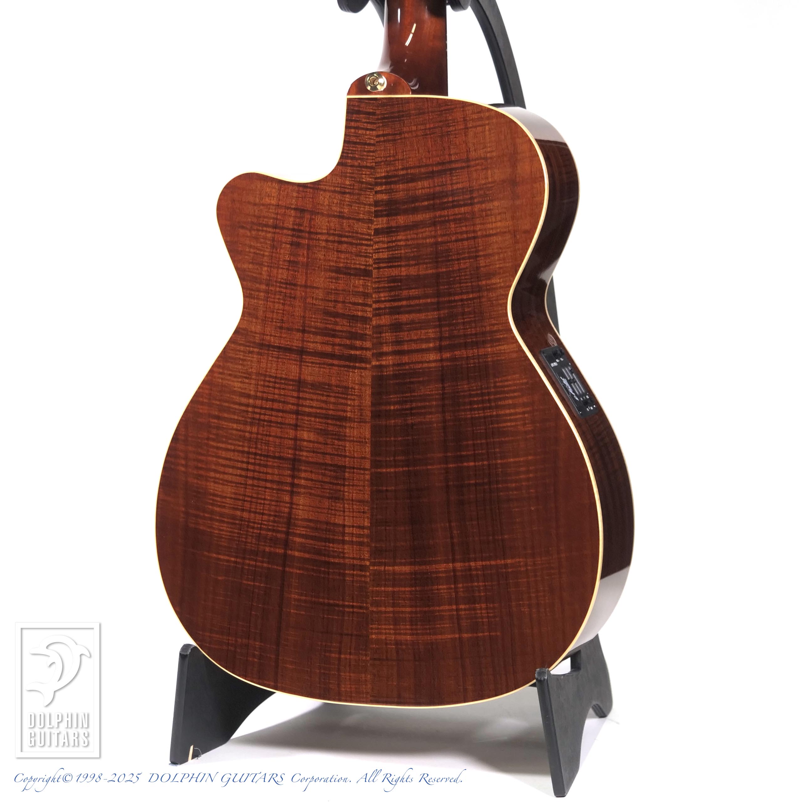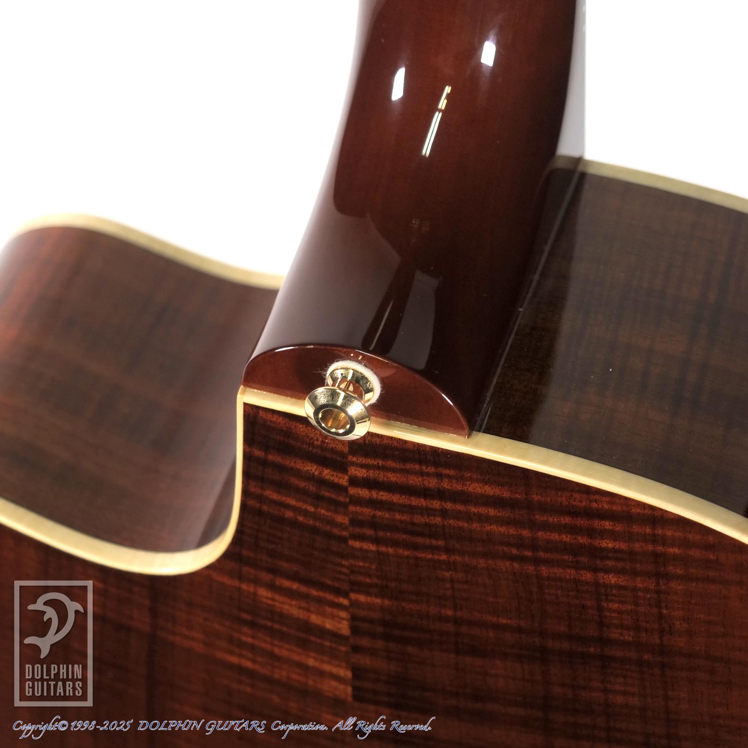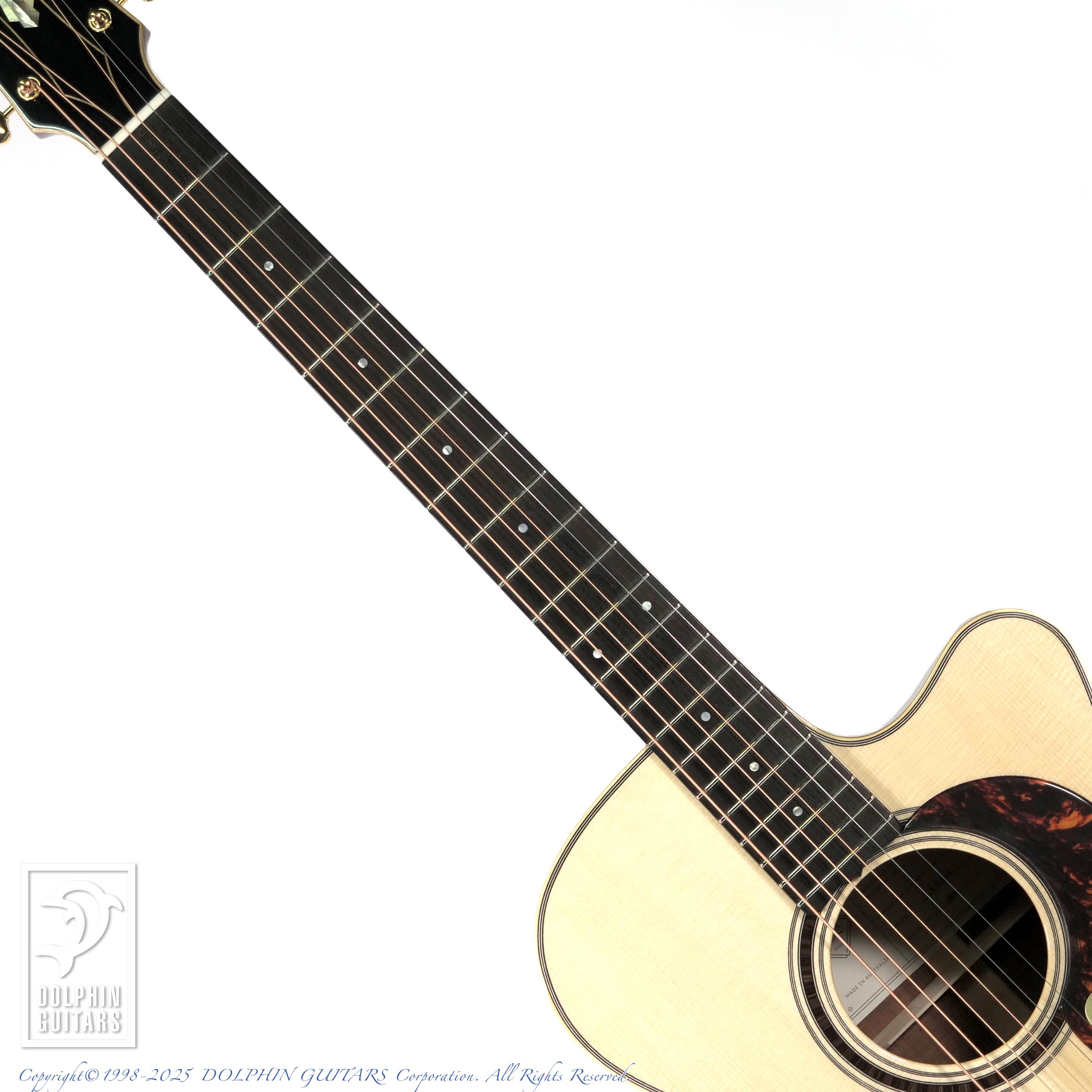 サウンドボードは厳選された厚めのヨーロピアン・スプルース、バックとサイドはビクトリアン・ブラックウッドを採用。ネックにクイーンズランド・メイプル、指板とブリッジはエボニー。バインディングにサテン・ボックス、パーフリングにBWBストライプ、サウンドホールにはギターと完璧に調和する木製ロゼッタが施されています。ブレイシングはトップ材と同じヨーロピアン・スプルース材を使用し、最大限のパフォーマンスを発揮する"A"シェイプを採用。正確な音響特性を実現するためにスキャロップ加工が施されています。