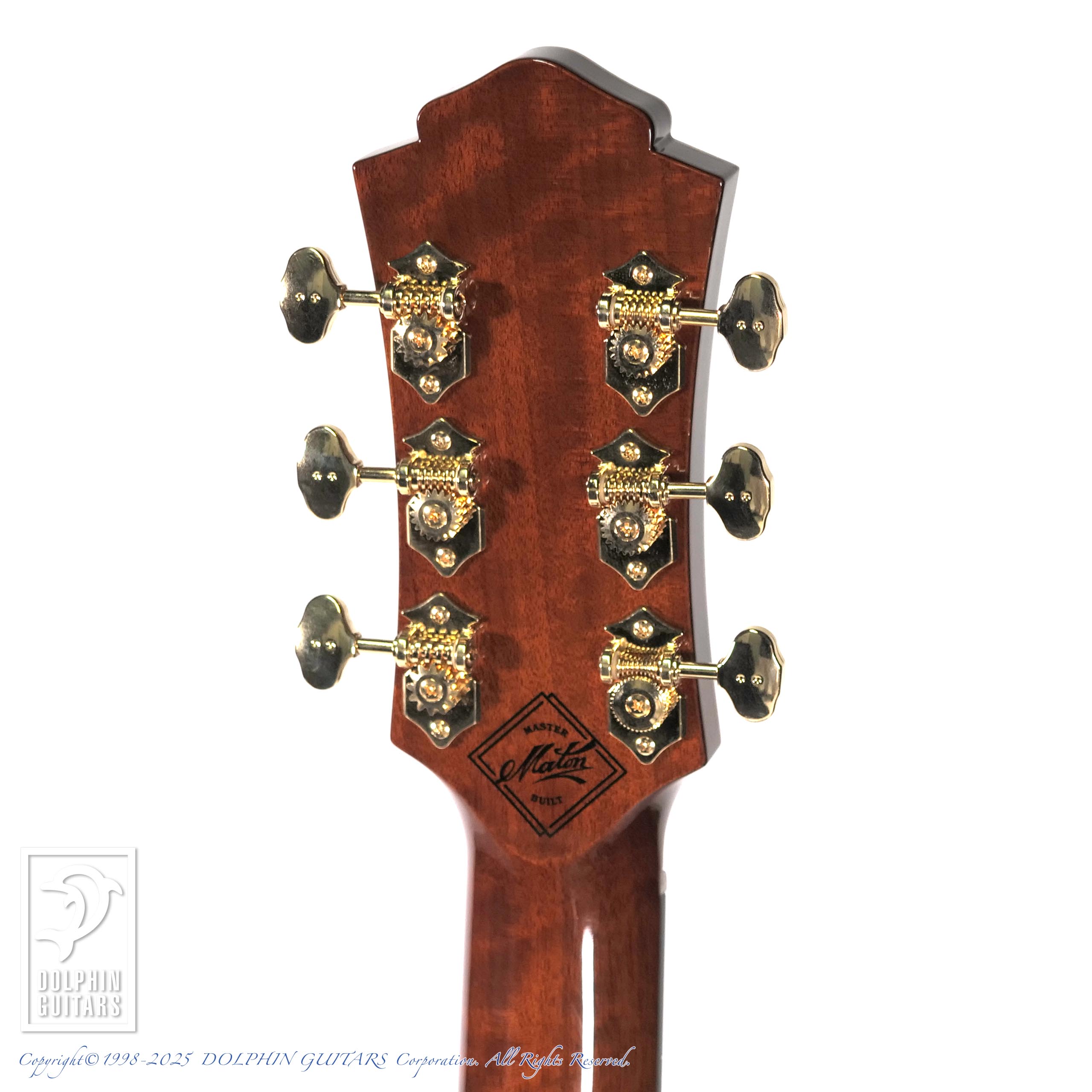 L.E.MayはW.A.Mayの後継モデルとして製作された、トラディショナルシェイプ+深胴ボディーのカッタウェイモデルです。1940年代のオリジナル・メイトンをモデルにしたやや小さめのヘッドストックで、ピンストライプで縁取られたデザインが特徴的です。アール・デコ調のパール・インレイはそのまま残し、エボニーのヘッドプレートはイエローウッド・アッシュで縁取られています。