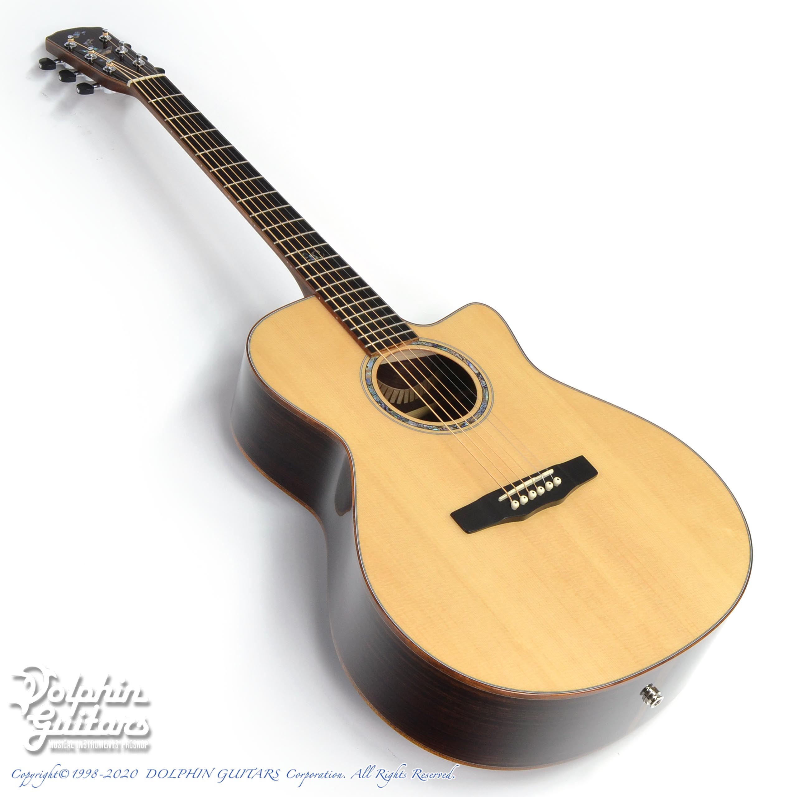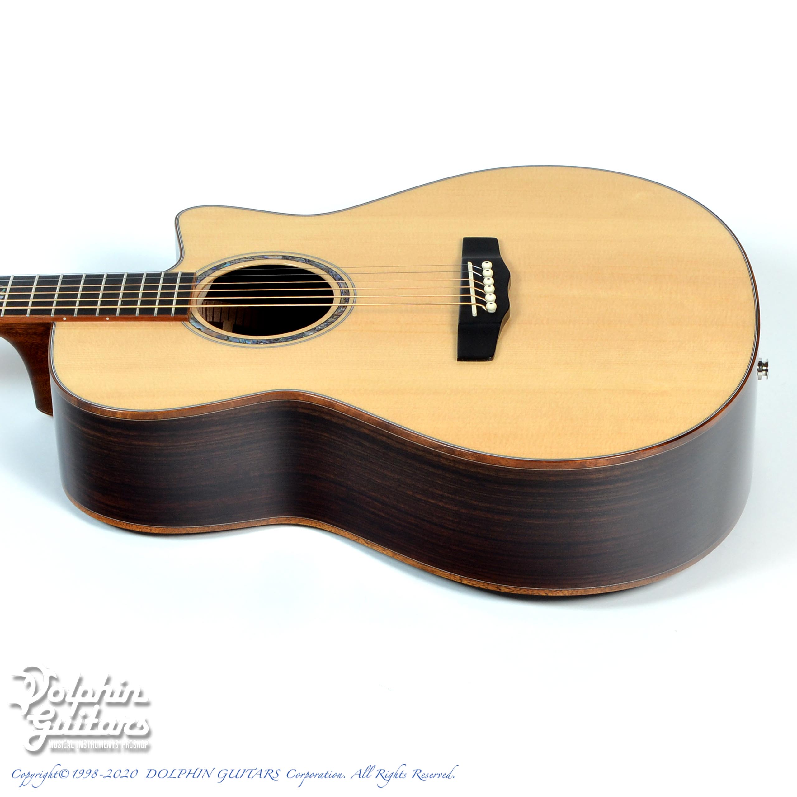 シトカ・スプルース・トップ、インディアン・ローズウッド・サイド&バック、マホガニー・ネック、エボニー指板&駒、アバロンロゼッタ、ゴトー糸巻き、B-BANDピックアップ搭載。