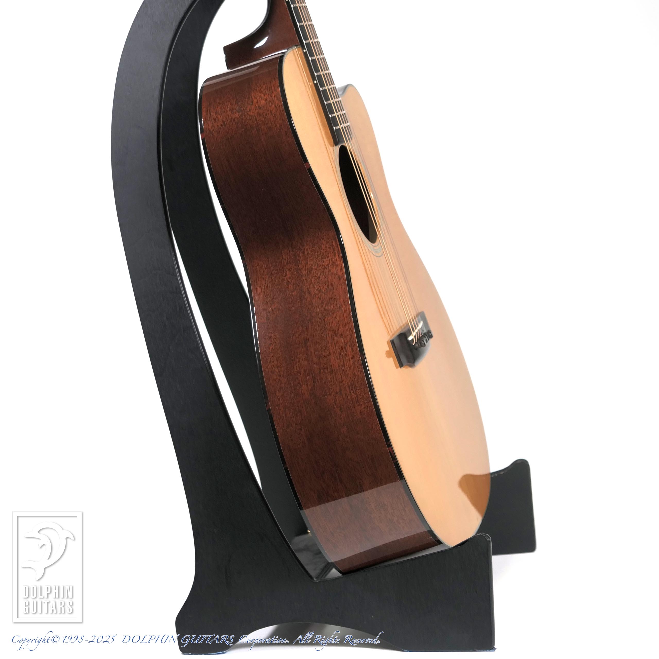 マーティンでは珍しいノンピックガードにカッタウェイ仕様となっており、どこか手工ギター を彷彿とさせる雰囲気があります。ネック形状は幅広でVシェイプ(頂点はそこまで鋭利ではございません)、低めの弦高と相まって、ハイポジションは抜群の操作性です。