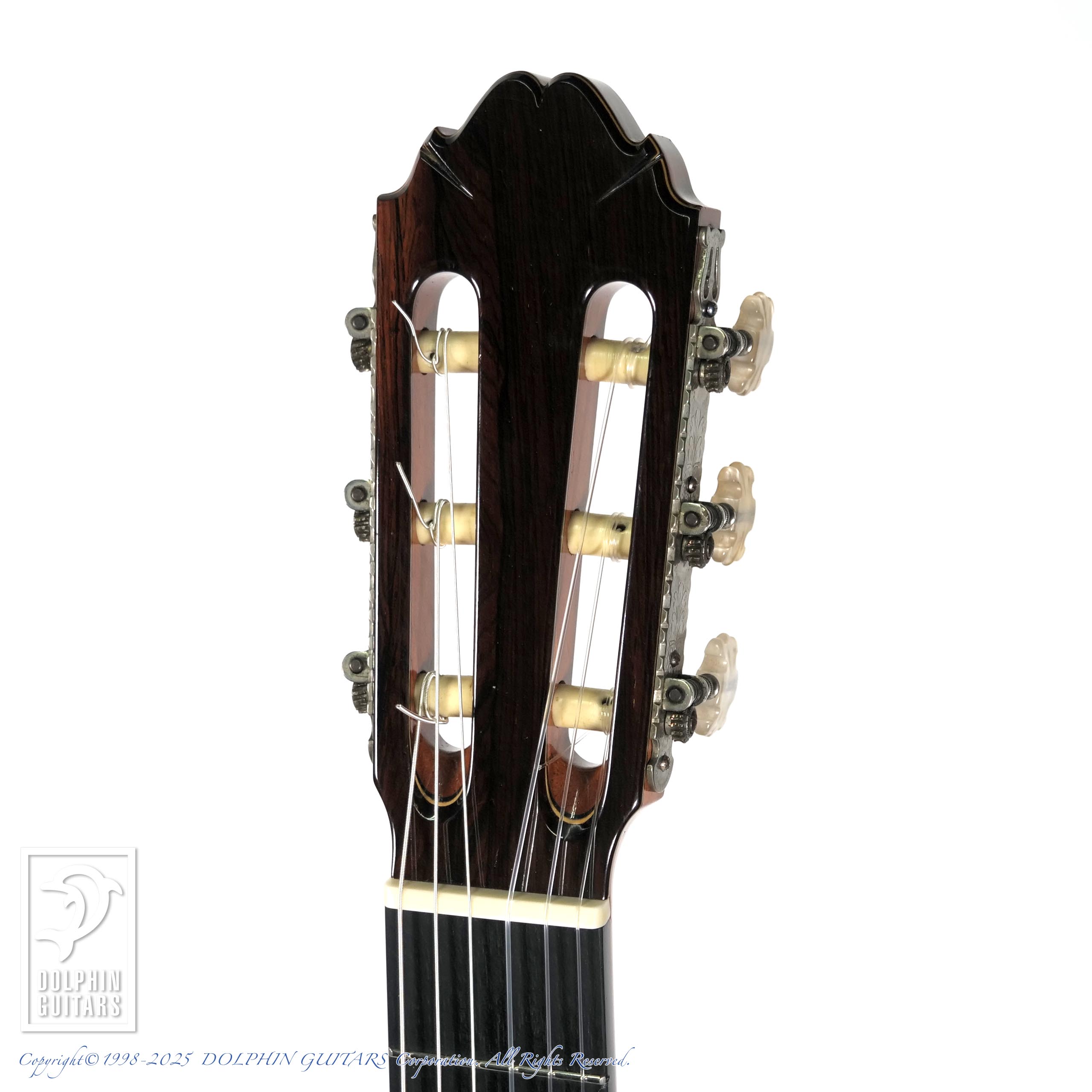 ネック角度が浅く、現代的なギターからすると弦高はやや高めです。当時では普通のクラシック奏者向けの設計と言えるでしょう。その分、しっかりとしたタッチでもクリアに表現でき、ダイナミクスも奏者の思いのままでしょう。