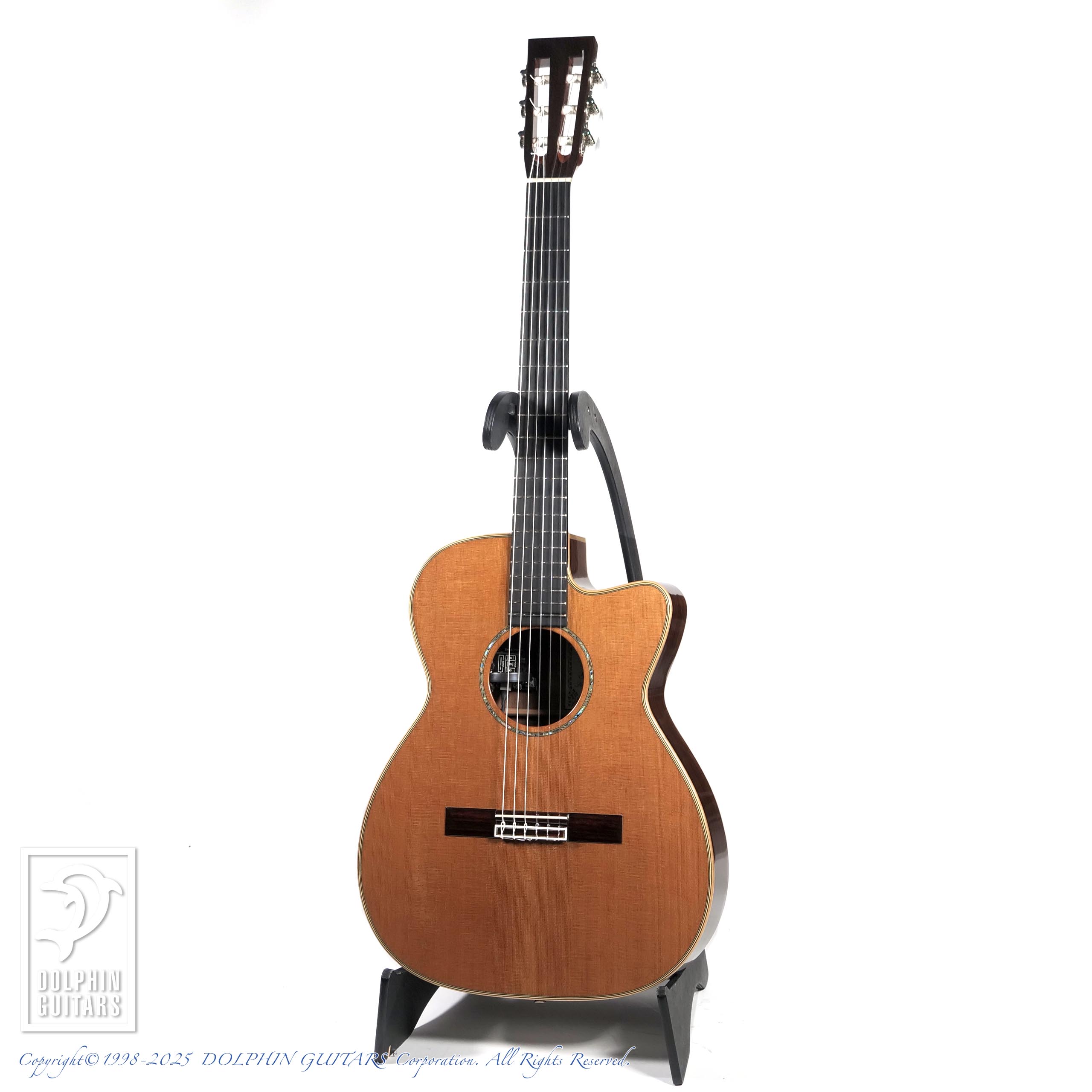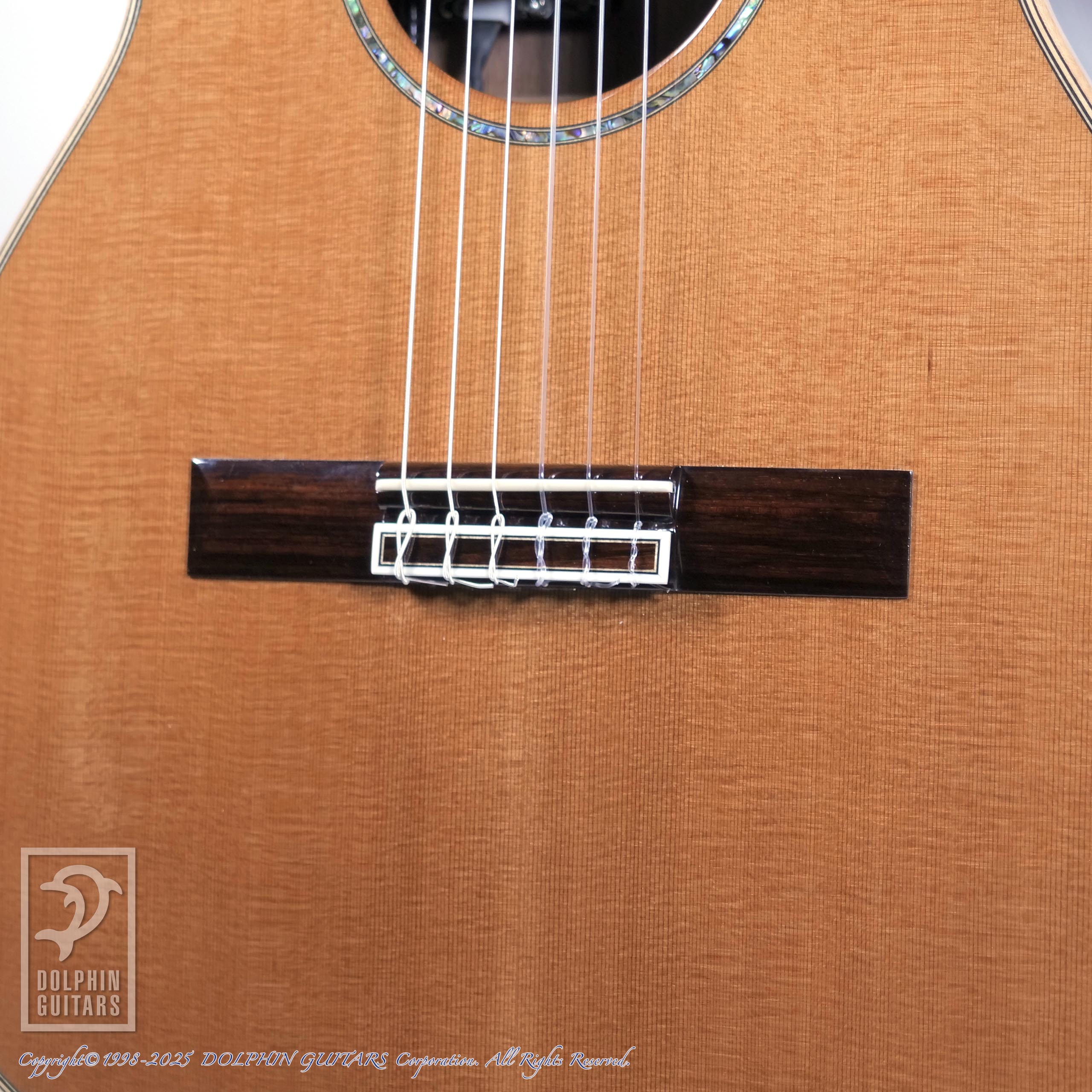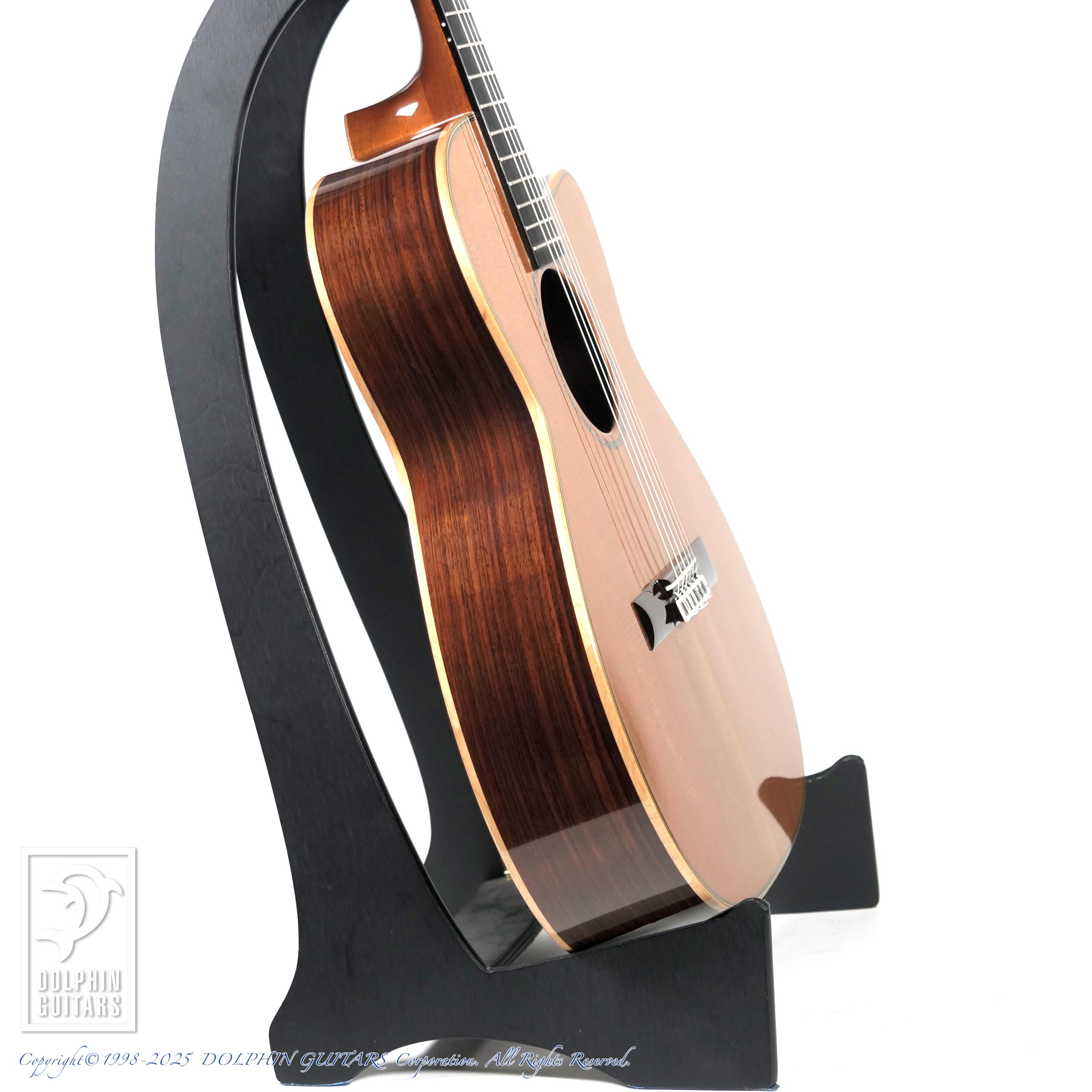 コンパクトボディならではのレスポンスの良さが特徴のモデルで、シダー&ローズの甘くダイナミックなサウンドが心地良いギターです。流石老舗クラシックギター工房なだけあって、生音の響きもしっかりと質の高さを感じさせてくれます。