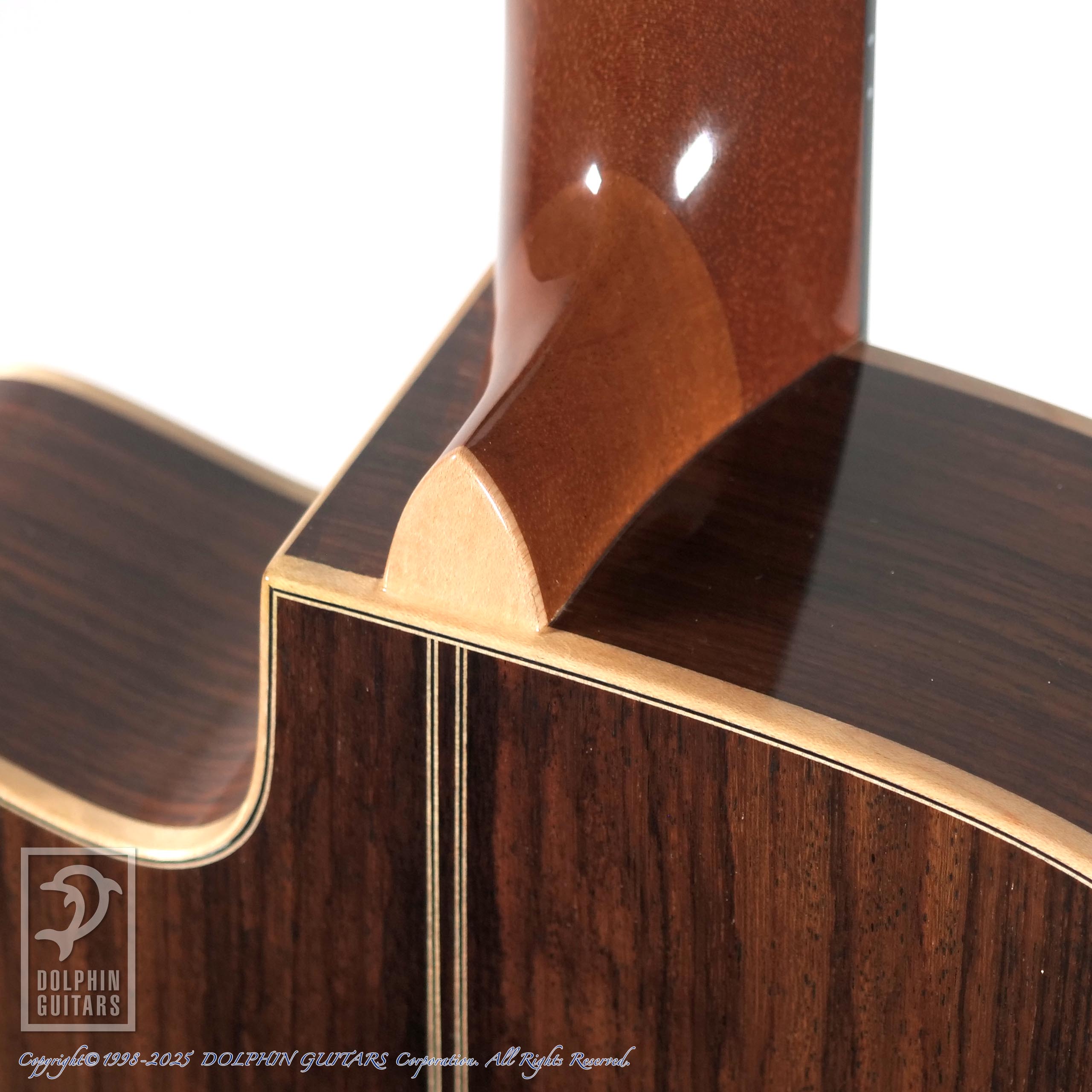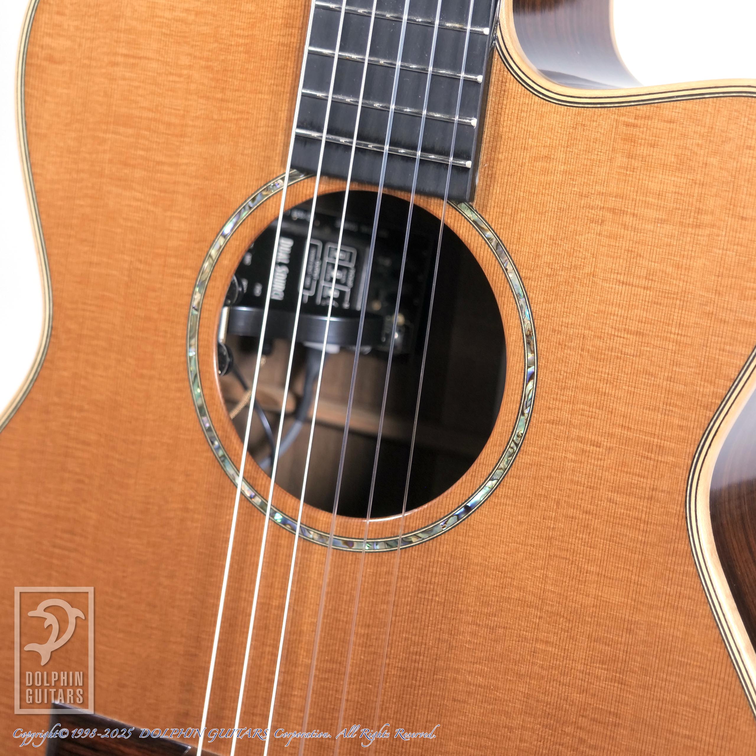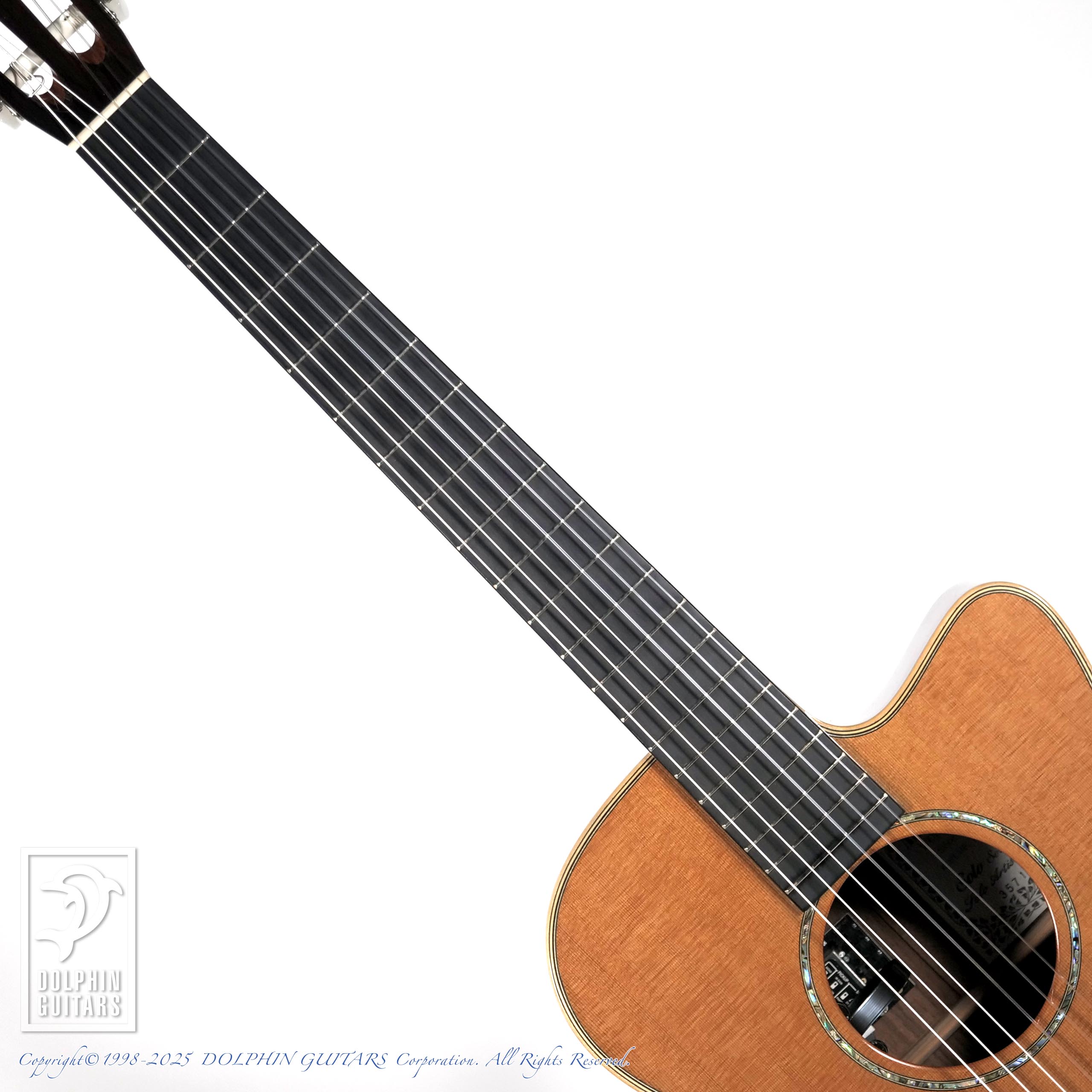 コンパクトボディならではのレスポンスの良さが特徴のモデルで、シダー&ローズの甘くダイナミックなサウンドが心地良いギターです。流石老舗クラシックギター工房なだけあって、生音の響きもしっかりと質の高さを感じさせてくれます。
