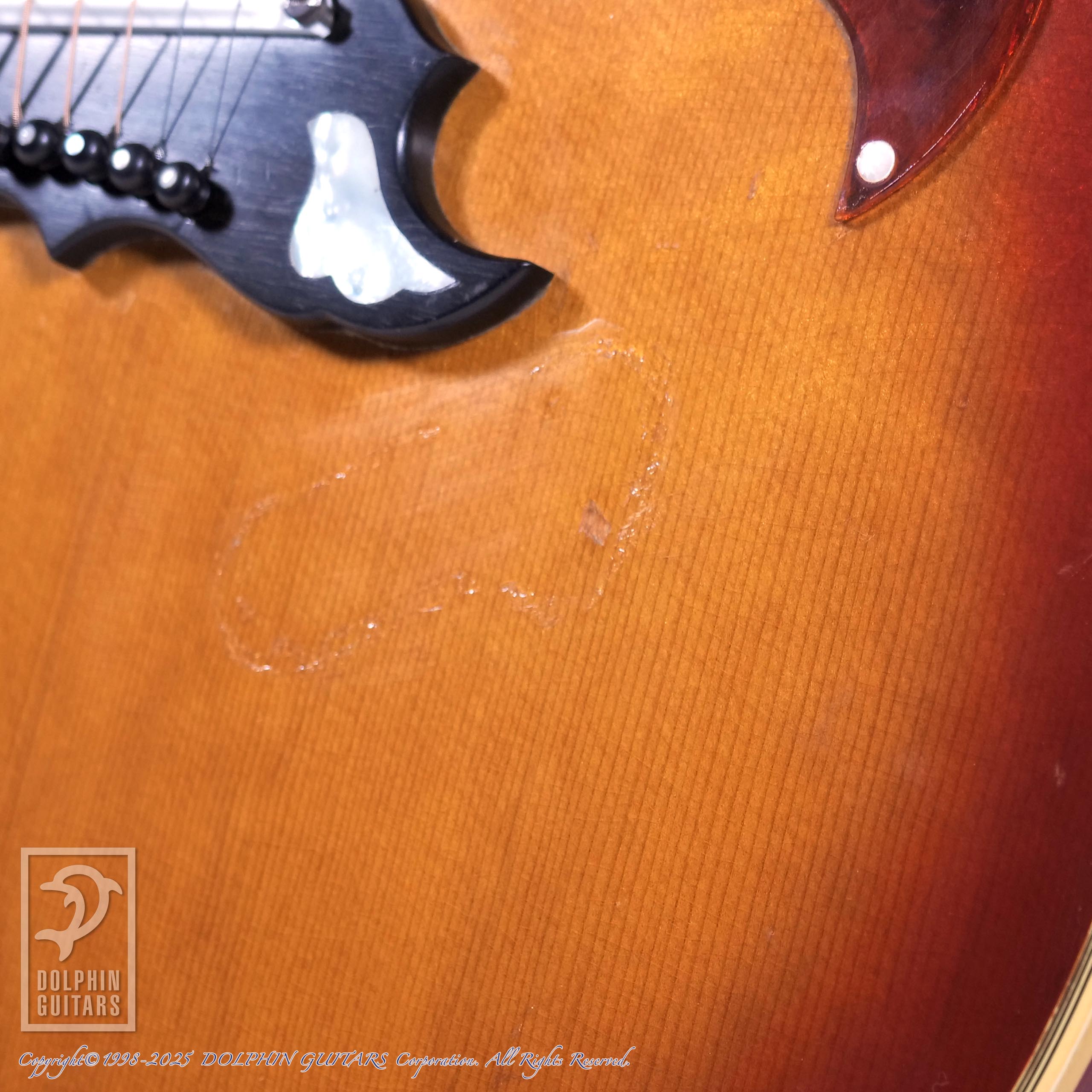 シリアルは1968年を指していますが、ネックグリップ、ペグなどは1970年代のような雰囲気があり、ヴィンテージ好きの想像を膨らませてくれます。ピックガードにはビス位置にパールが埋め込まれており、こういったデティールも1960年代後半特有のもので、ゴージャスに見えて非常にカッコ良いです。全体的に傷や塗装のダメージなどがございますが、ノークラックでネックコンディションも頗る良好です。