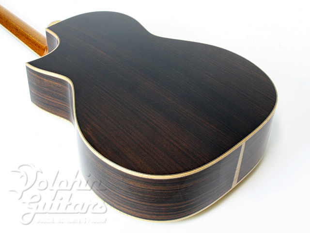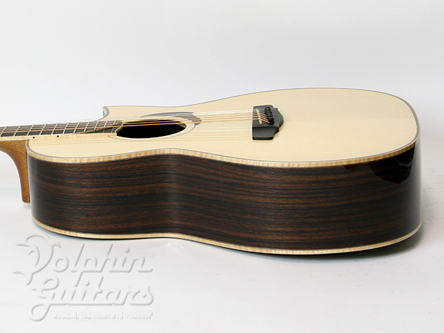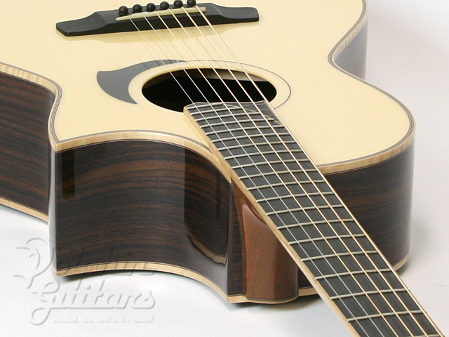 イングルマン・スプルース・トップ、インディアン・ローズウッド・サイド&バック、マホガニー1ピース・ネック、ラティスブレイシング、エボニー指板&ブリッジ、牛骨ナット&サドル、22フレット仕様、指板エンドにはシンボリックでもある”2step Wave Shape ”、Asymmetrical Stepped Heel、グロッシー・ラッカー・フィニッシュ。