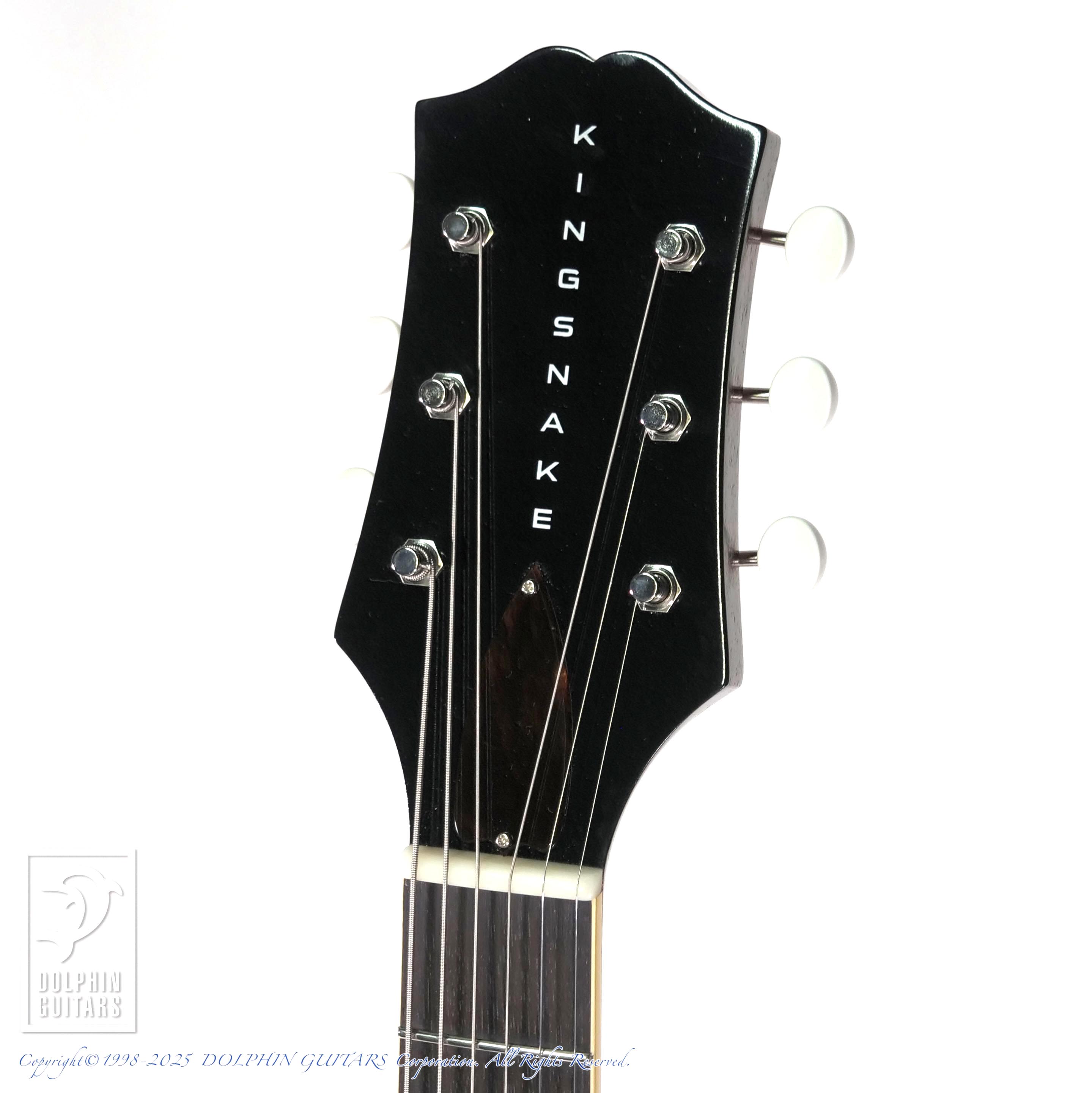 かつてのホワイト・カントリー・プレイヤー達はギター、フィドル、マンドリンの中にガラガラヘビのシッポを入れていた。「いい音がするんだよ」と。そして、MOJOがあると言う意味だそうだ(ブードゥー教において金運やギャンブル運、女性運を向上させるための意味)。話しを日本に向ければ、ヘビは、弁才天の使いとして富をもたらすものとして有名であり、縁起が良い動物として知られる。古くから神様の使いとも言われており、運気アップアイテムとしては欠かせないもの。それを総合し、King Snake(キングスネーク)と言うブランドが生まれました。