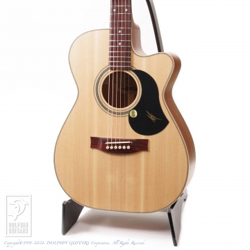 トップ材のブンヤは音響特性も大変優れており、瞬発力や力強さも感じさせ本モデルにマッチしたトーンウッドであります。また、指板材はストリーキーエボニーになる前のオバンコール時代、素朴なルックスがチャーミングです。