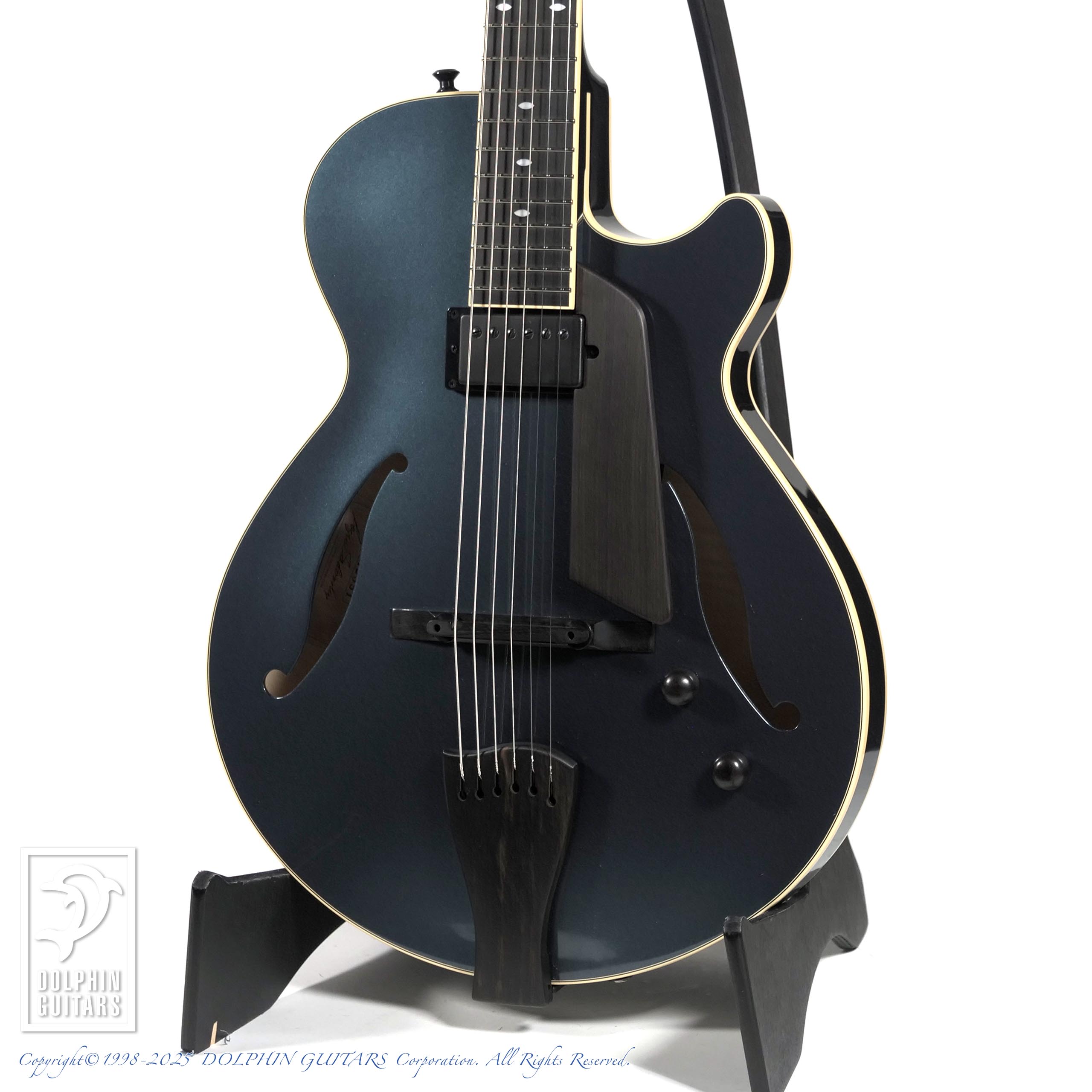 本器は、Semi-Hollow Modelと共通のボディをもつコンパクトなフル・アコースティックギター、SS-15のカラーオーダーモデル。ブルーグレイに輝くSS-15 SPECIAL BLUEです。【限定1本】