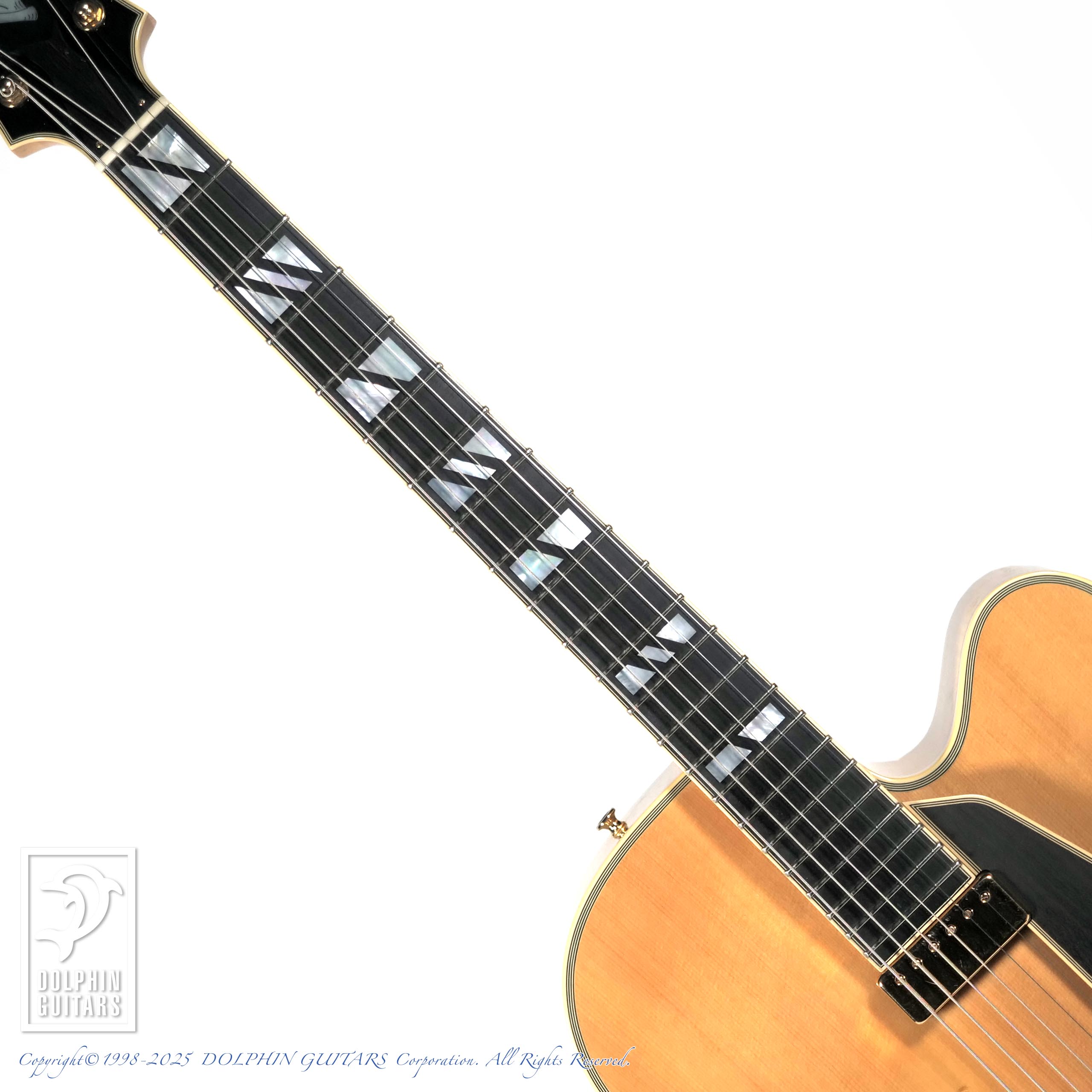 本人が製作したオリジナルギターは、生産台数が極端に少なく、滅多にお目にかかれません。生前に手がけた"ソロ"、"センチュラ"、2ティアドロップ"などのモデルは斬新で、非常に芸術性が高く、影響を受けた製作家は後を絶ちません。アーチトップギターの世界でギブソン以外のジャンルを作ったといっても決して言い過ぎではないでしょう。