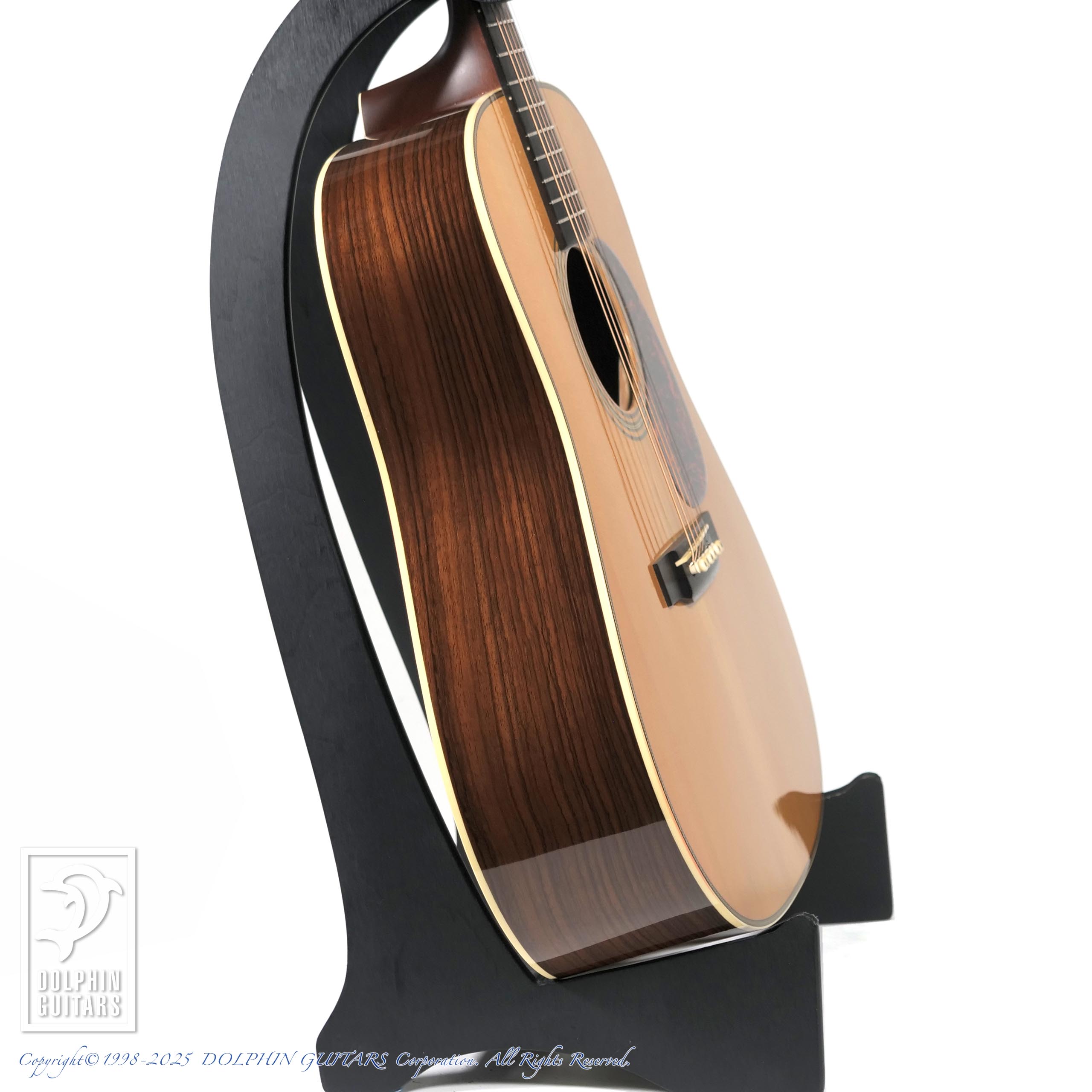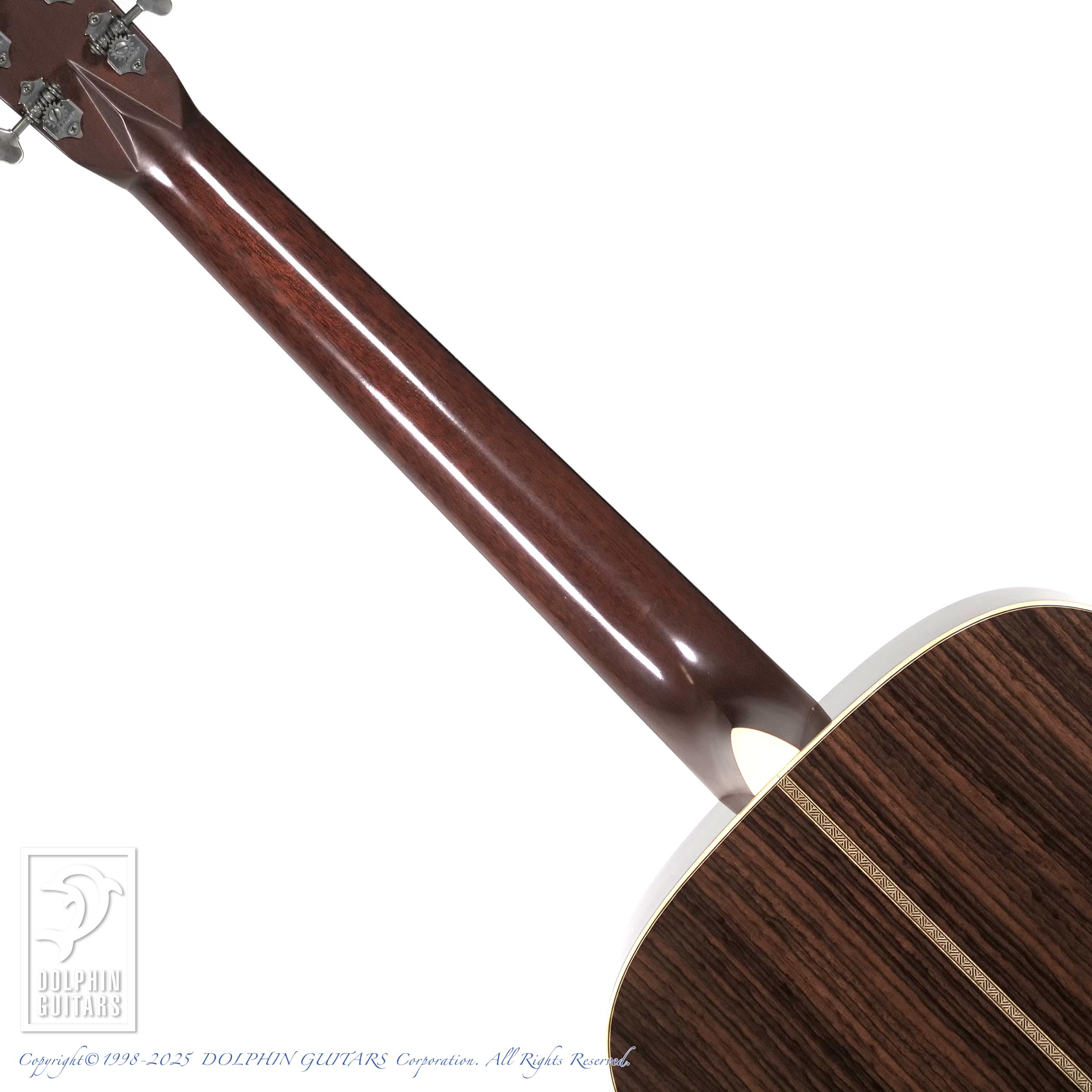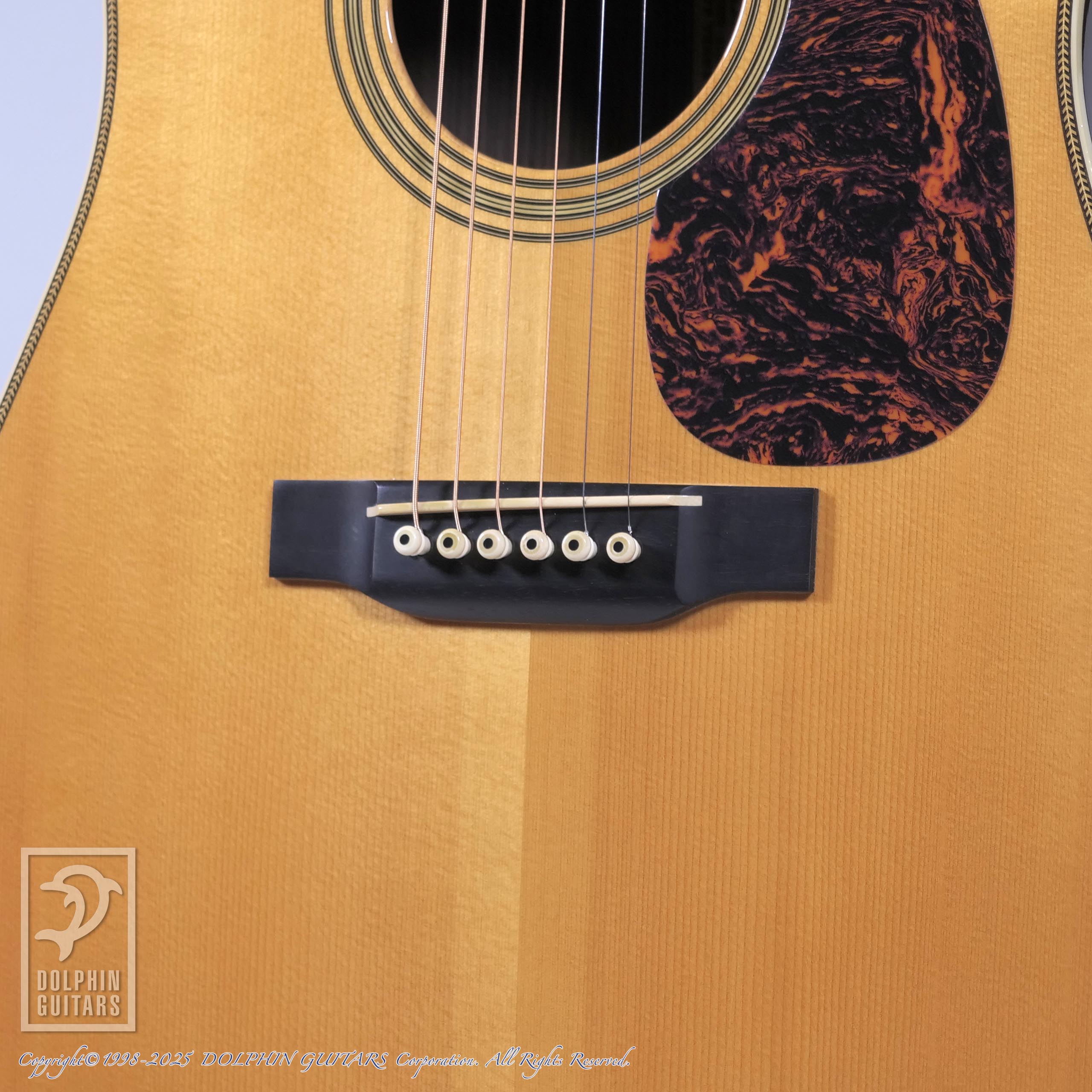 オールドデカールロゴやオープンバックのバタービーンノブ、ロングサドルなど、人気の高い1930年代スペックを網羅したヴィンテージシリーズとなっており、所有欲を満たしてくれます。太く厚みある中低音のサウンドで、非常に気持ち良く響き、素晴らしいレスポンスの早さでテンション感も柔らかいため、指弾きもしたくなるようなドレッドノートです。アディロンダックスプルースの特徴がハッキリと表れており、押し出しの強さや上質なトーンと、このスペックならではサウンドです。