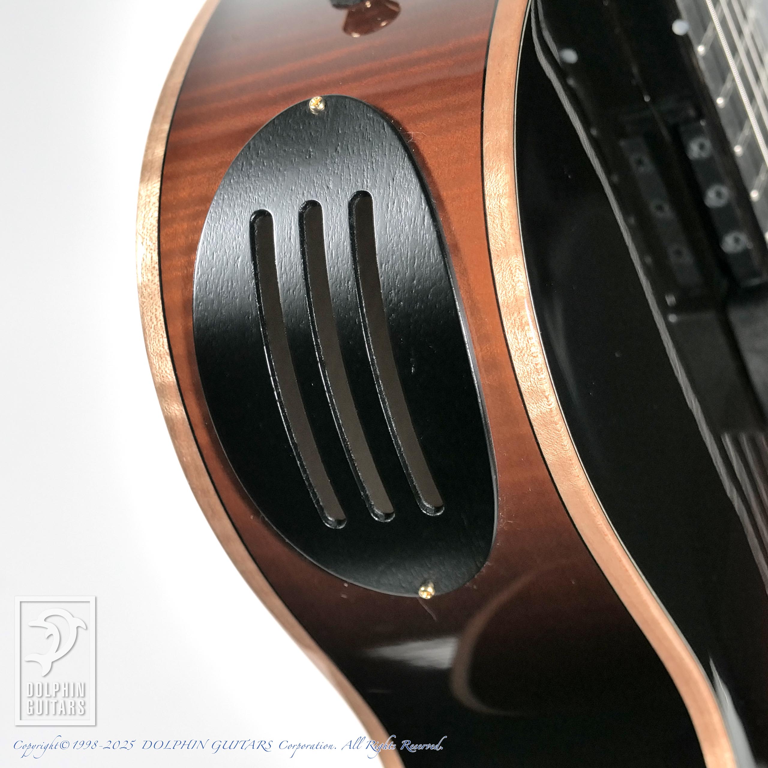 厳選された単板シトカスプルースによるトップは、豊かな響きを得るためXブレーシングを採用。アコースティックとしての鳴りも素晴らしく、まるでフラットトップのような、伸びやかでピュアなアコースティックサウンドを楽しめます。