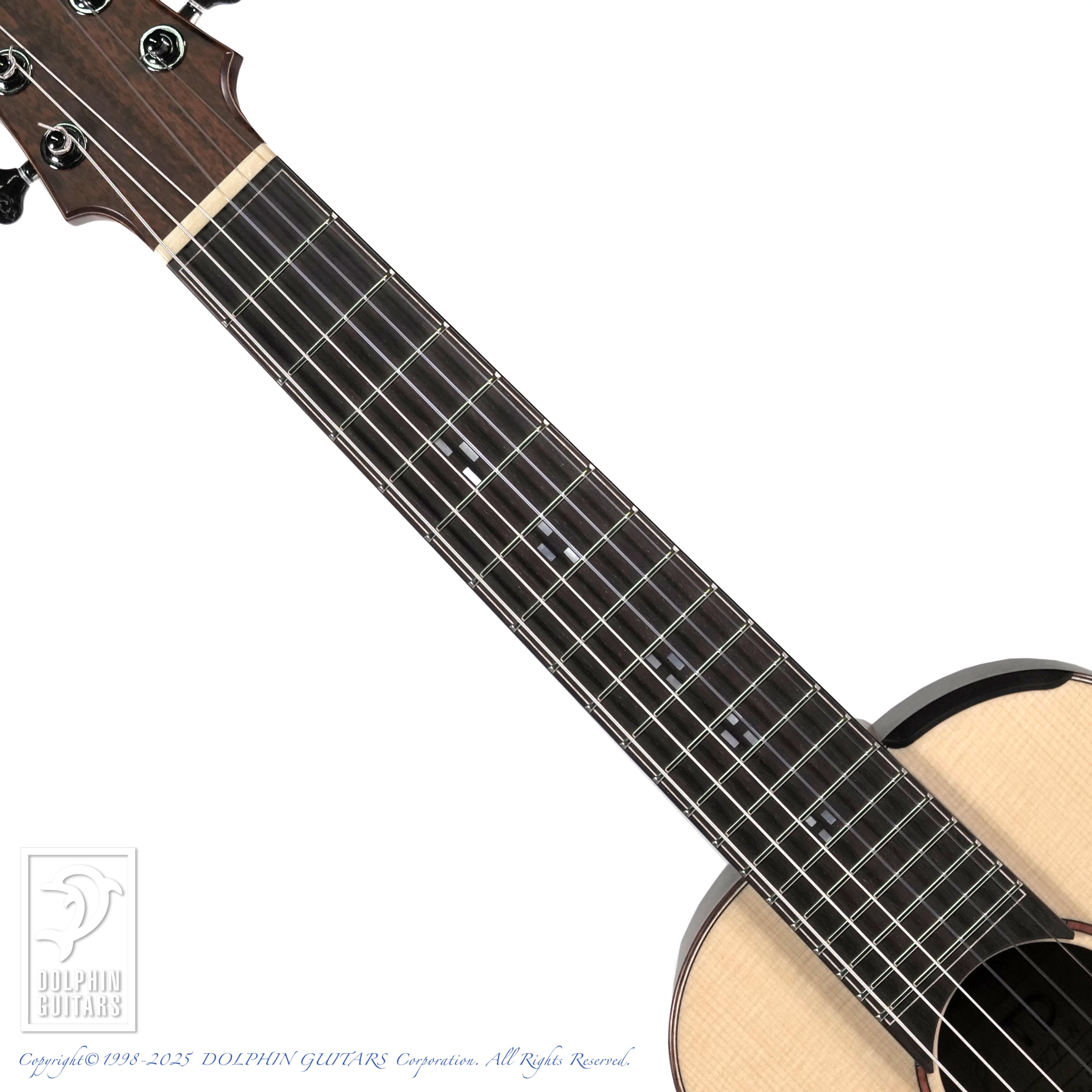 本器は戸田氏オリジナル・ピッコロモデルのナイロン弦仕様、AチューニングをスタンダードとするWP-N (German Spruce & Jacaranda)。【サウンドメッセin大阪 2025出展作品】