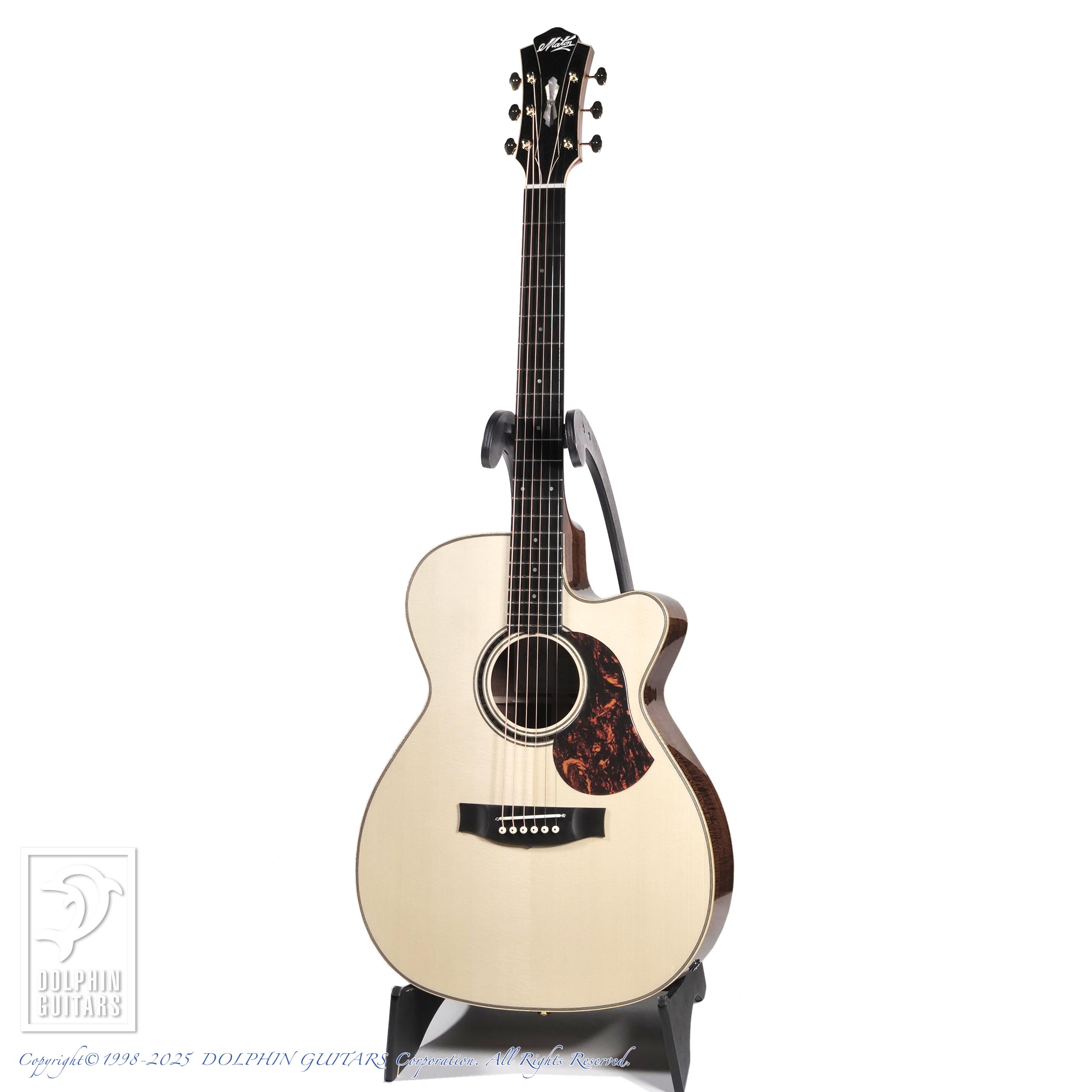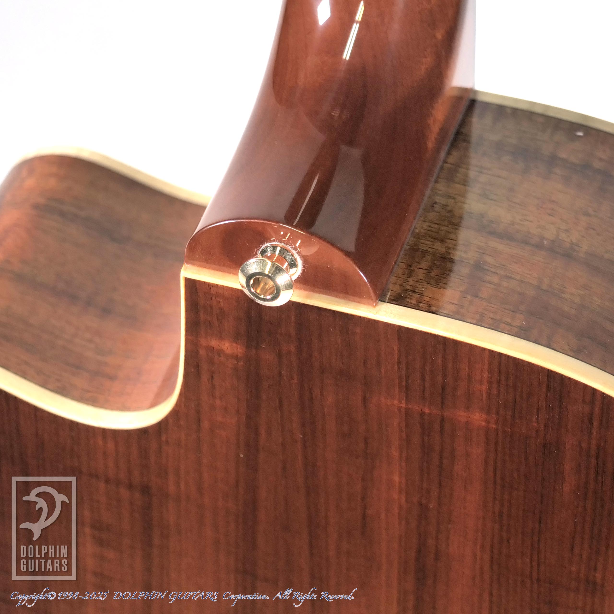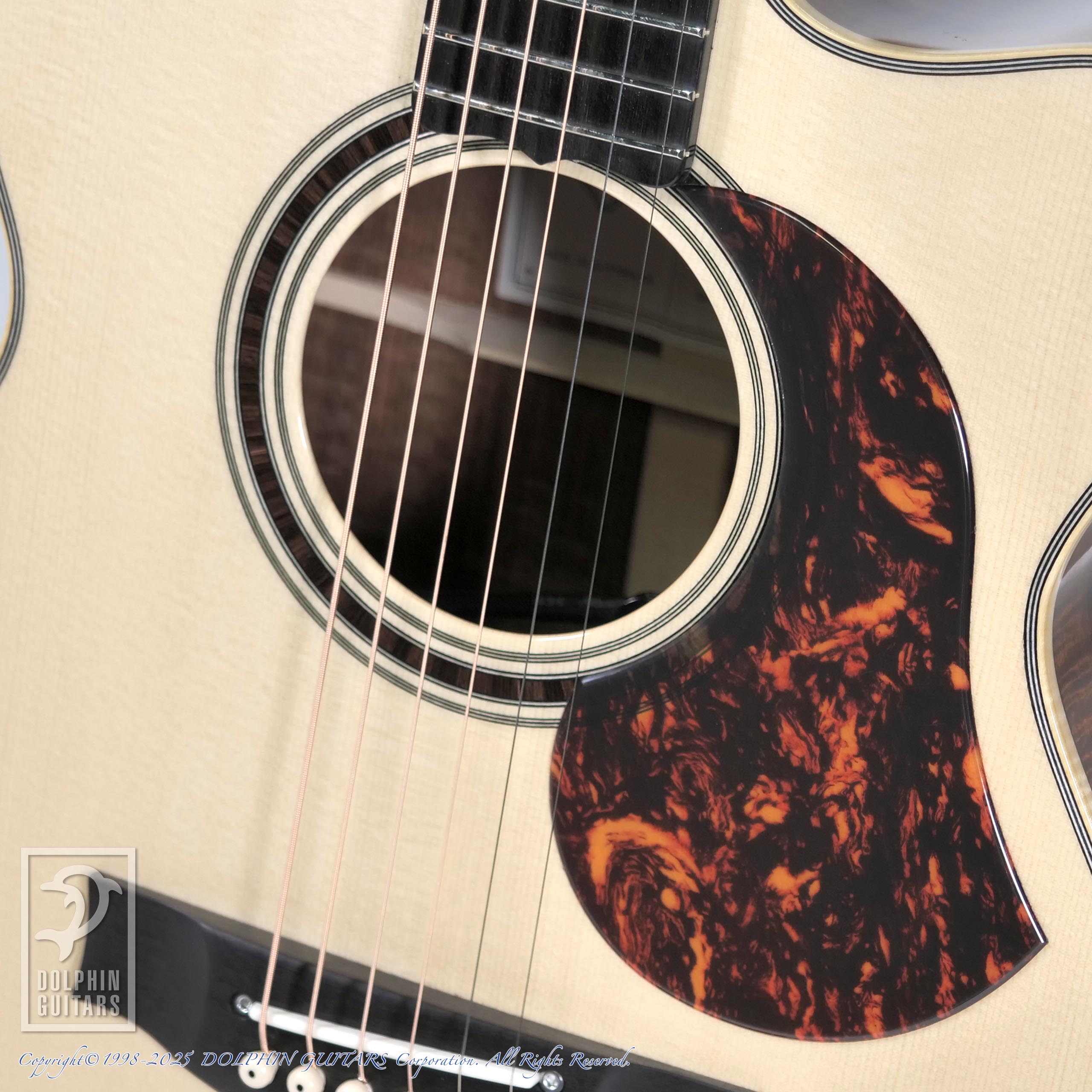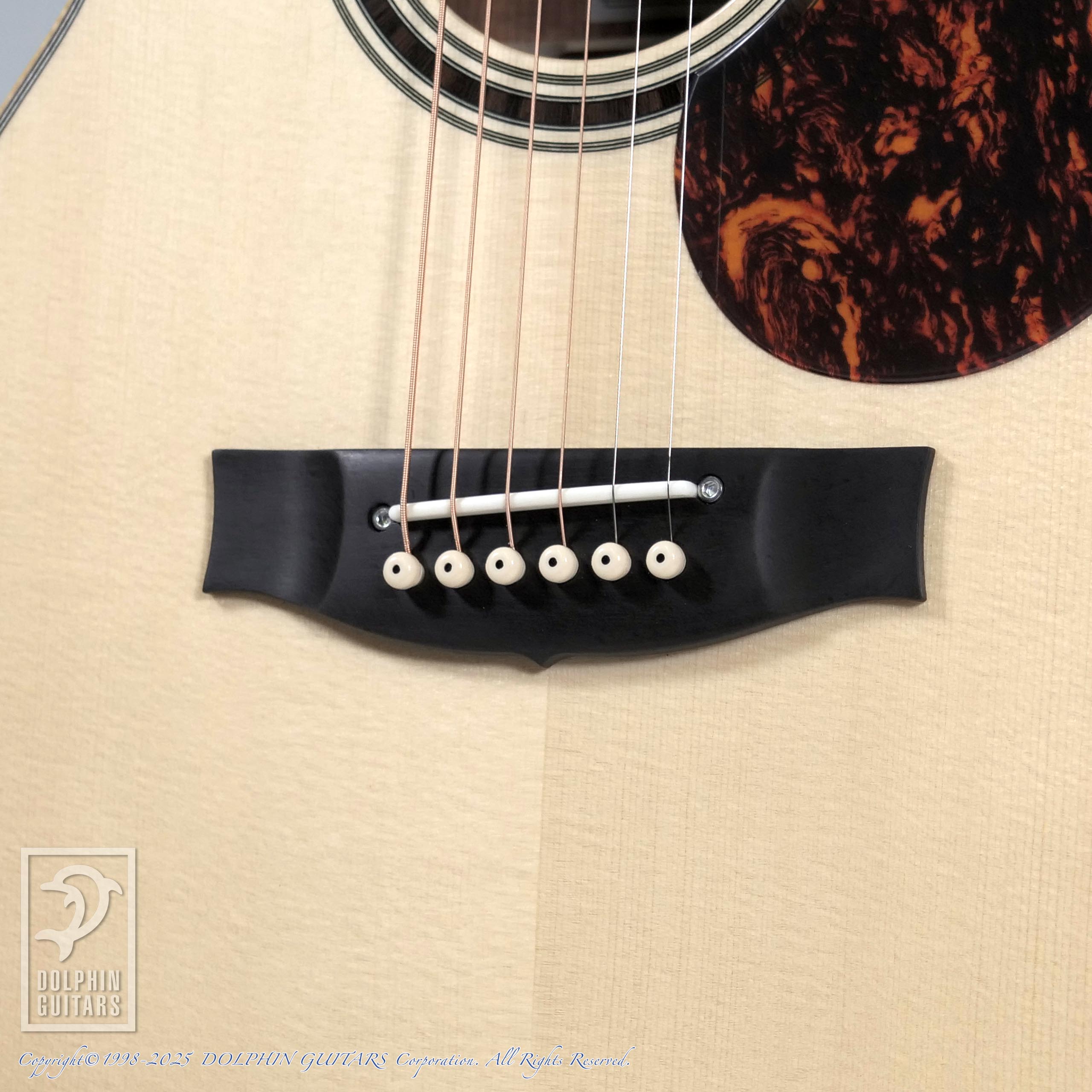 サウンドボードは厳選された厚めのヨーロピアン・スプルース、バックとサイドはビクトリアン・ブラックウッドを採用。ネックにクイーンズランド・メイプル、指板とブリッジはエボニー。バインディングにサテン・ボックス、パーフリングにBWBストライプ、サウンドホールにはギターと完璧に調和する木製ロゼッタが施されています。ブレイシングはトップ材と同じヨーロピアン・スプルース材を使用し、最大限のパフォーマンスを発揮する"A"シェイプを採用。正確な音響特性を実現するためにスキャロップ加工が施されています。