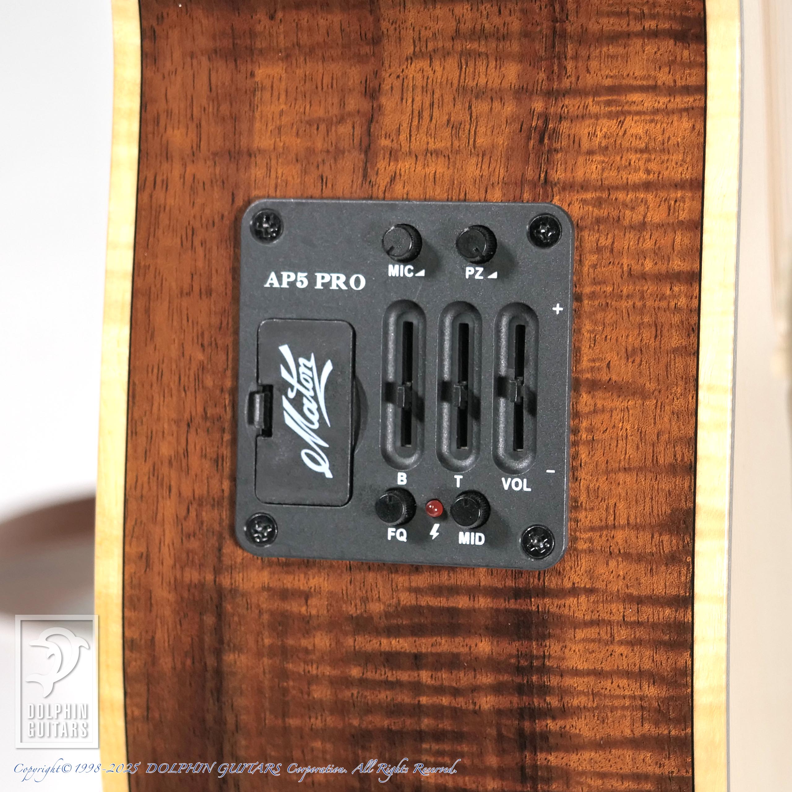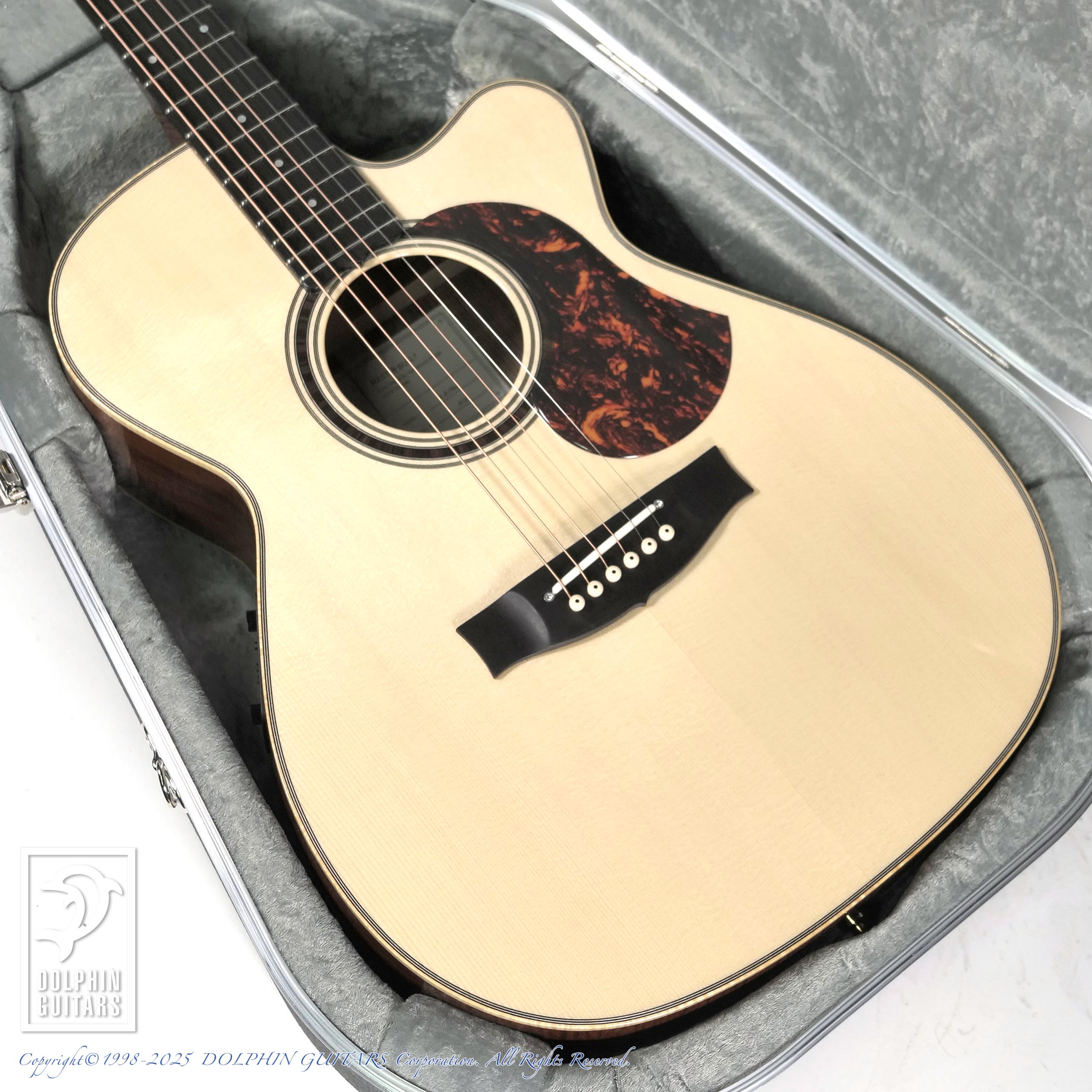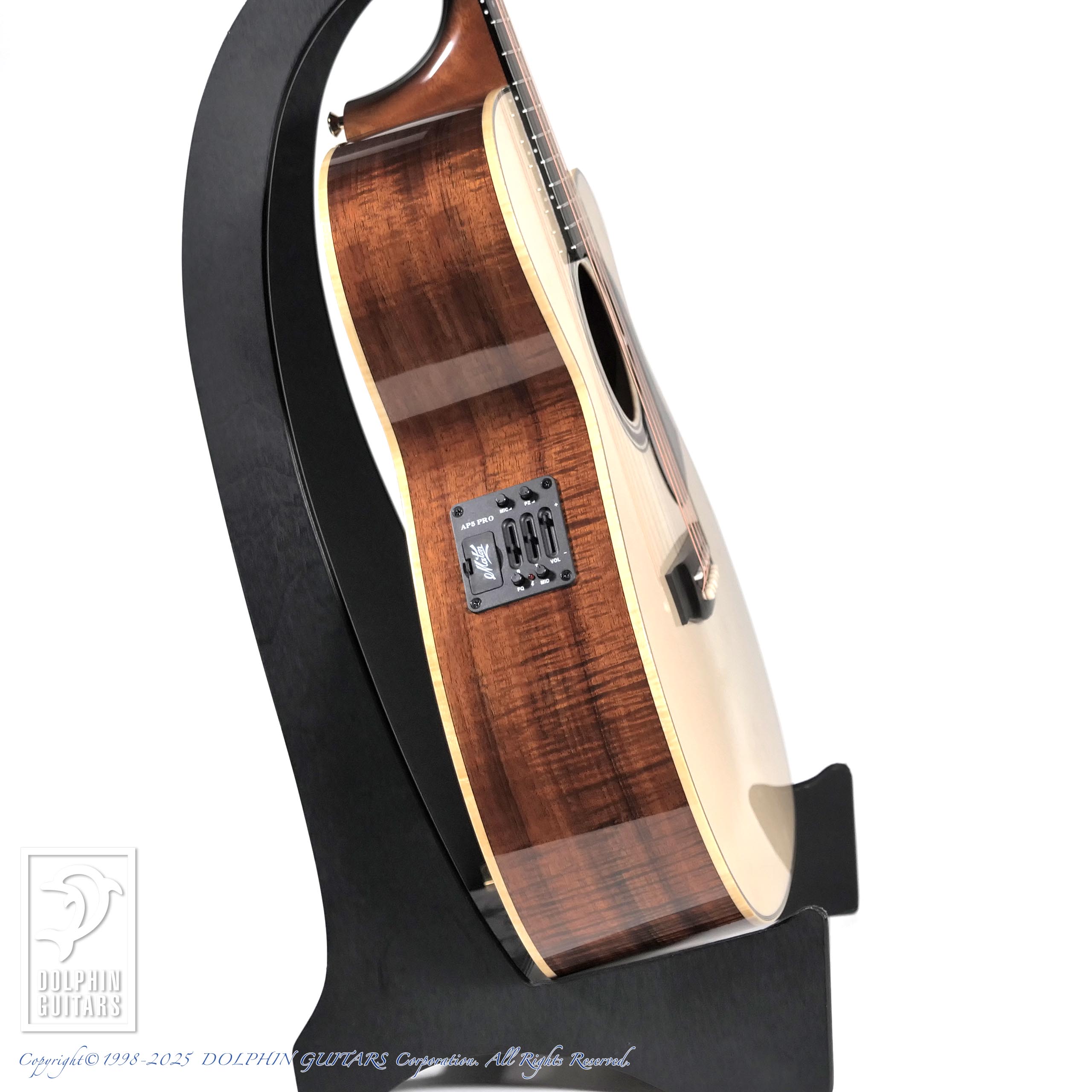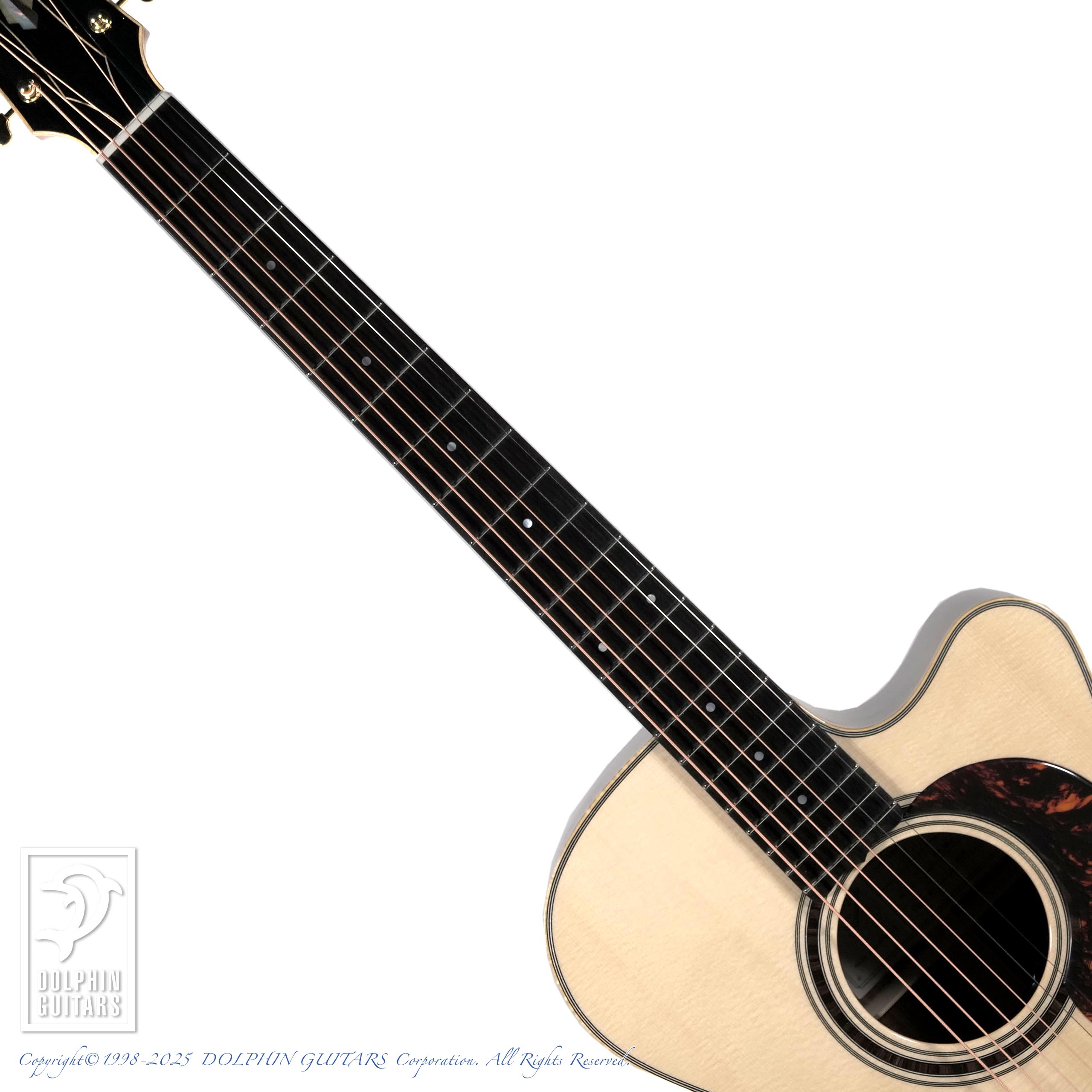 サウンドボードは厳選された厚めのヨーロピアン・スプルース、バックとサイドはビクトリアン・ブラックウッドを採用。ネックにクイーンズランド・メイプル、指板とブリッジはエボニー。バインディングにサテン・ボックス、パーフリングにBWBストライプ、サウンドホールにはギターと完璧に調和する木製ロゼッタが施されています。ブレイシングはトップ材と同じヨーロピアン・スプルース材を使用し、最大限のパフォーマンスを発揮する"A"シェイプを採用。正確な音響特性を実現するためにスキャロップ加工が施されています。
