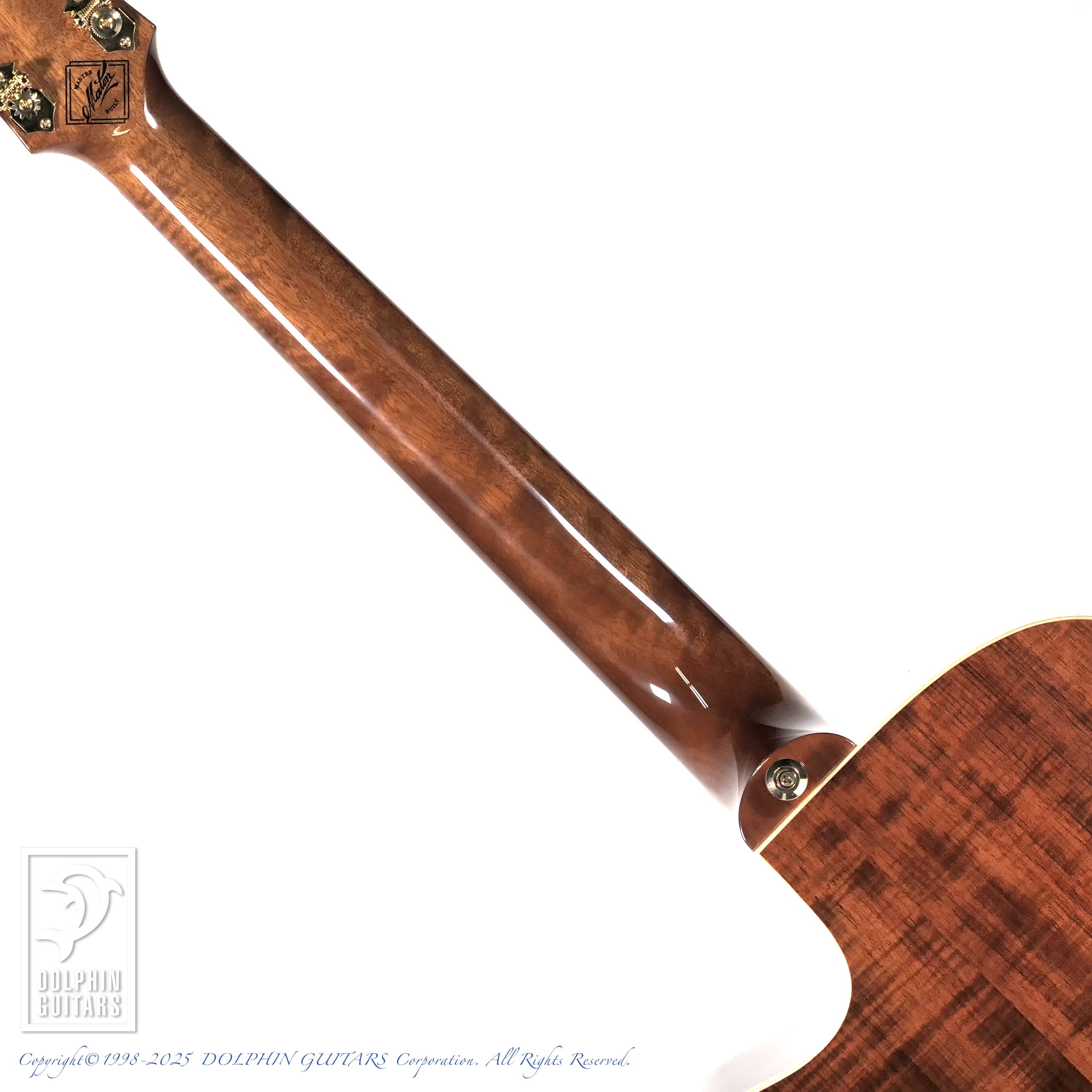 L.E.MayはW.A.Mayの後継モデルとして製作された、トラディショナルシェイプ+深胴ボディーのカッタウェイモデルです。1940年代のオリジナル・メイトンをモデルにしたやや小さめのヘッドストックで、ピンストライプで縁取られたデザインが特徴的です。アール・デコ調のパール・インレイはそのまま残し、エボニーのヘッドプレートはイエローウッド・アッシュで縁取られています。
