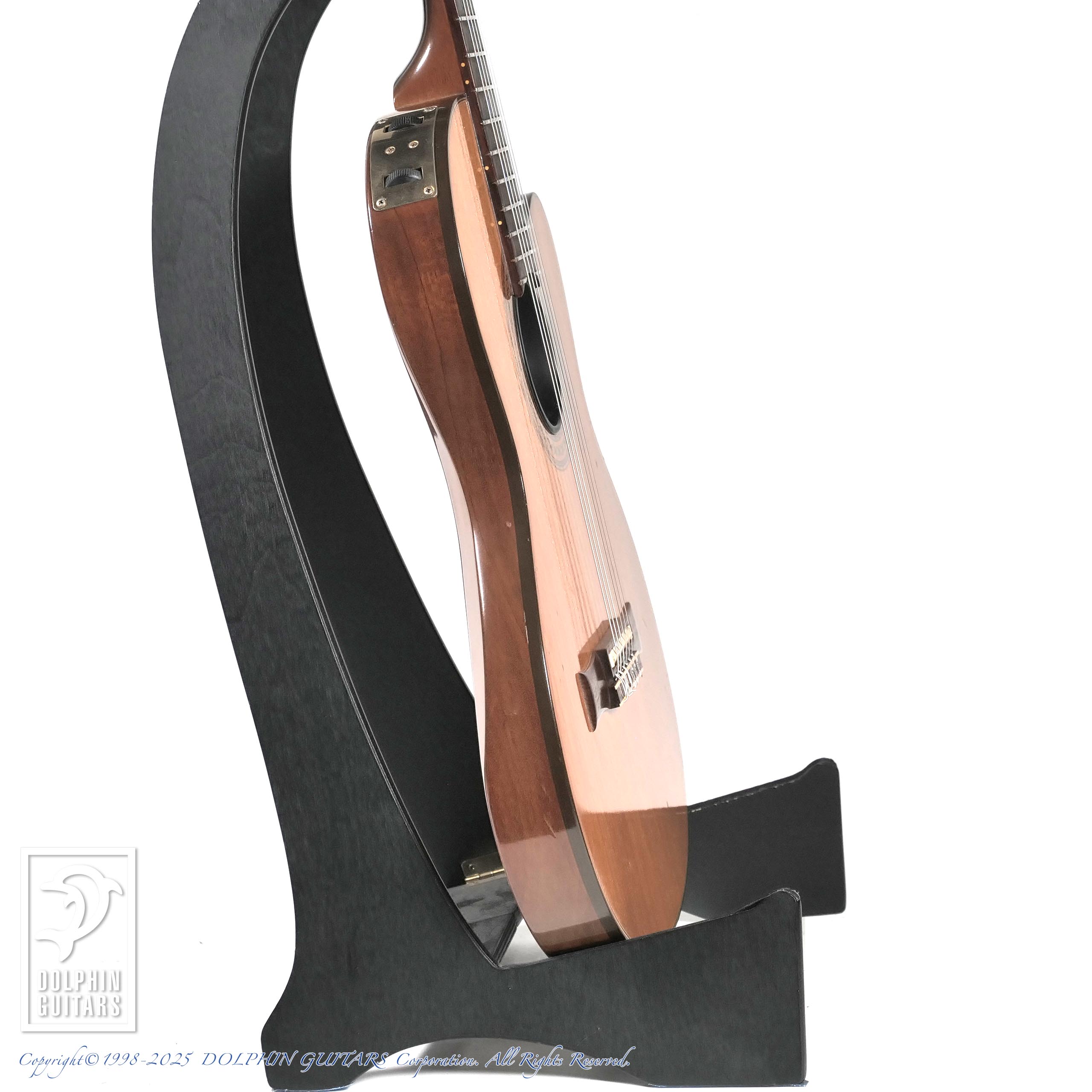 厚み約46mmのスリムなシングルカッタウェイ・ボディにチェンバード構造を採用することで、ナイロン弦のソフトな響きをエレキのような取り回しで実現。