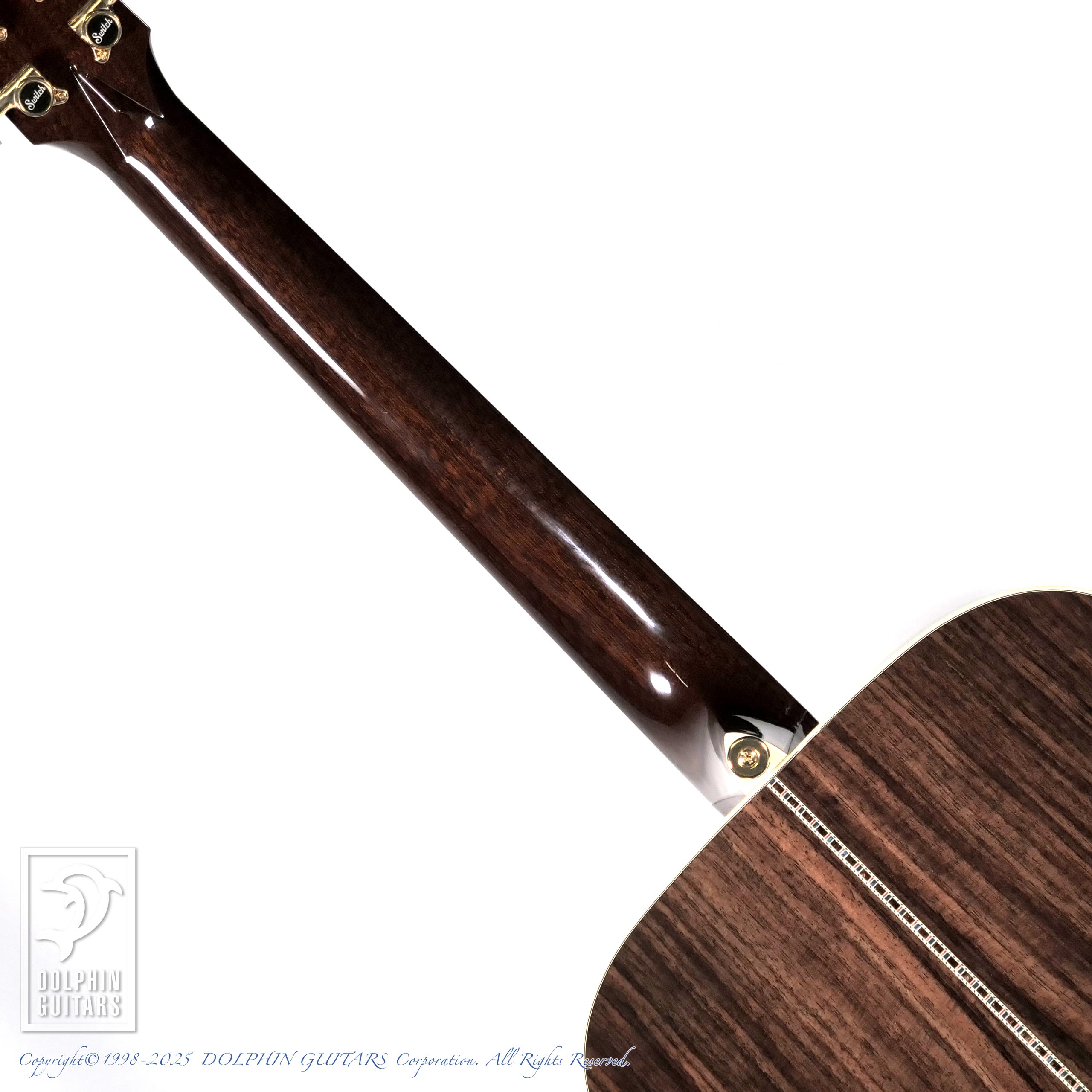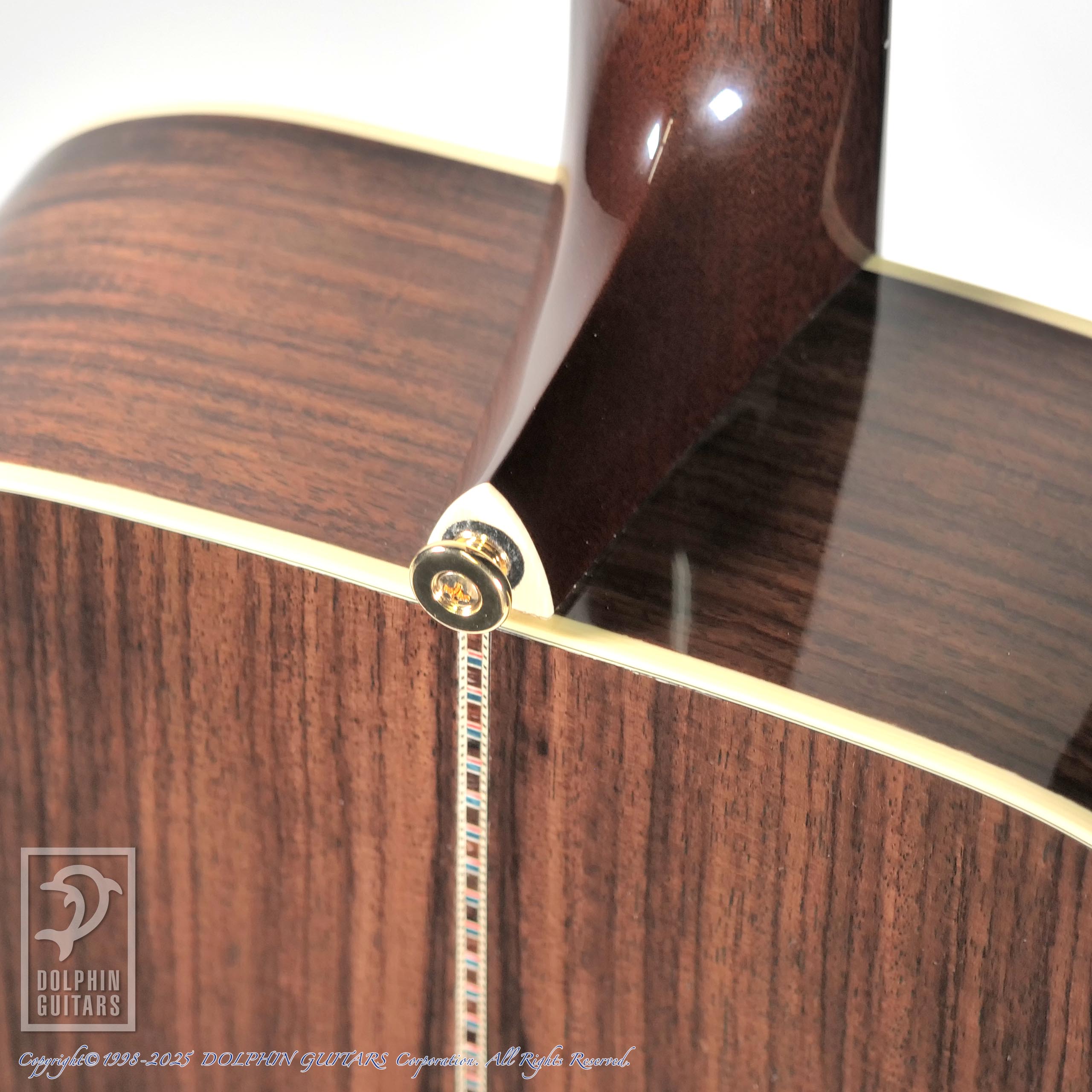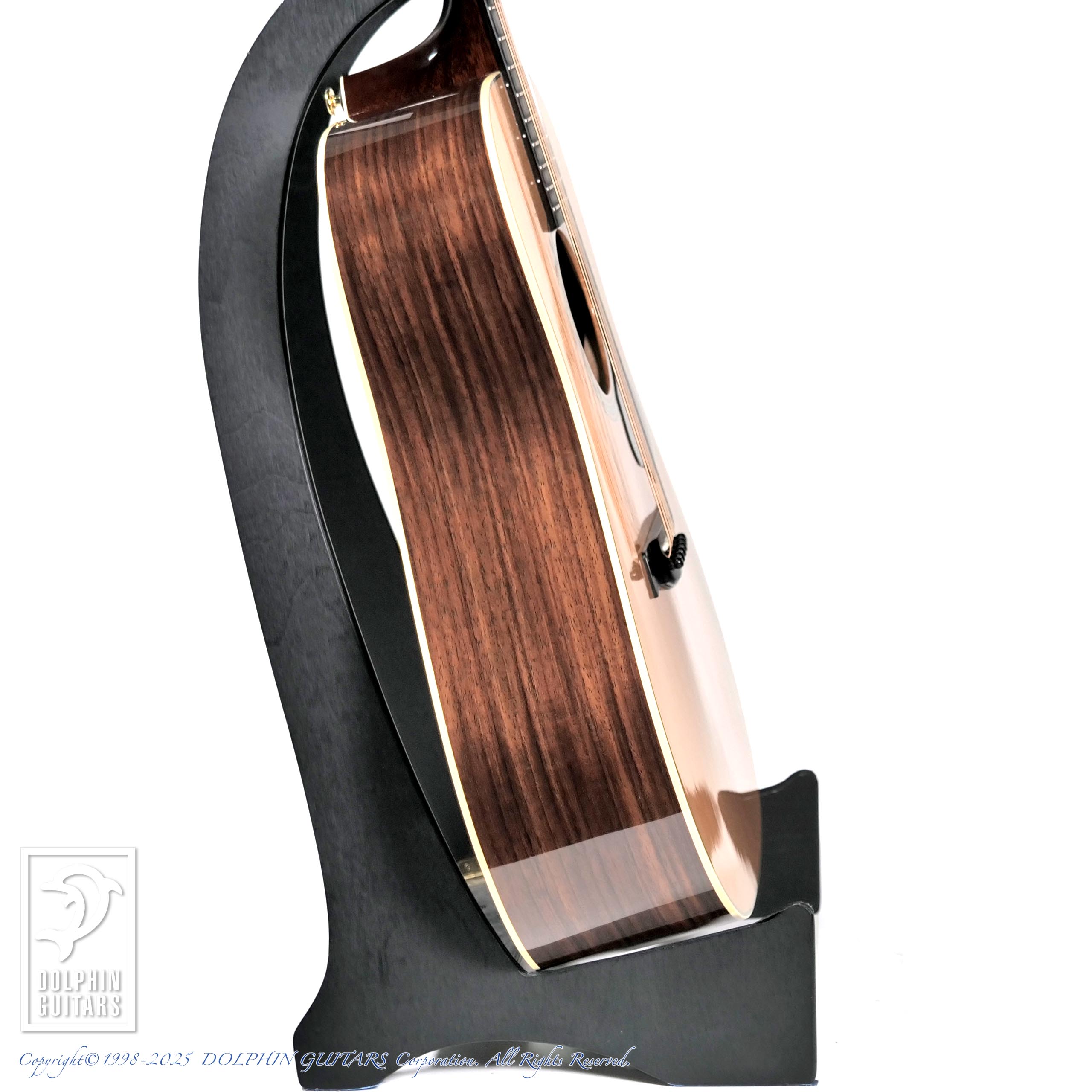 ローアクションなセッティング&ソフトタッチでも十分な音圧を得られるように設計されており、抜群の操作性能を誇ります。全体的にやや甘いトーンが心地よく、その中にキラリと感じるスプルースの高音特性、インディアンローズの持つ低域の重量感もバランス良く混ざり合います。独自のスキャロップドXブレイシングを採用し、トップブレイシングのみならずバックブレイシングにも焦点を当てたサウンドメイクで、ストロークの迫力はもちろんのこと、そのレスポンスの良さはフィンガースタイルにもバッチリはまります。