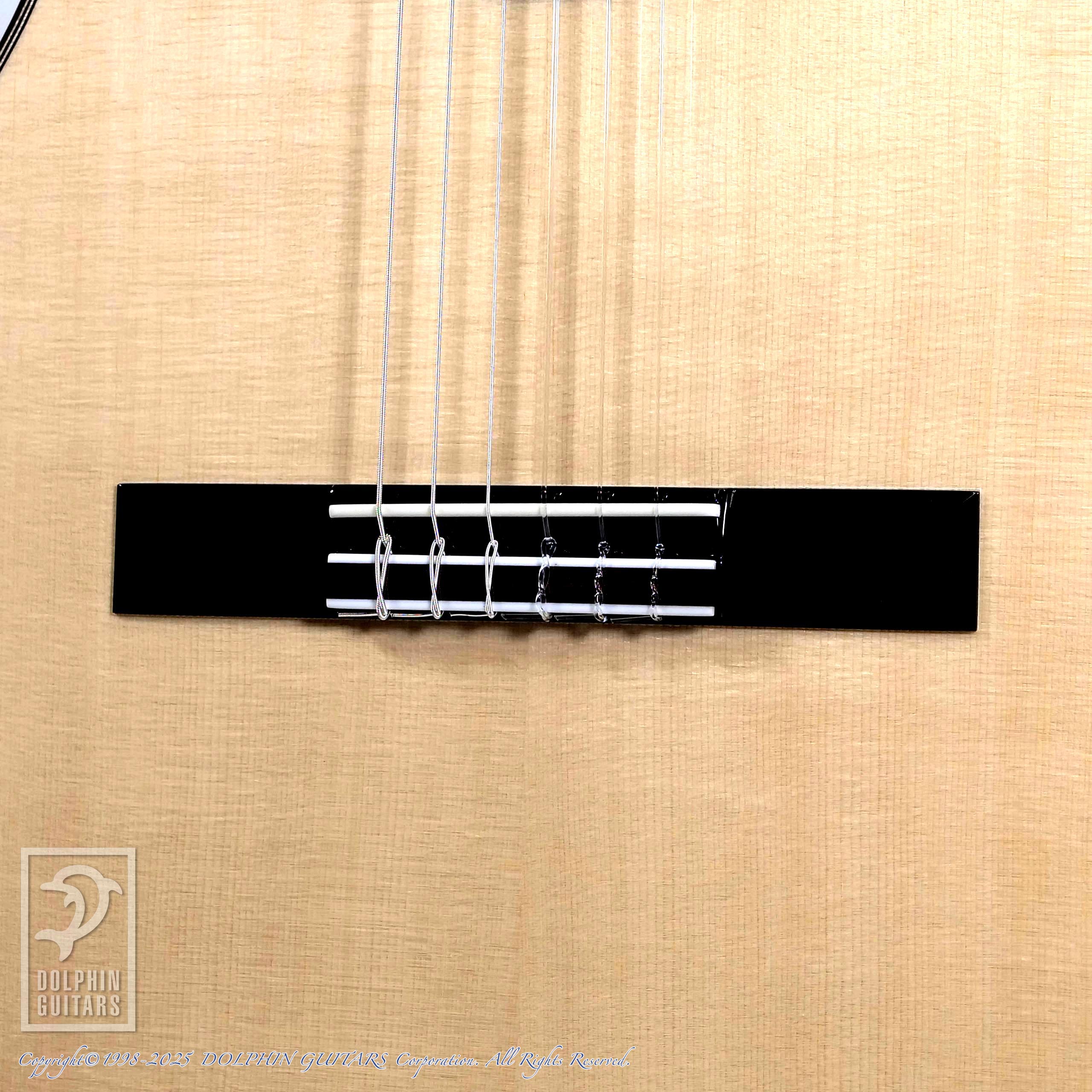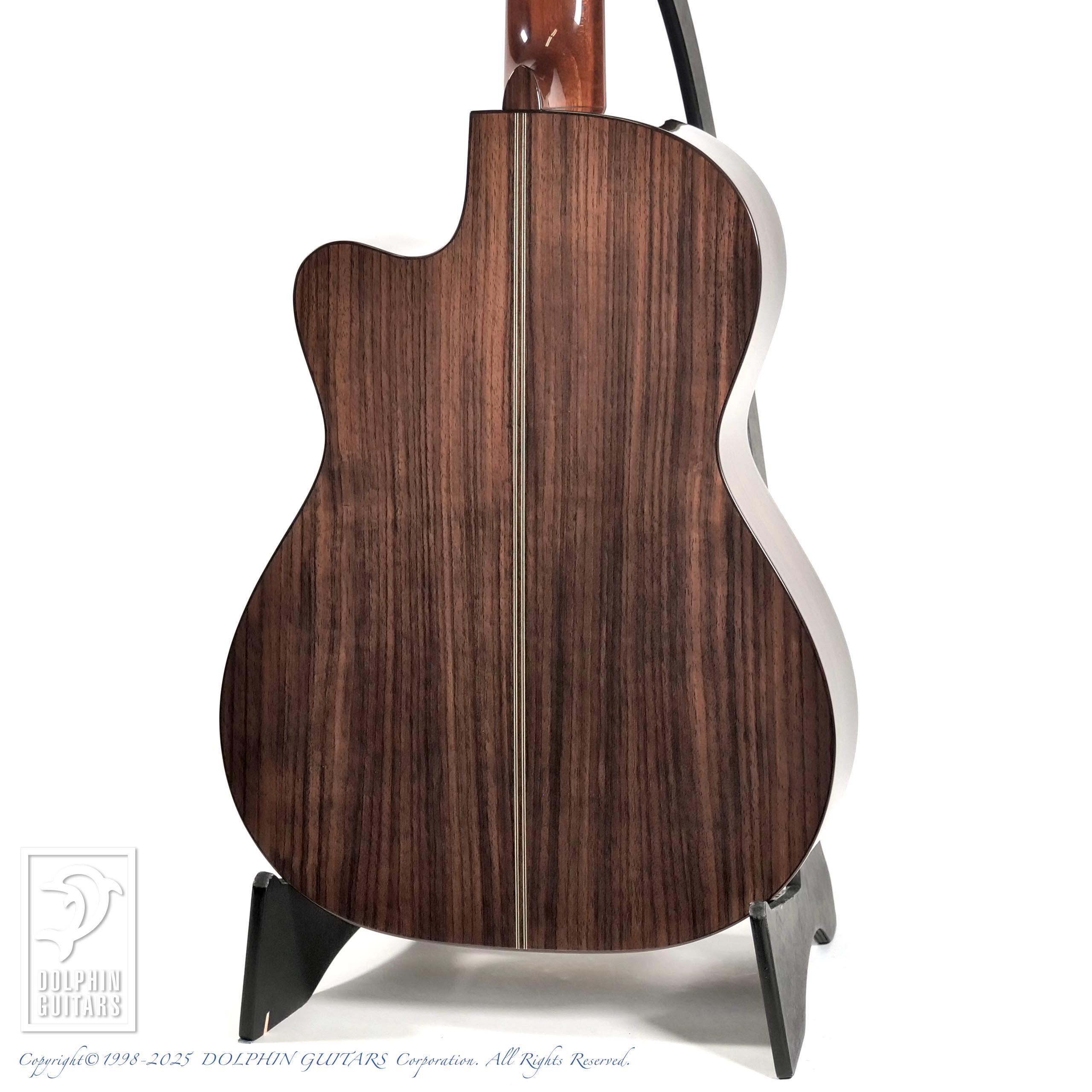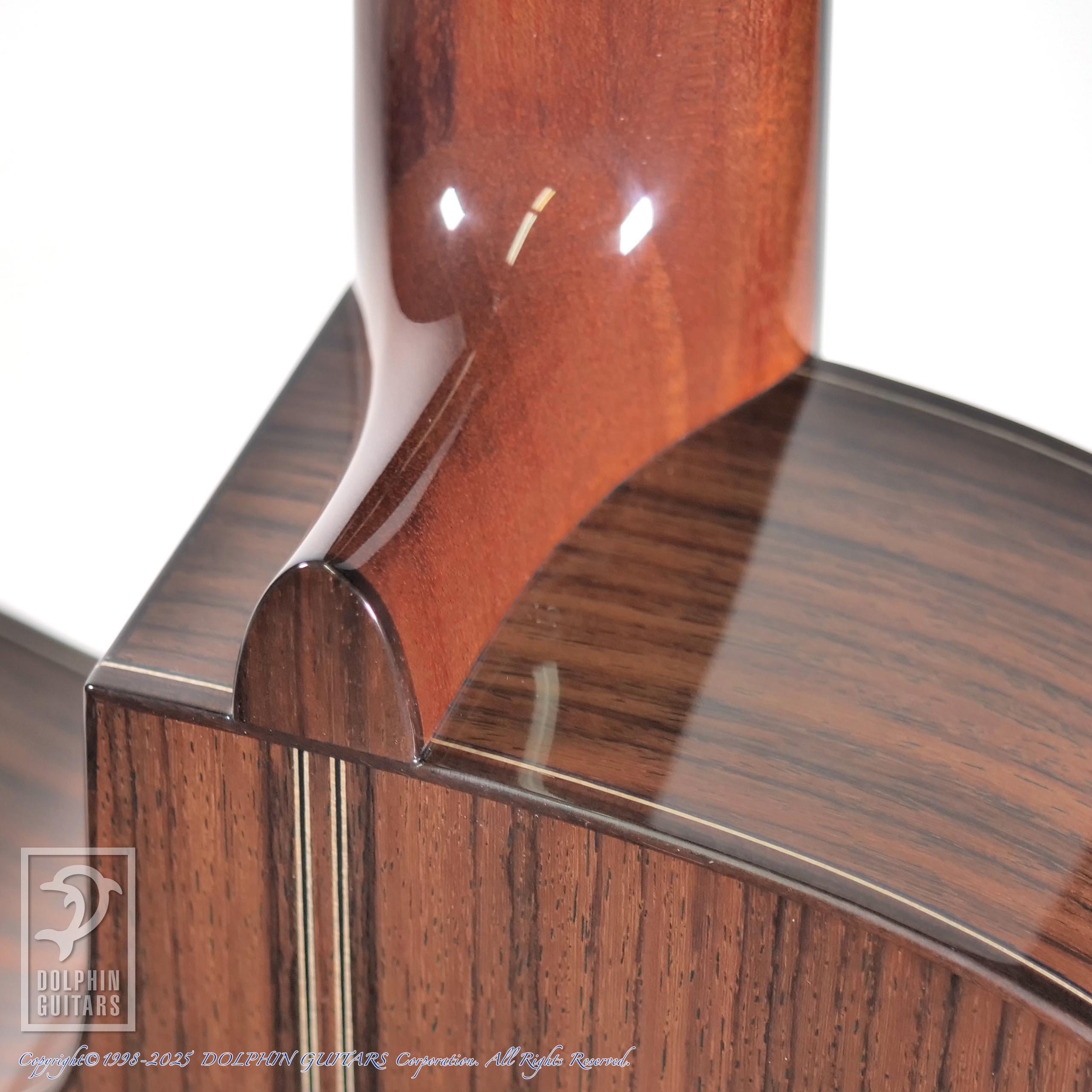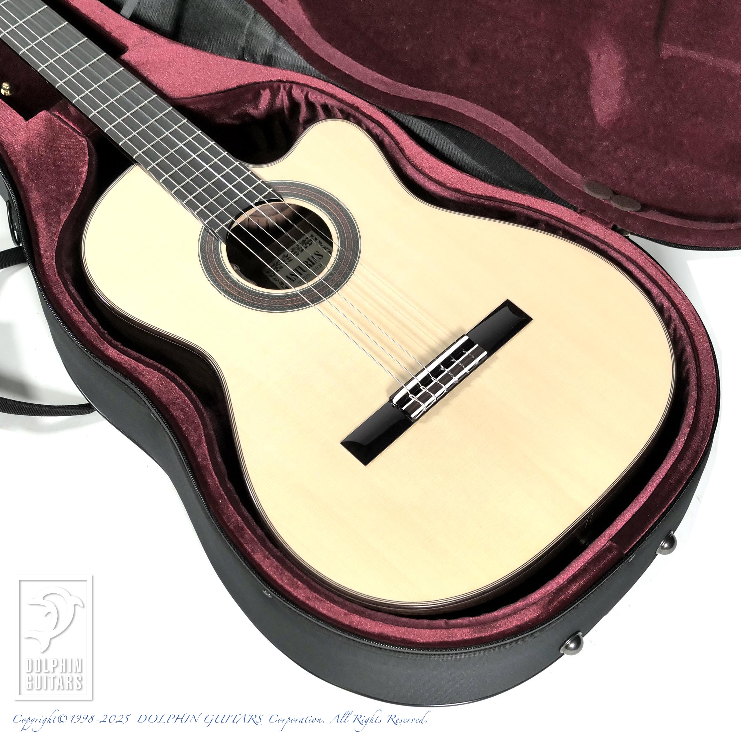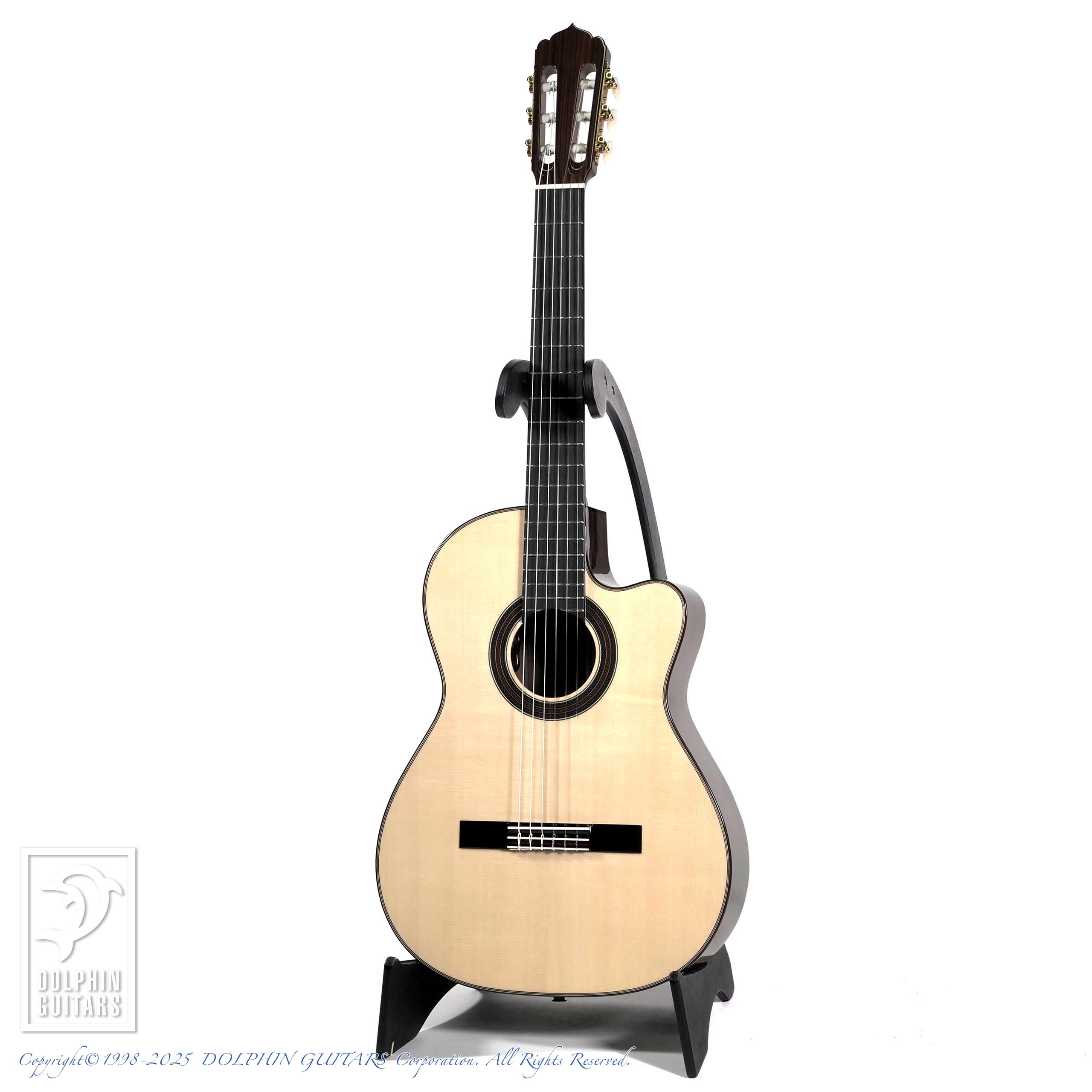 ハイポジションでのプレイアビリティを向上させるラウンドカッタウェイを施し、一般的なクラシックギターよりも僅かにコンパクトにした抱えやすいボディサイズであります。