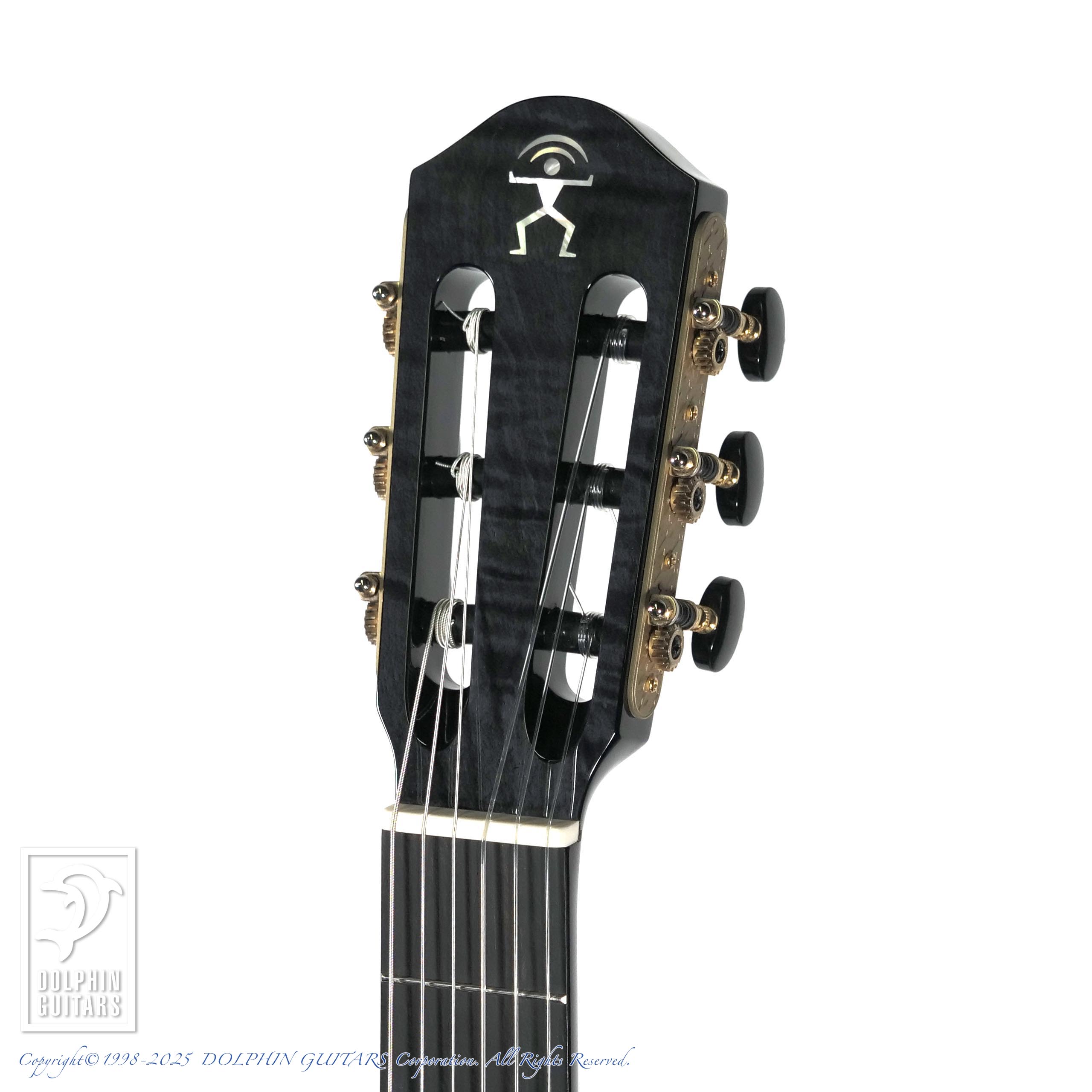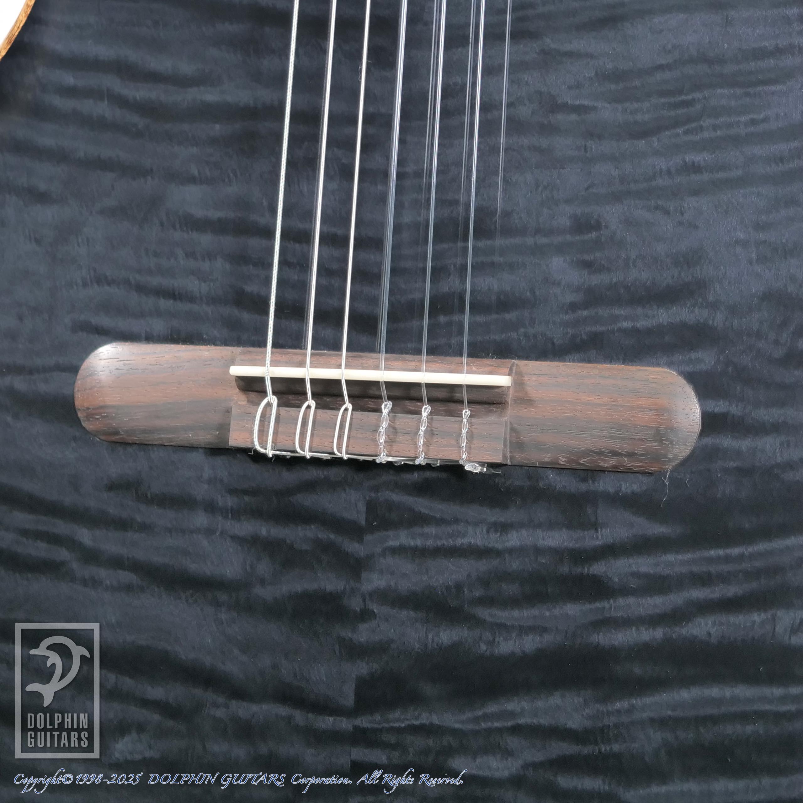 美しいカーリーメイプル杢が映える幻想的なギター。杉田健司がブレーシングデザインをしたナイロン弦モデル。