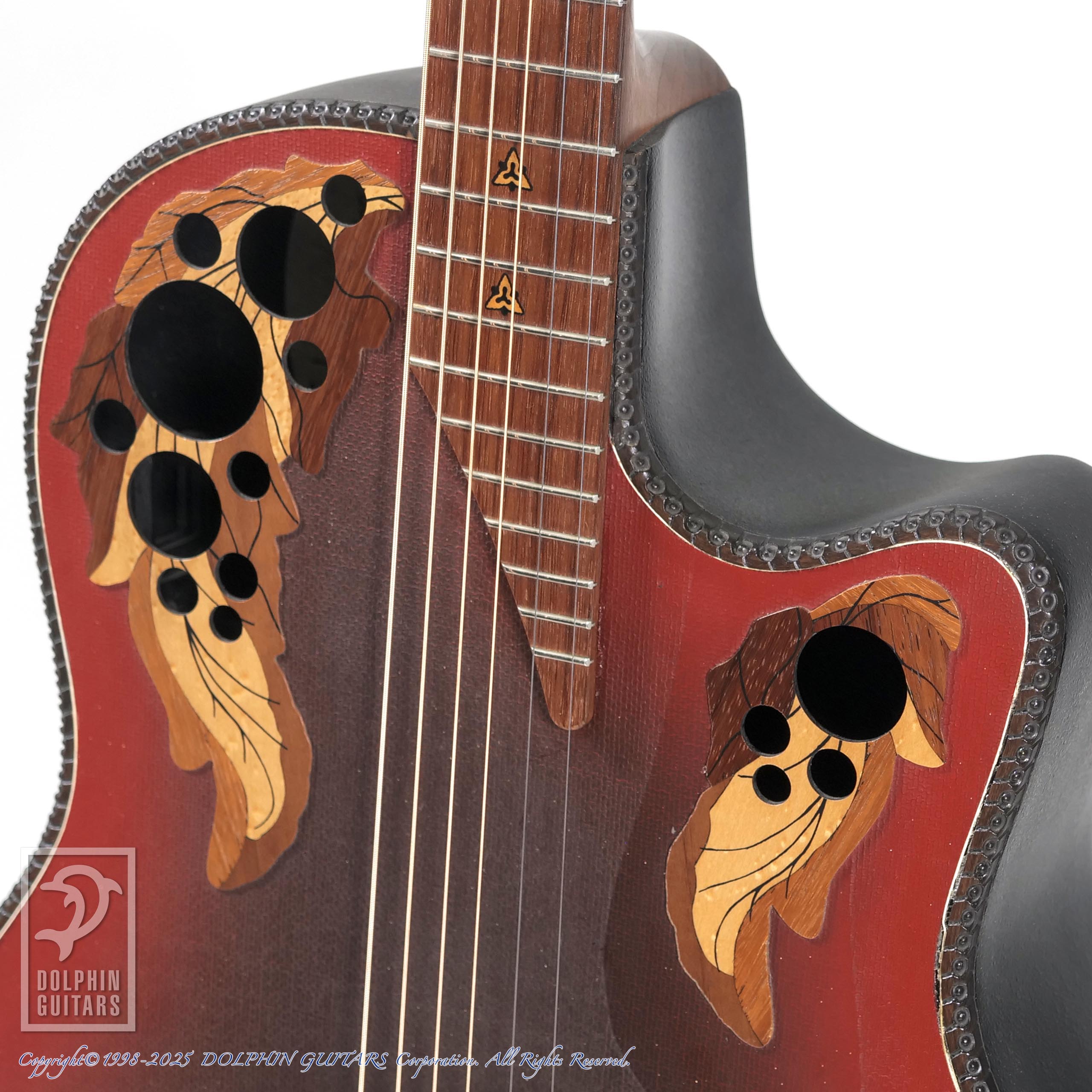 カッタウェイ+レッドの組み合わせは数も少なく人気のモデルと言えるでしょう。散りばめられたラメと相まってライブで目立つ事間違い無しです。アダマス独特のガツンと太く腰のある中低域、分離良く抜けの良い高域が魅力、ストローク時のまとまりの良さは、この機種でしか味わえないでしょう。