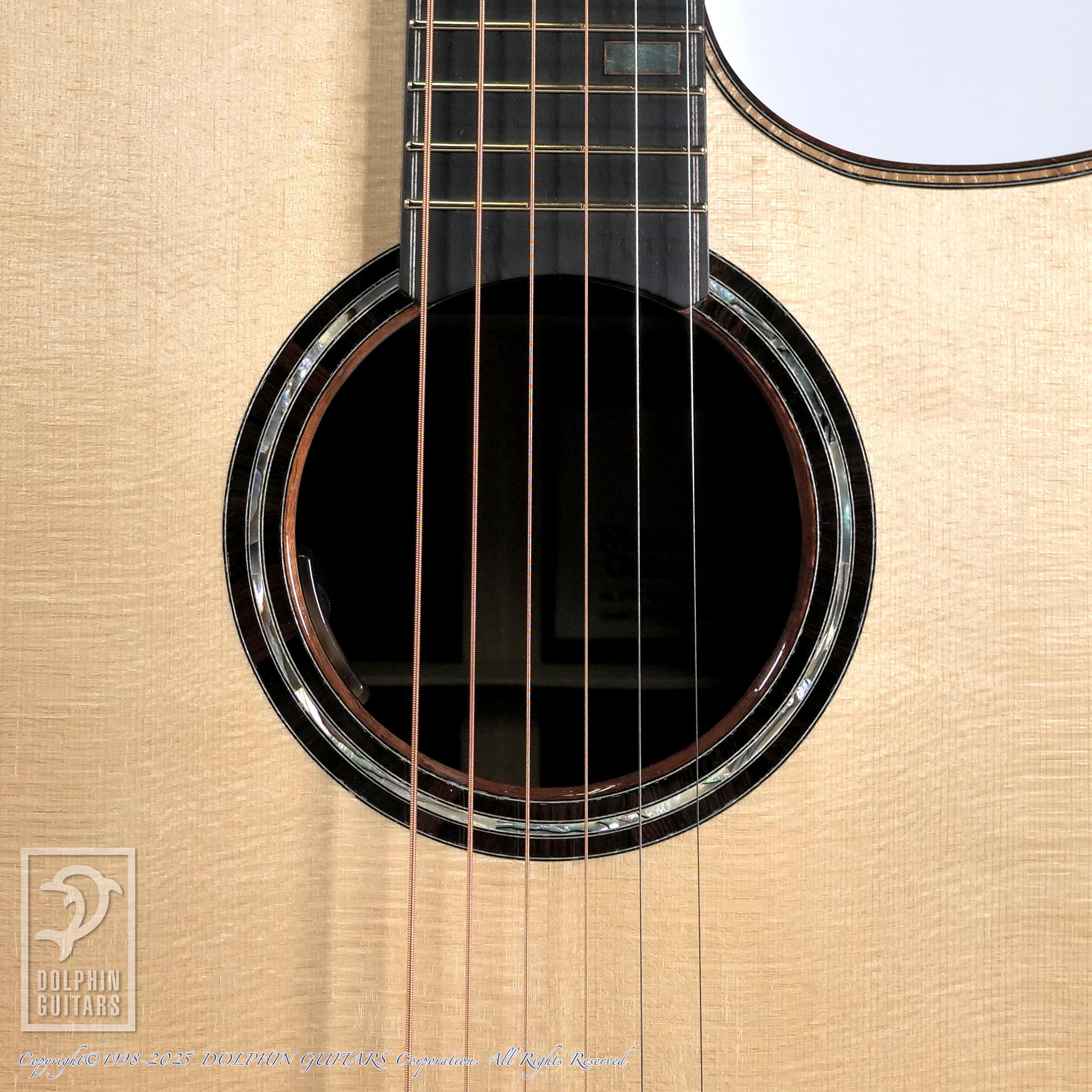 その他:44mmナット幅、628mmスケール、カーリーコアバインディング、アバロン+ウッドロゼッタ、フローレンタイン・カッタウェイ。