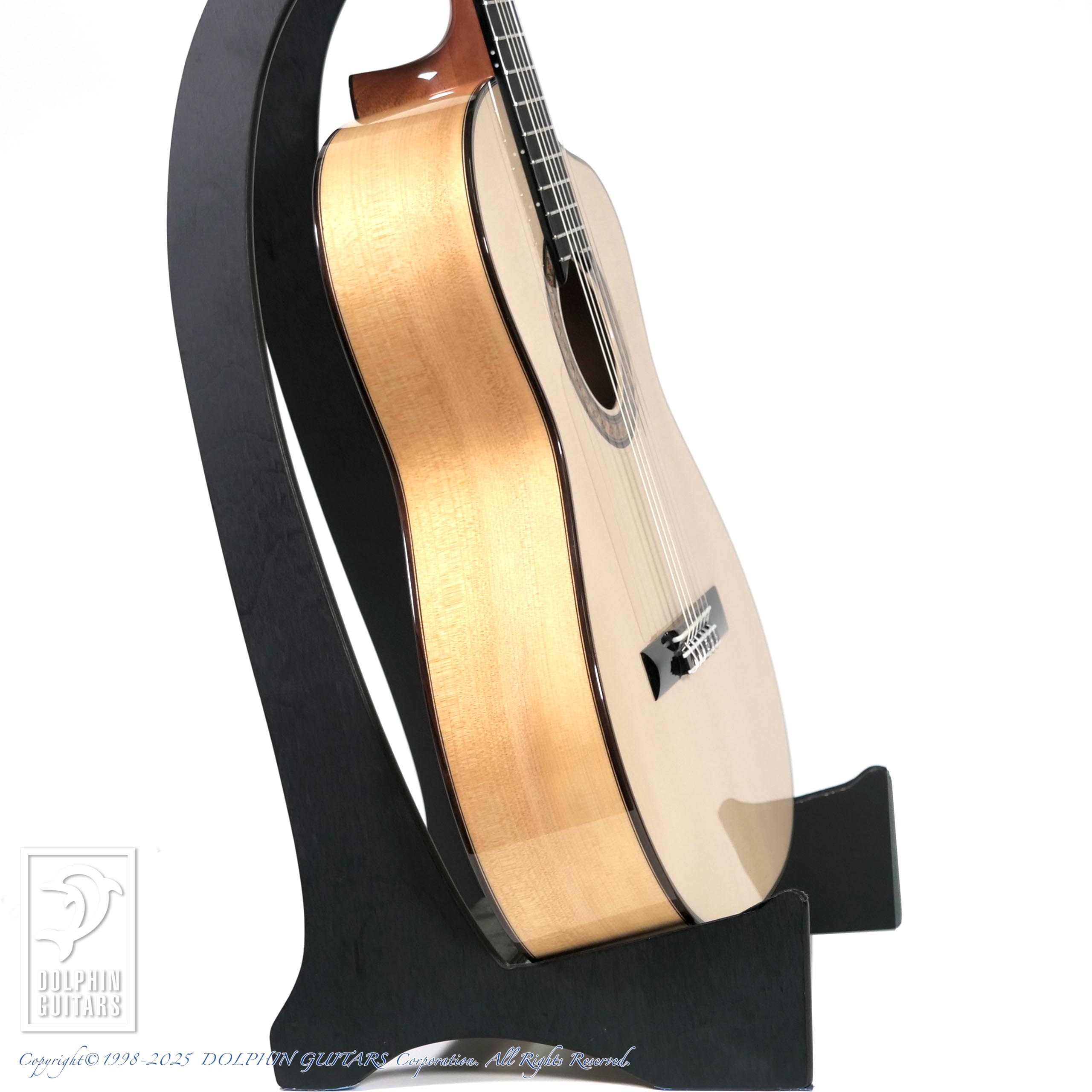 ネックアングルにもこだわり、低い弦高でもテンション感を維持し、クリアでキレの有るサウンドを生み出します。コンパクトボディならではのレスポンスの良さが特徴のモデルですが、総単板のシープレスを使用することにより、より良い反応と音量感も楽しんでいただけると同時に、重量は約1.52kgと超軽量です。軽やかな弾き心地、サウンドはポップスやジャズ、ボッサなど、幅広く活躍できると思います。