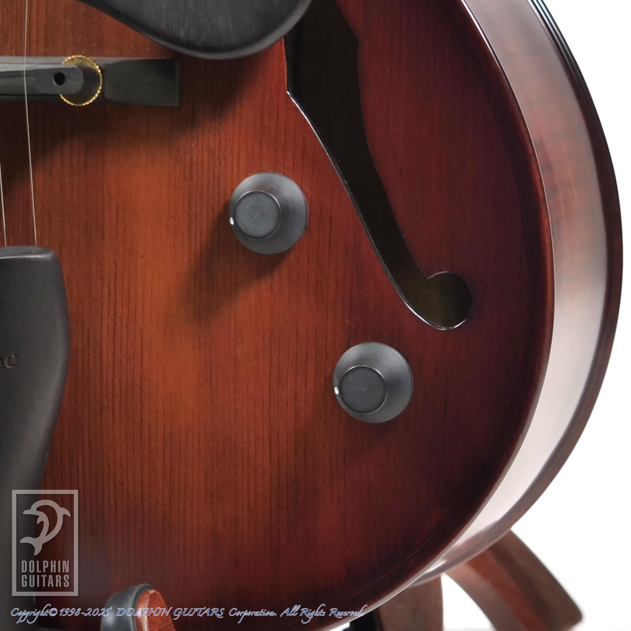ボディはバイオリンを作る工程と同様に、トップのスプルースとバックのメイプルは職人の手によって削り出されており、価格を超えたクォリティーで発売当時は世間を賑わせたジャズギターです。
