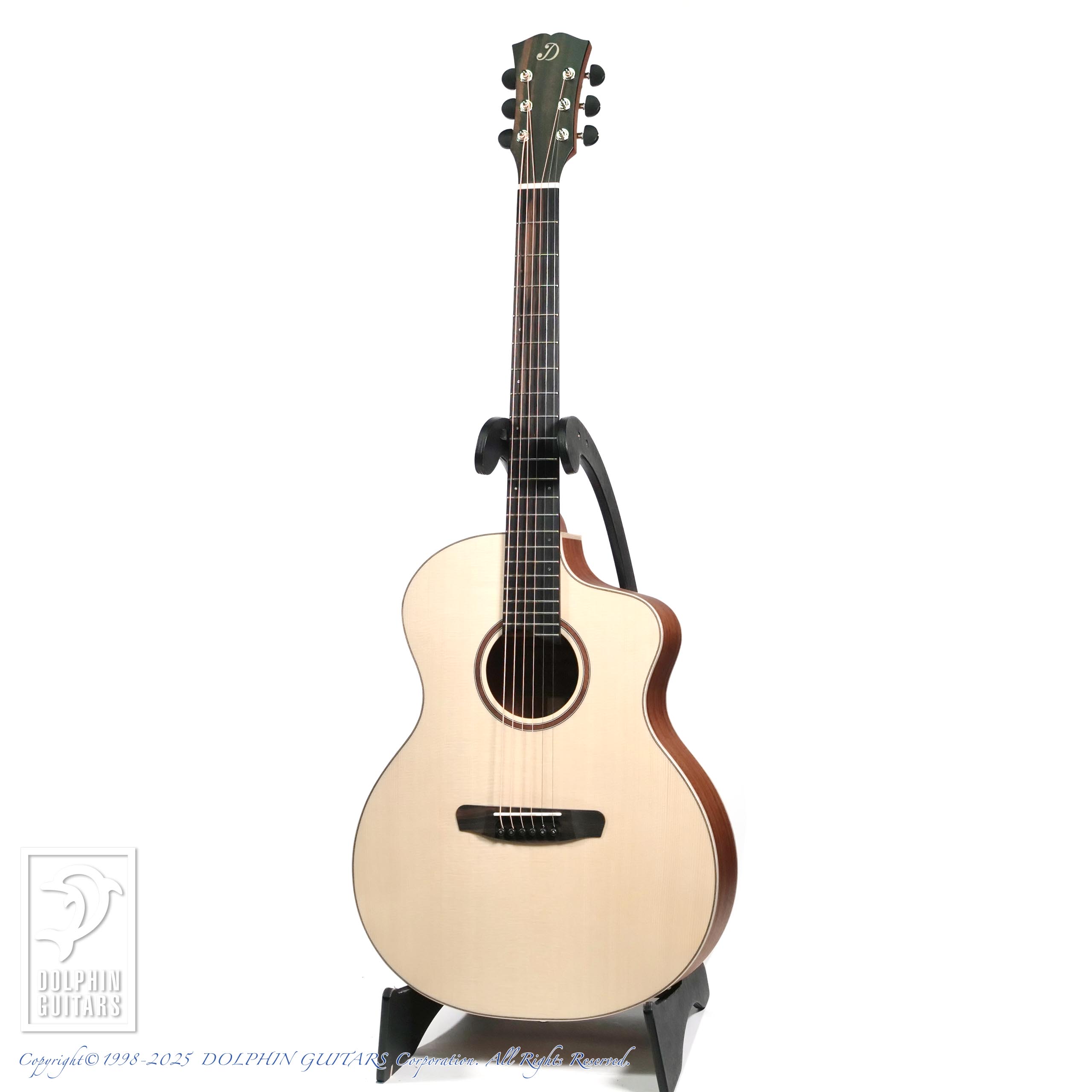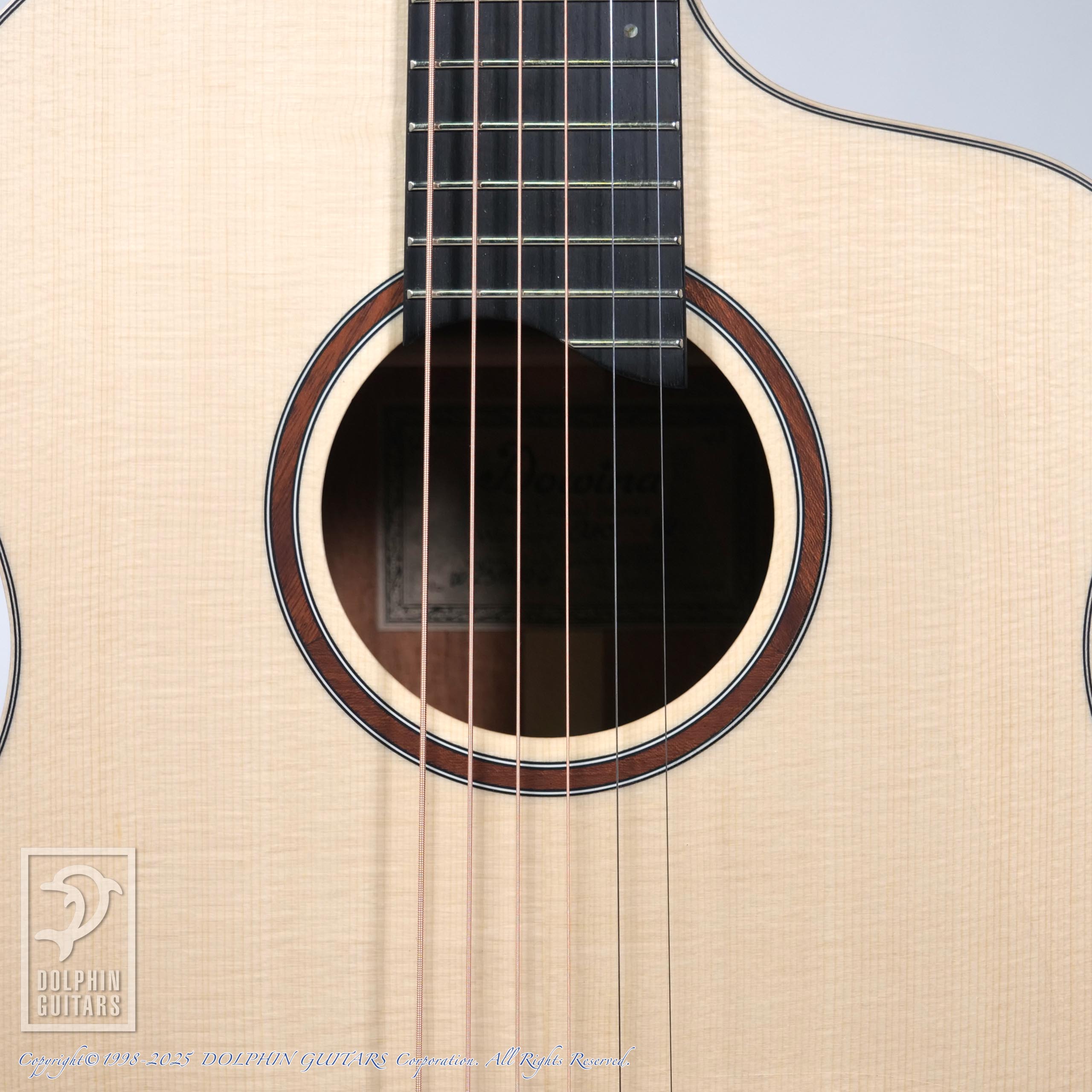中低音域特性に富み甘いトーンが魅力的なカヤ・マホガニー材のボディに、年々貴重になっているドロミテ地方産出のスプルース材を組み合わせた、オール単板のギターです。