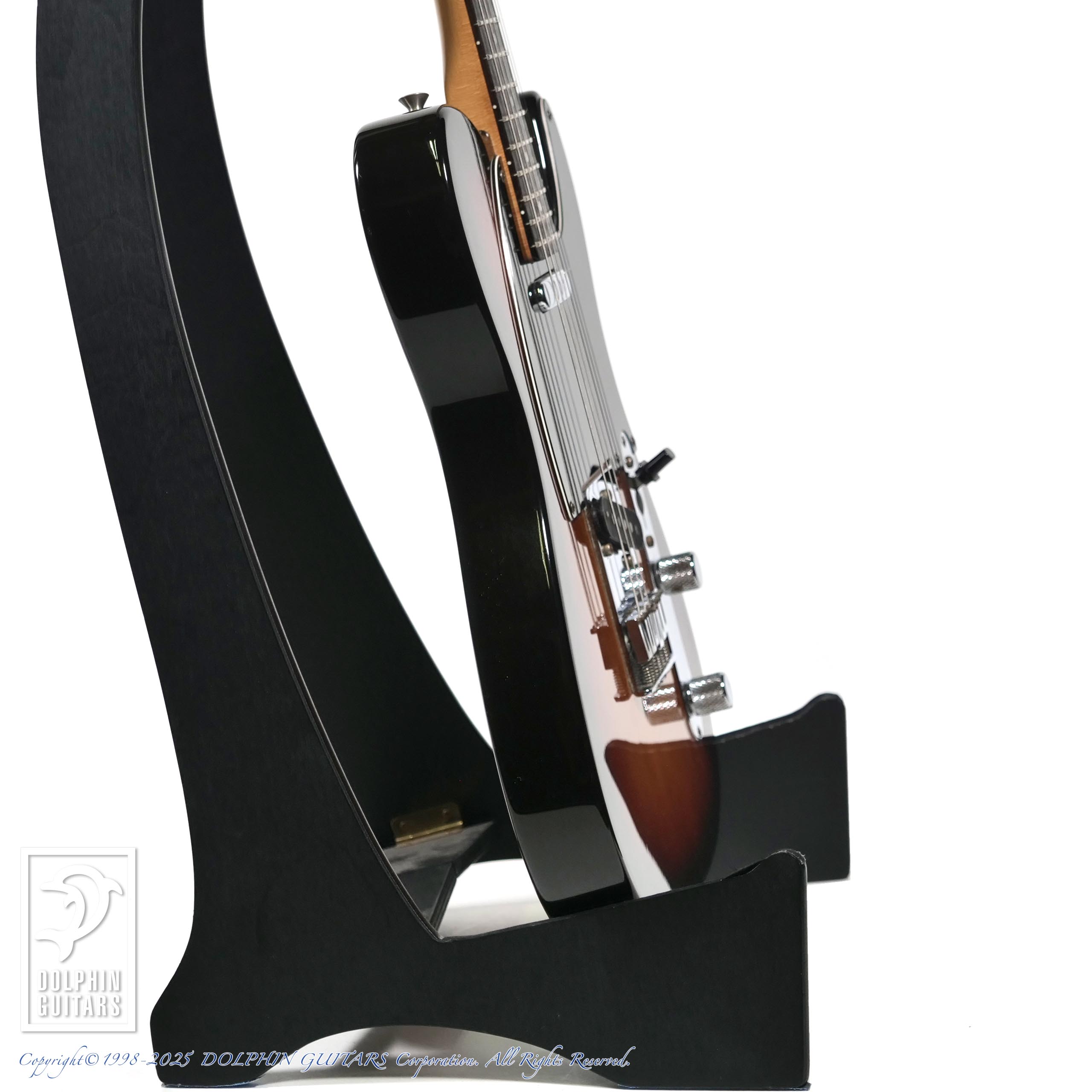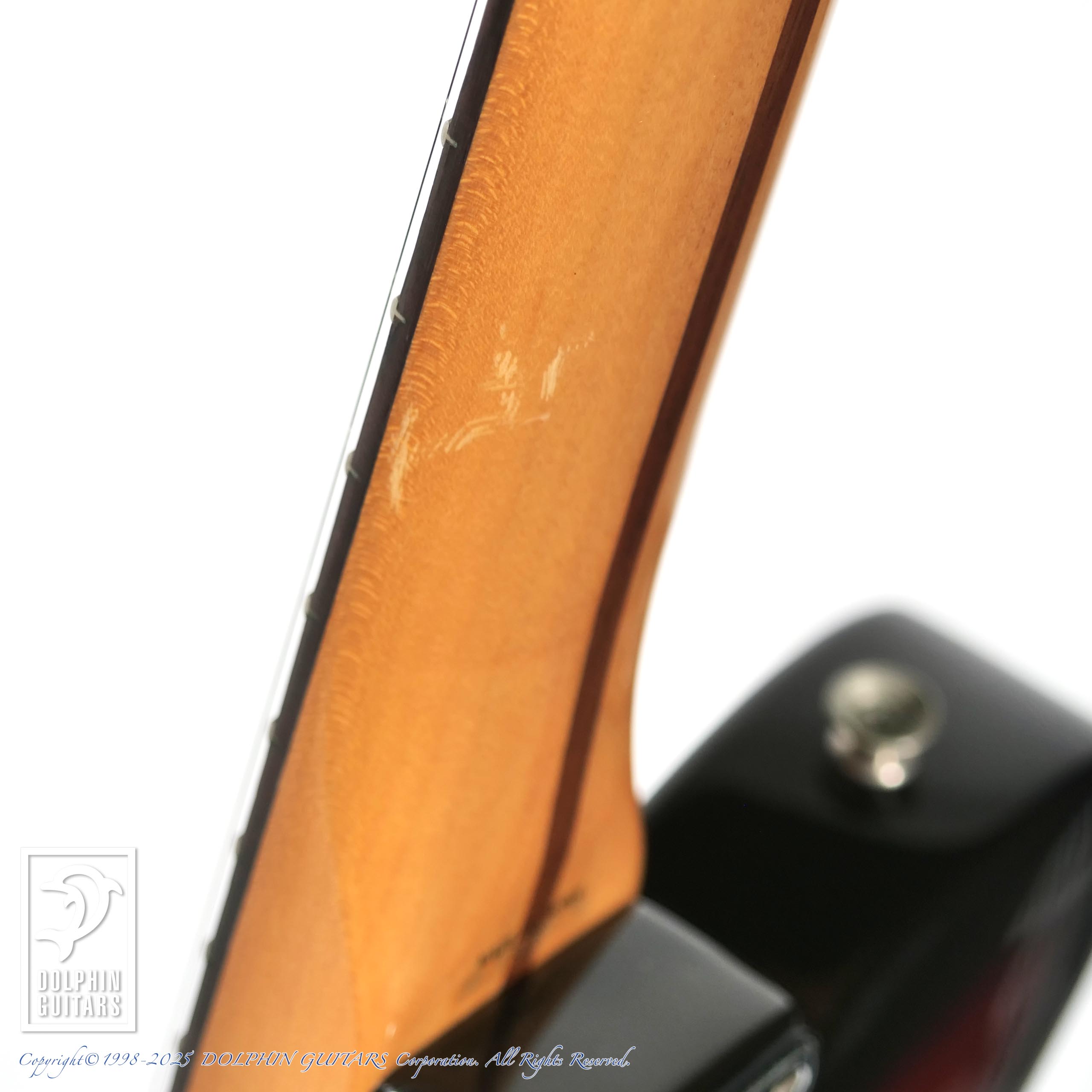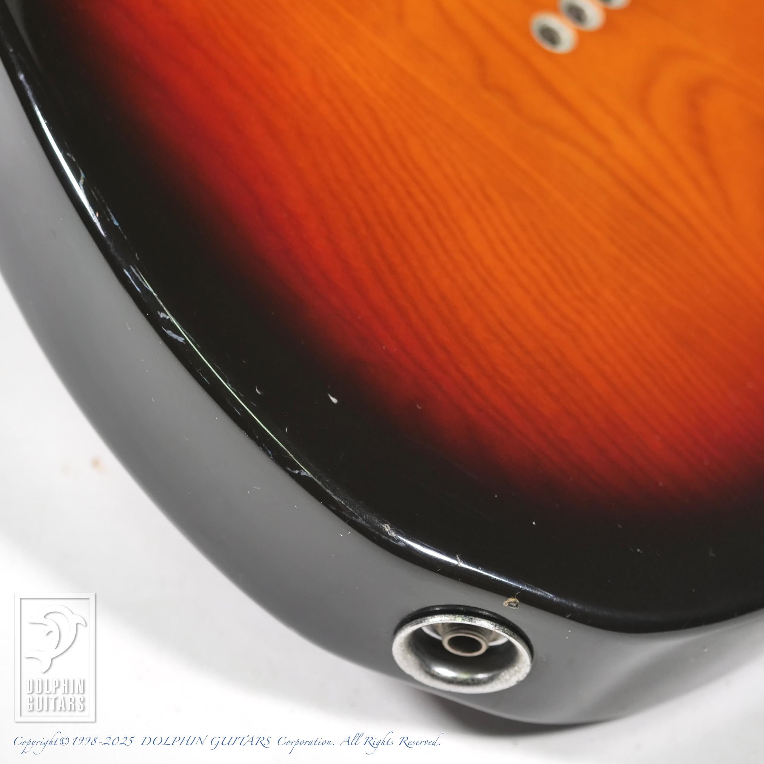 Eシリアル期は一般的に1984~87年製とされておりますが、90年前後まで存在が確認されており、本器TLM-55Mも発売自体が87年以降となりますので、おそらく89年前後の個体かと思われます。ミディアムスケールのテレキャスターという時点で大変稀な存在ですが、ごくわずかな期間しか生産されておらず、中でもサンバーストフィニッシュはレアです。