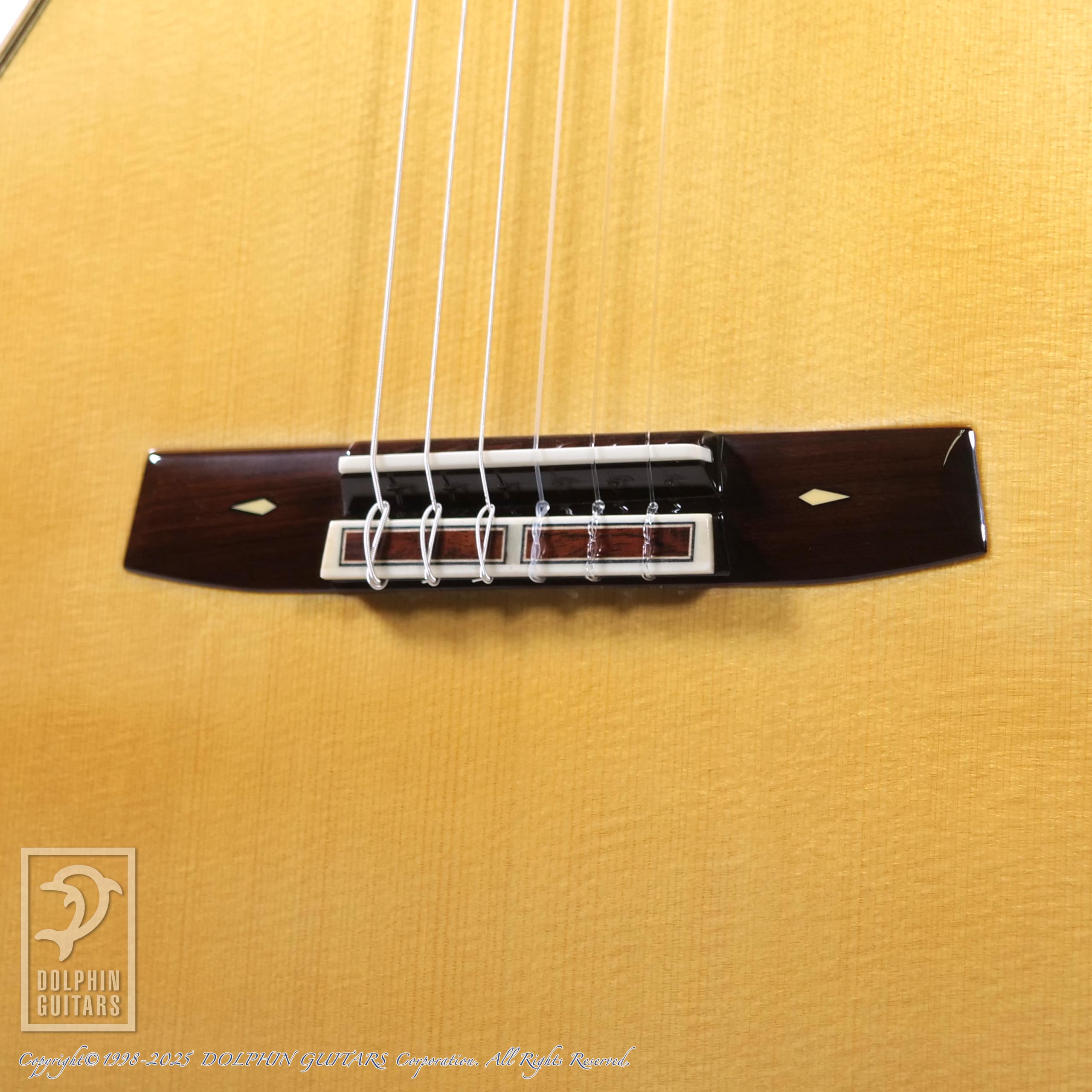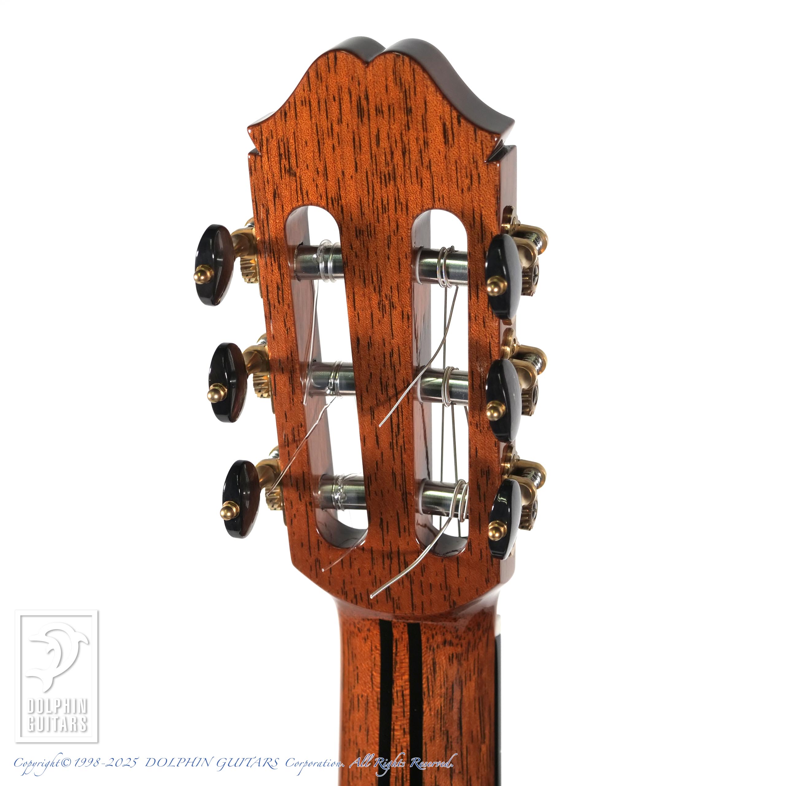 トップ材には厳選したスイス産レゾナンススプルースを選び、スリムなネックや20Fの追加、サイドポジションの装備など、幅広い層に受け入れられる演奏性をとことん追求した特注モデルとなっております。もちろん糸巻きもゴトー製最上級ラインを装着し、隅々までこだわり抜いております。