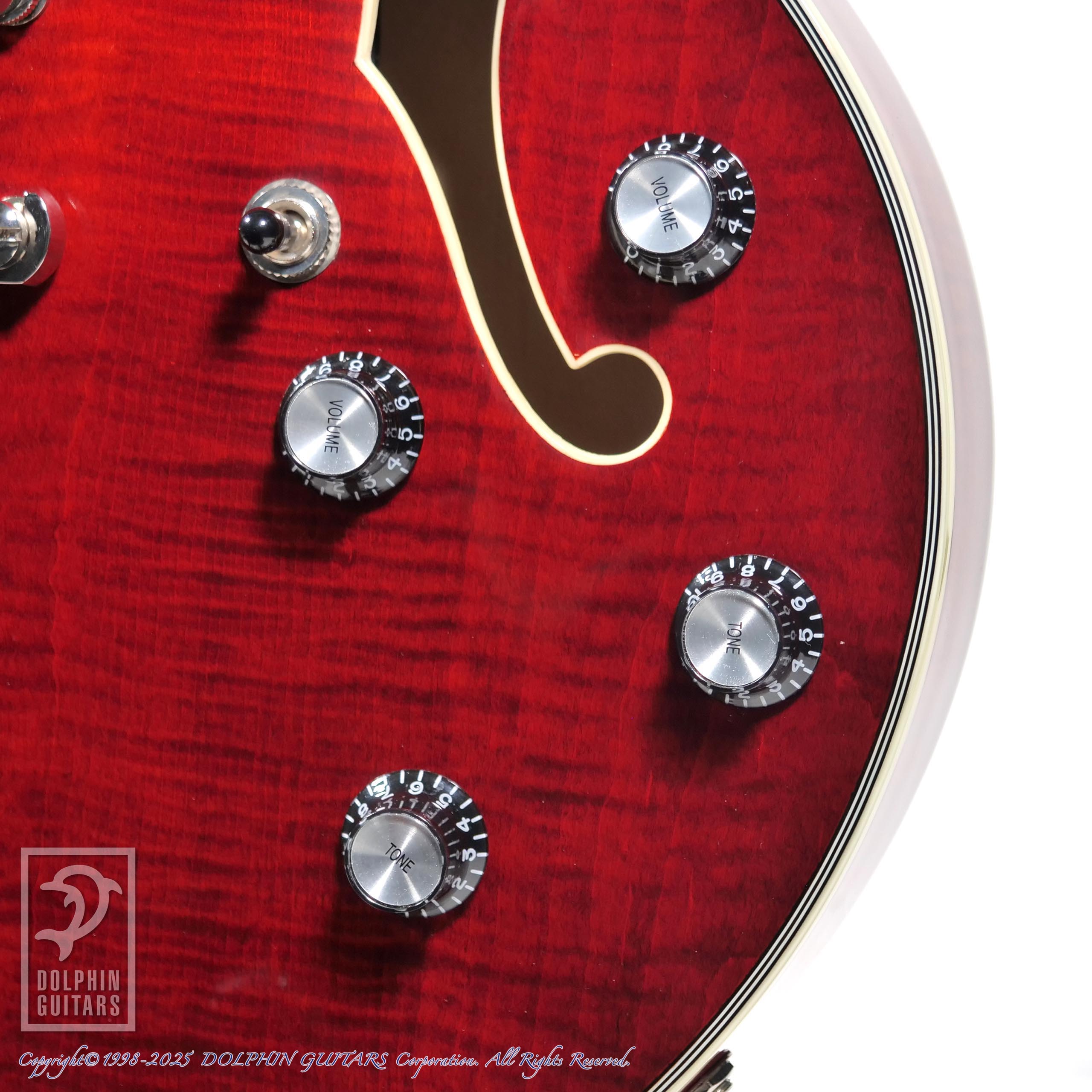メイプルを用いたボディは、アーチトップとフレイム杢が美しい外観を決定づけております。