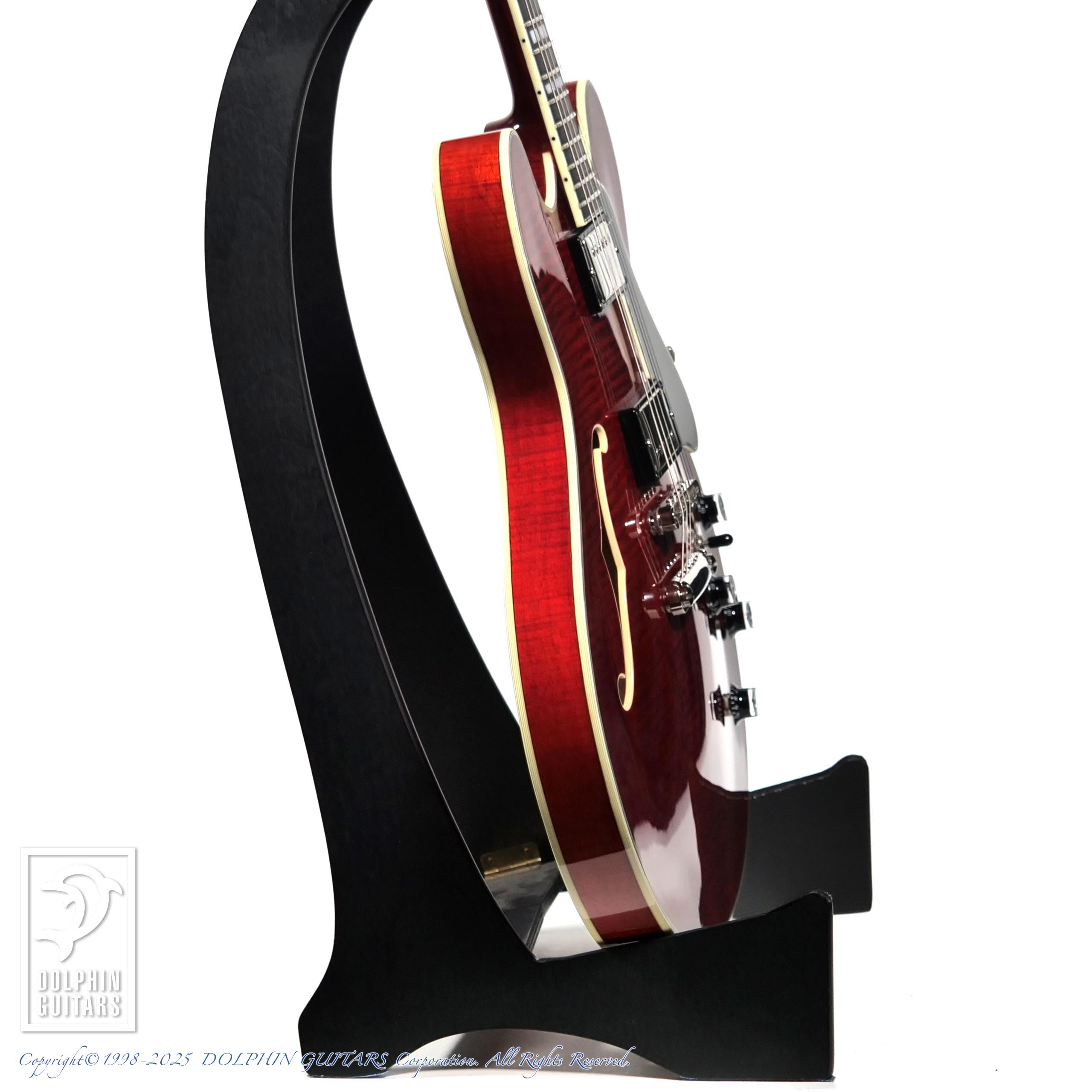 サウンドはセミアコ特有の空気感を備えつつ、Seymour Duncan 59 の組み合わせにより、ウォームなクリーントーンから力強いドライブサウンドまで幅広く対応。ジャズ、ブルース、ロックなどジャンルを問わずオールラウンドに使える一本です。プレイヤビリティも高く、取り回しの良さはステージからスタジオまで活躍の場を広げてくれます。